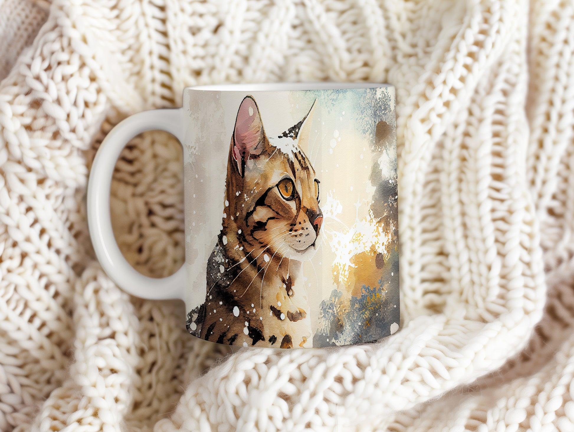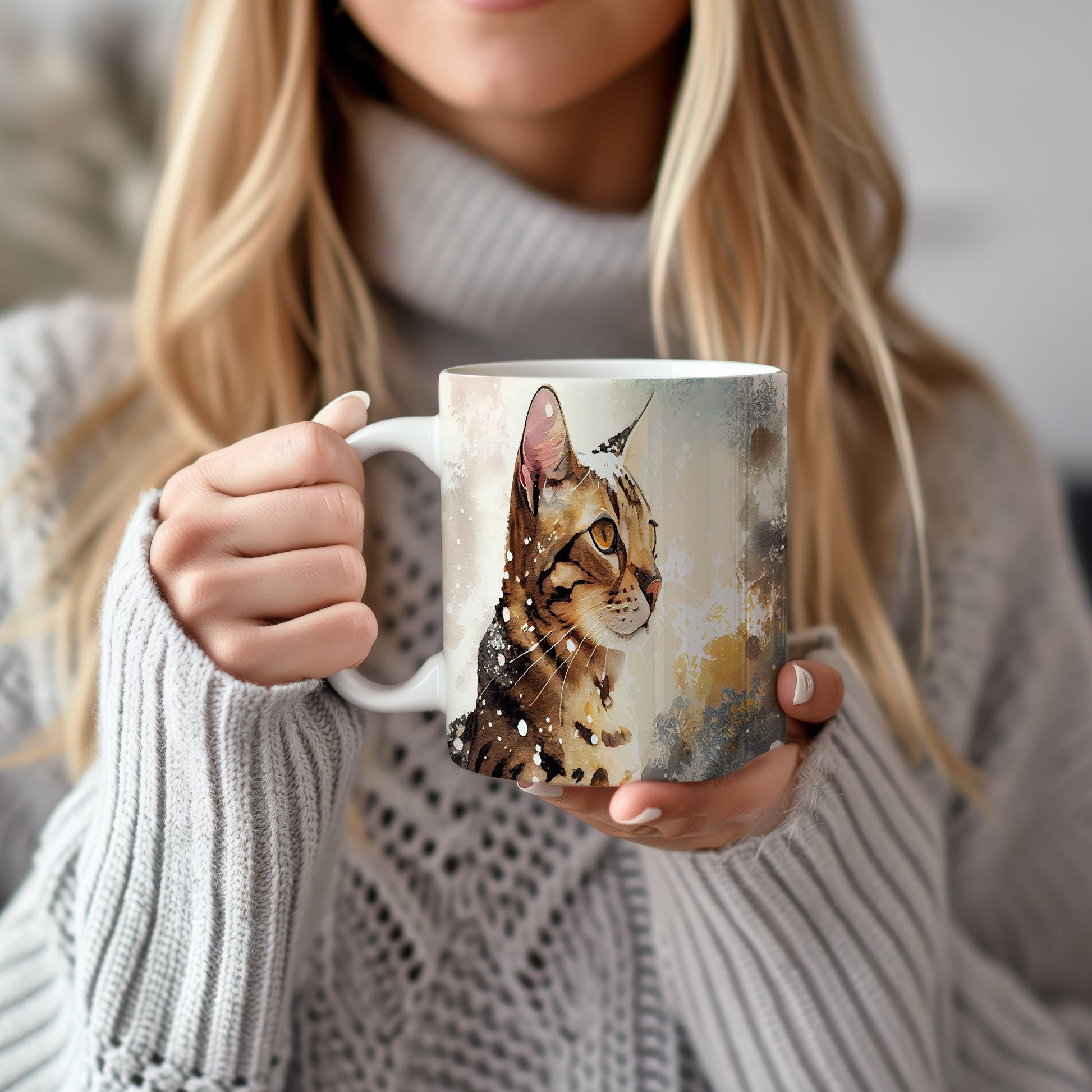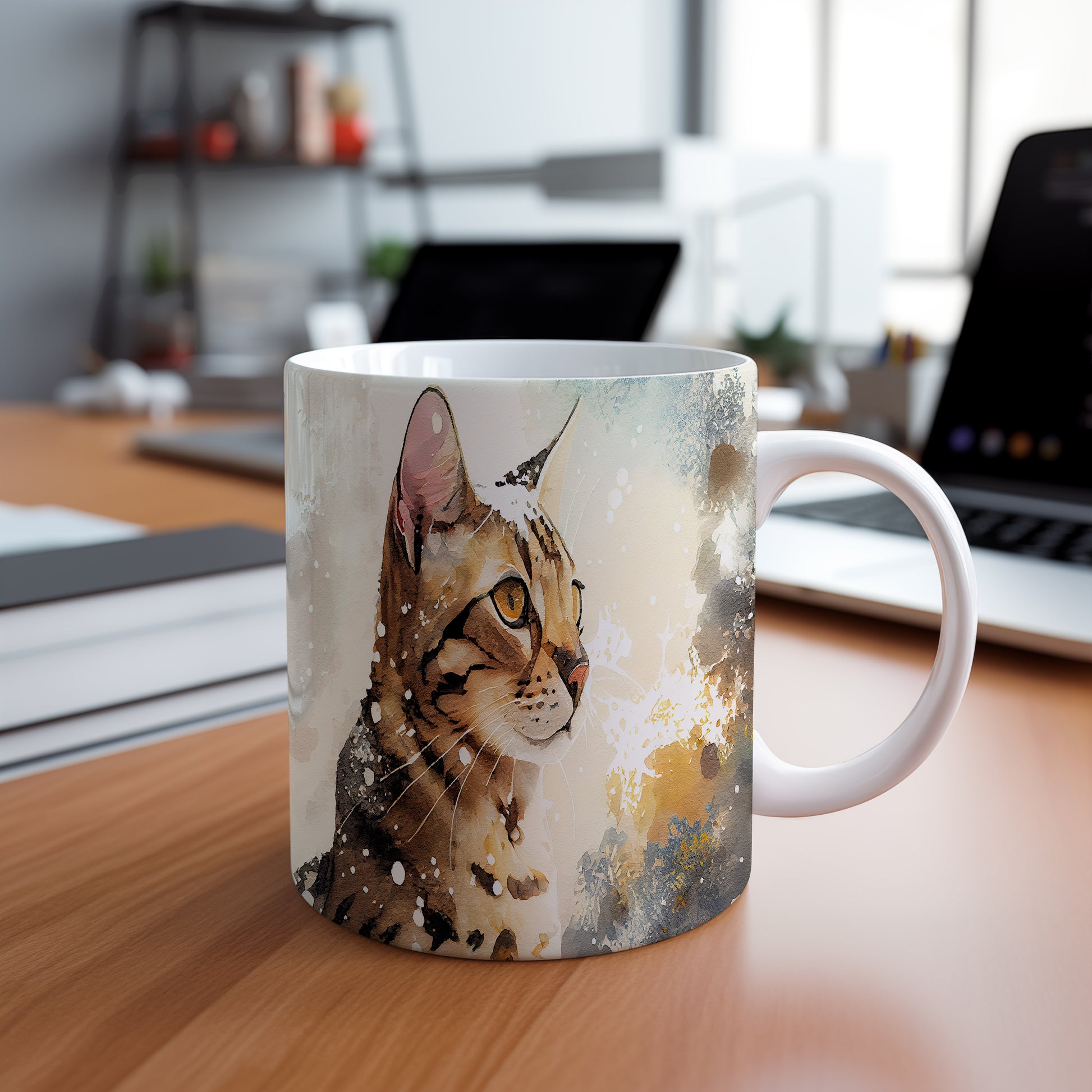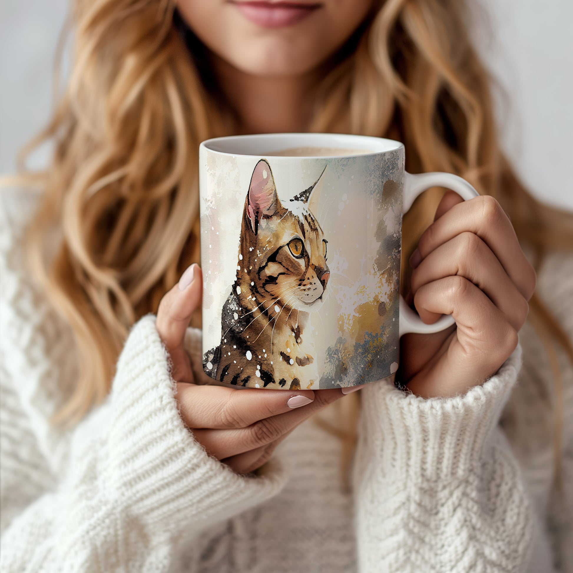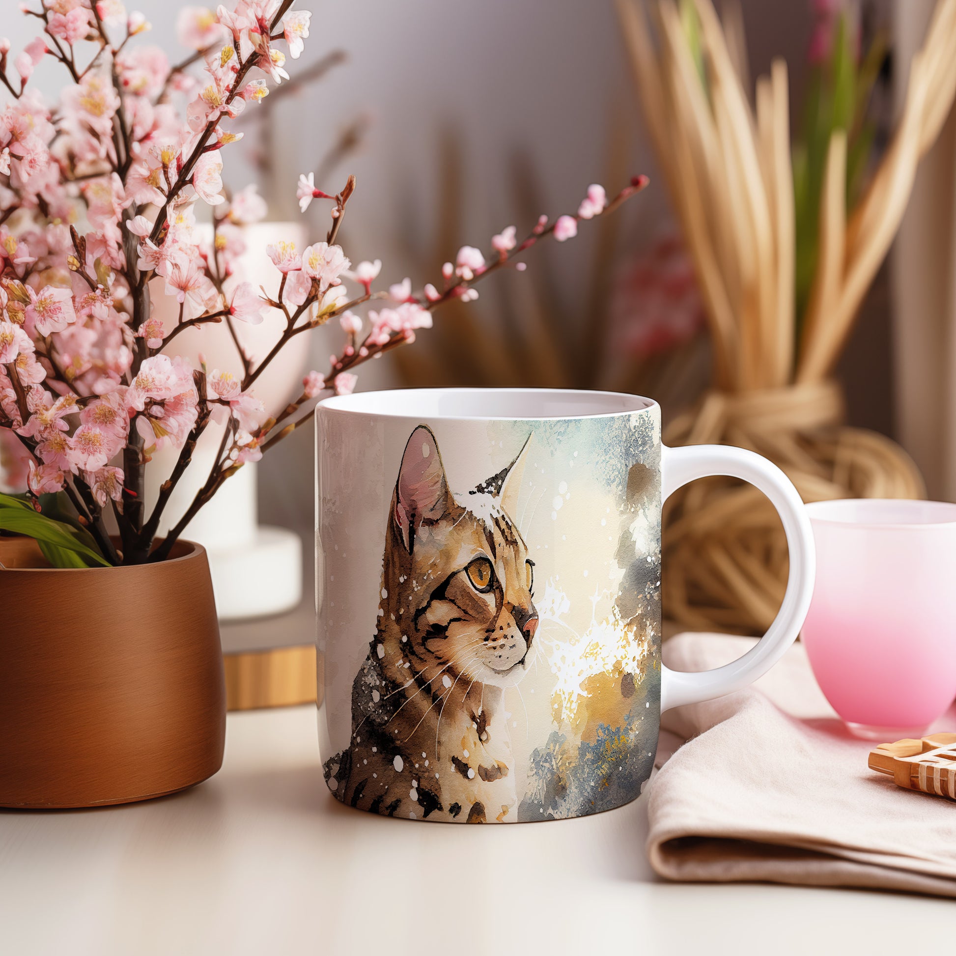 Hrnek s roztomilou kočkou v akvarelovém stylu