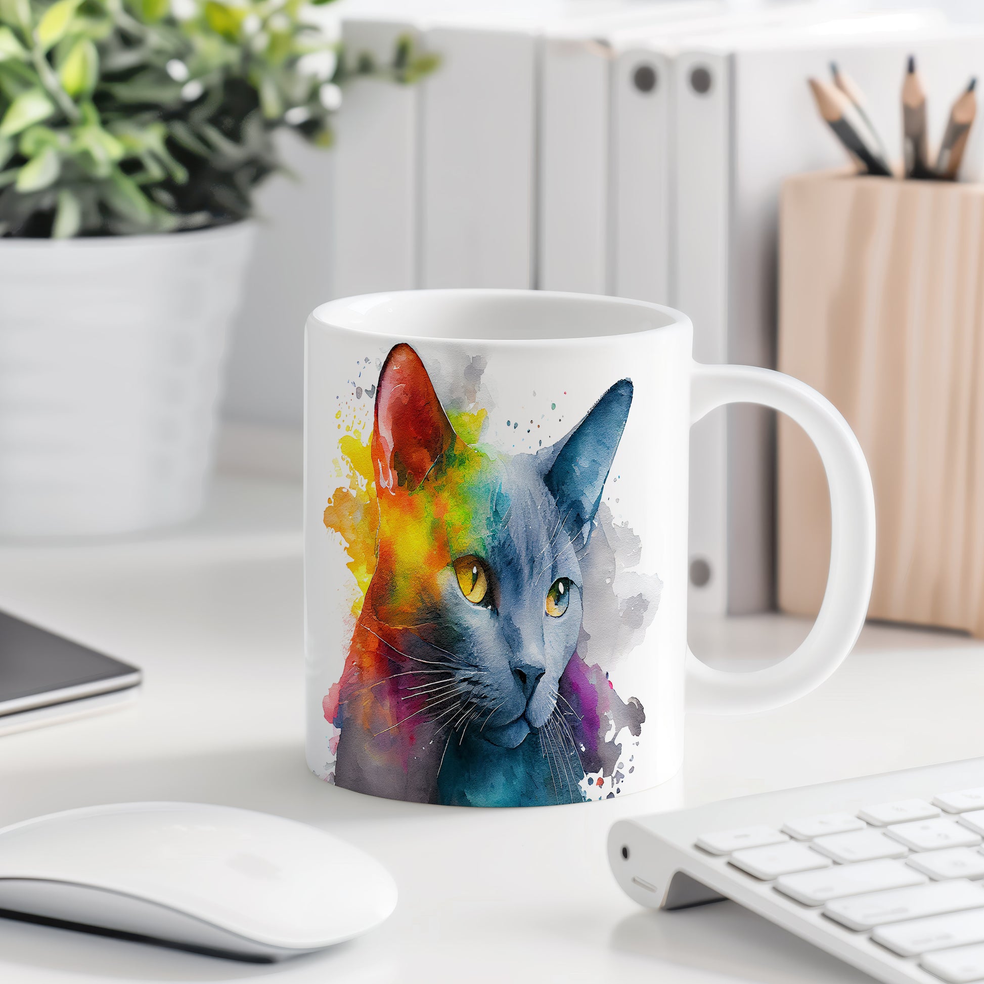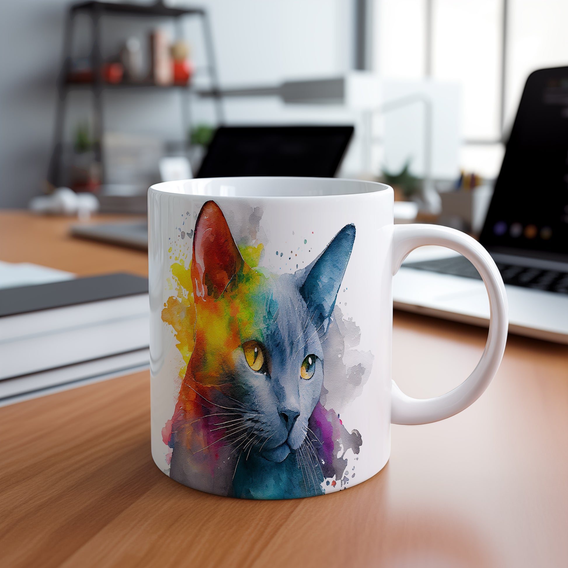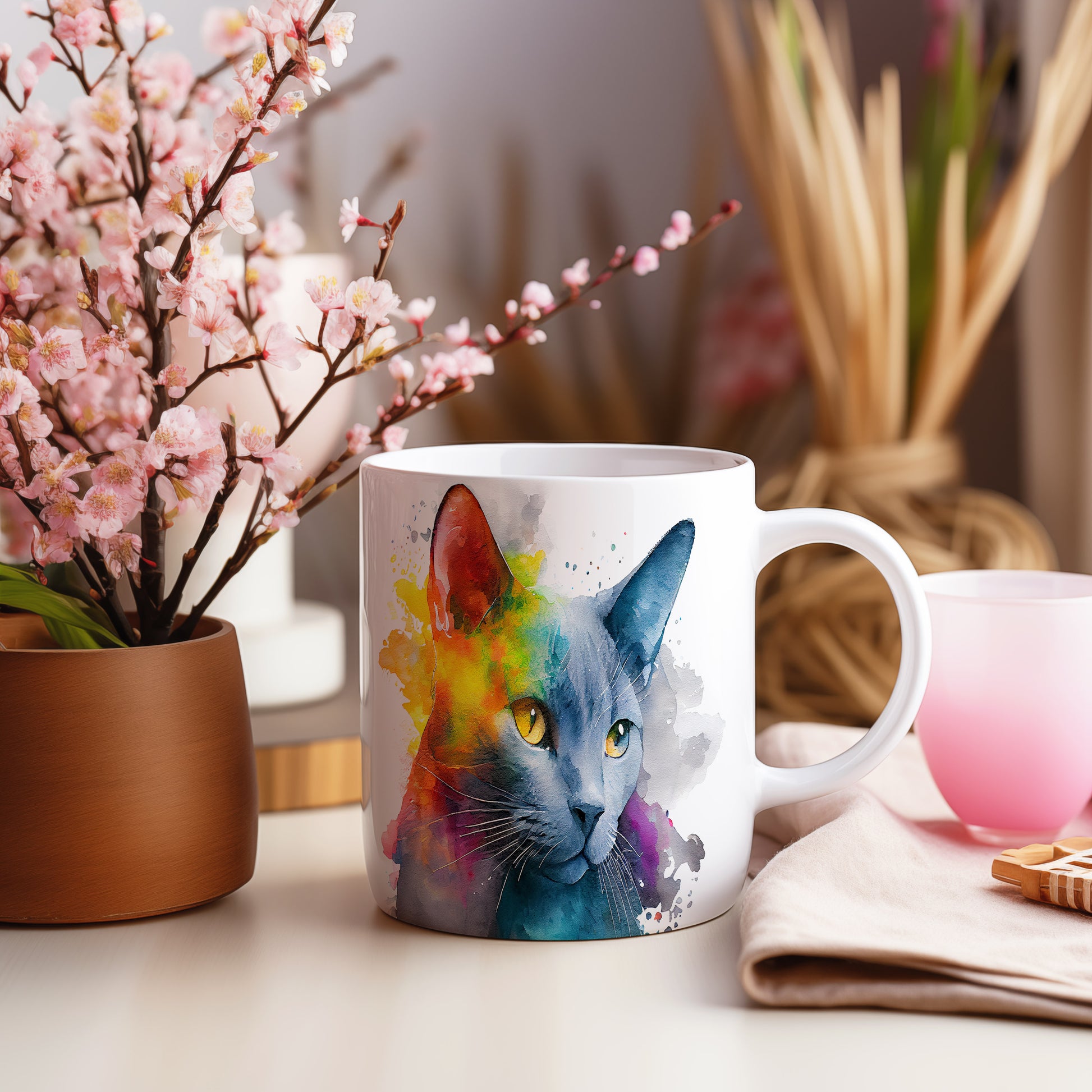Hrnek s roztomilou kočkou v akvarelovém stylu – moderním vzhledem