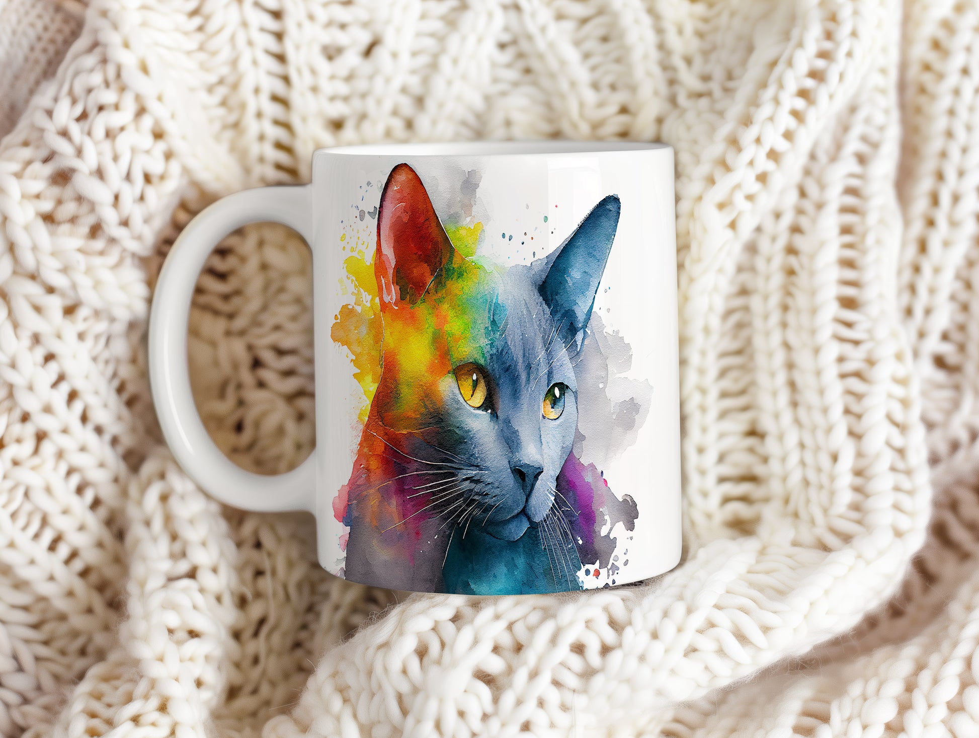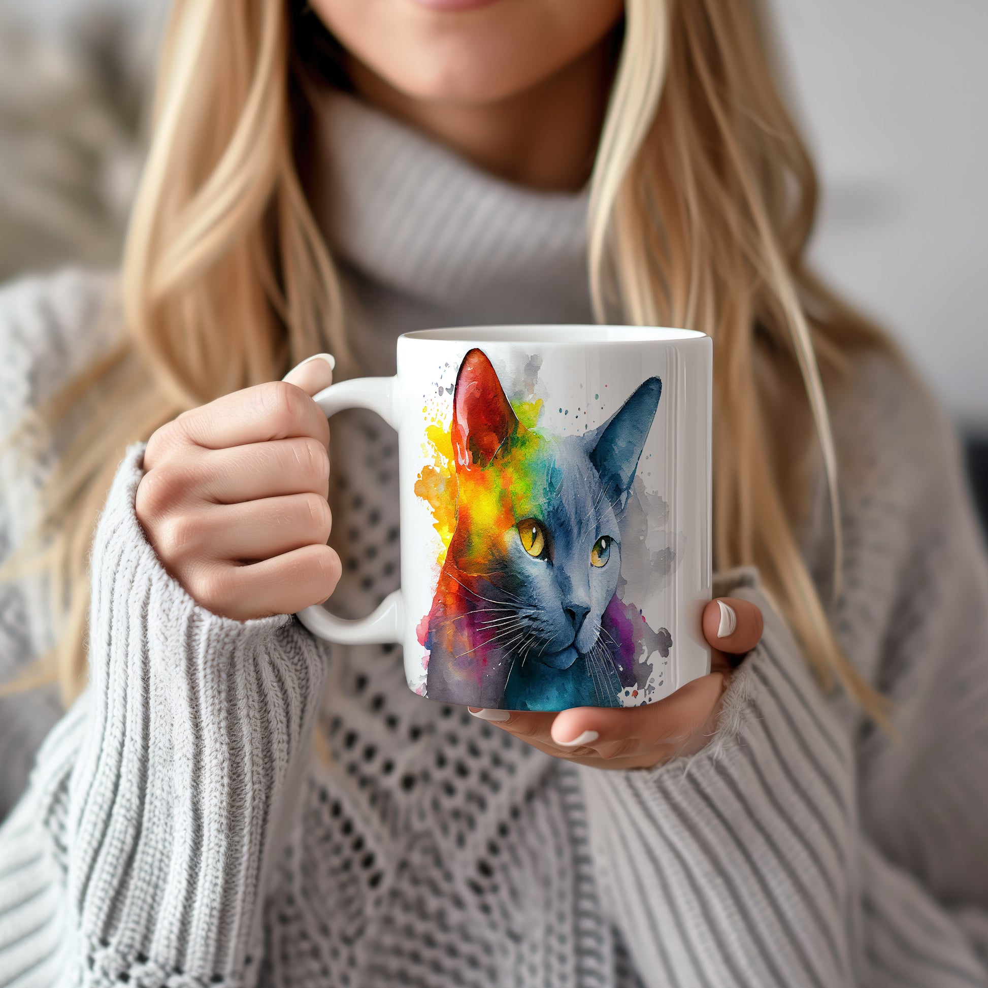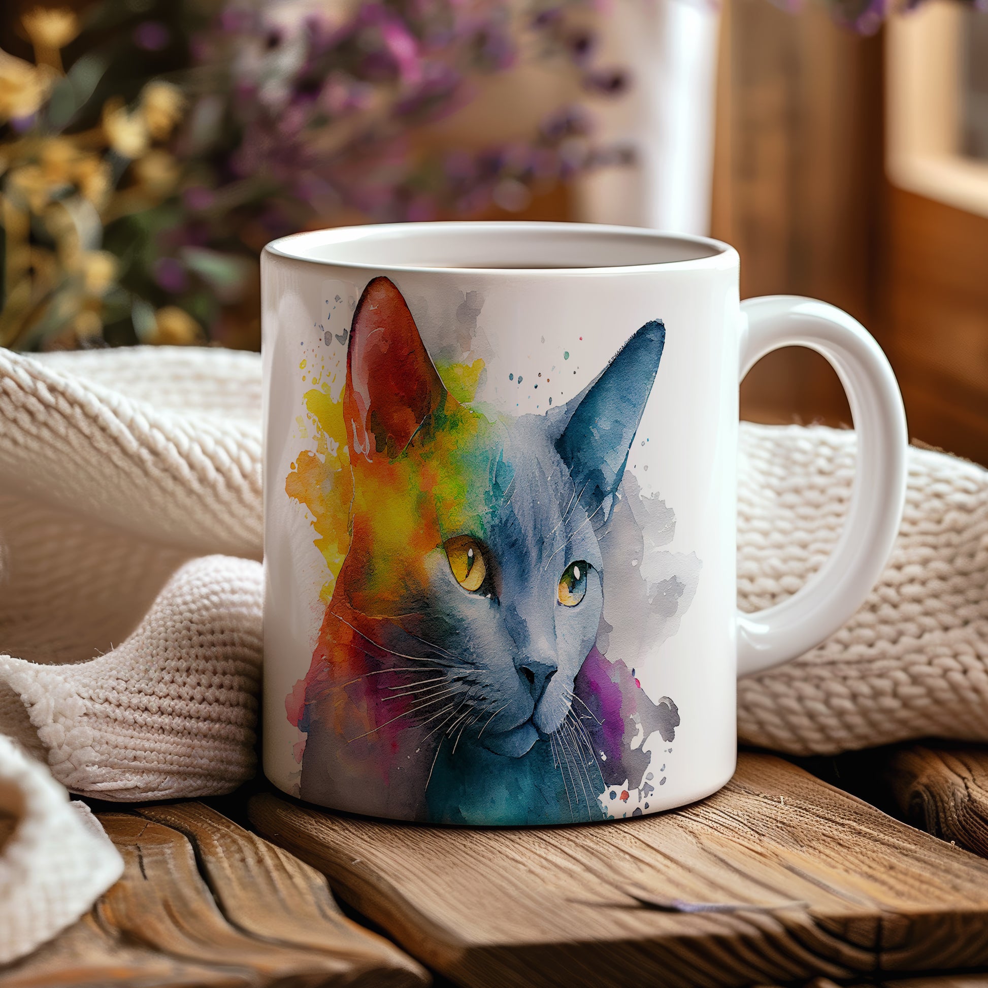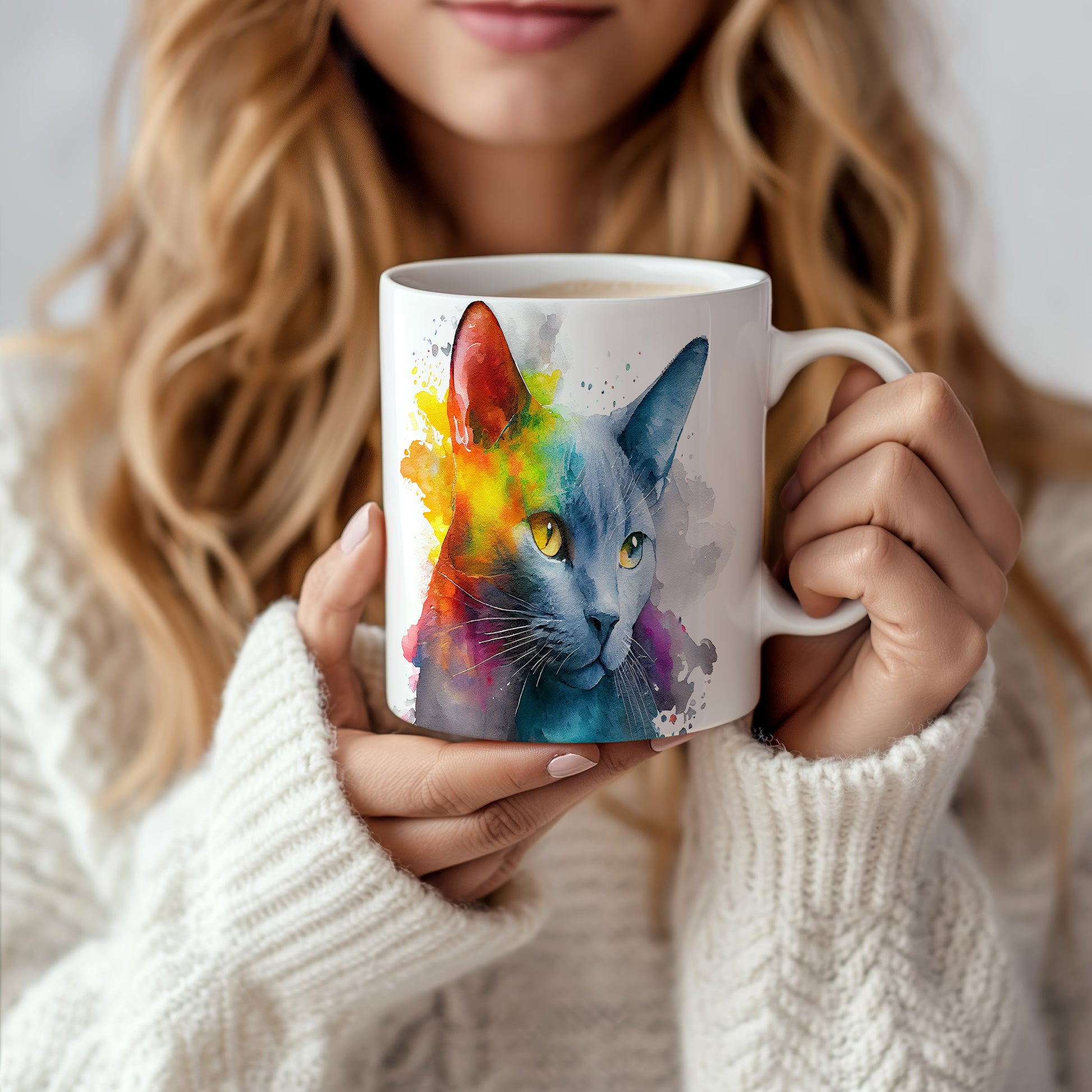 Hrnek s roztomilou kočkou v akvarelovém stylu – moderním vzhledem