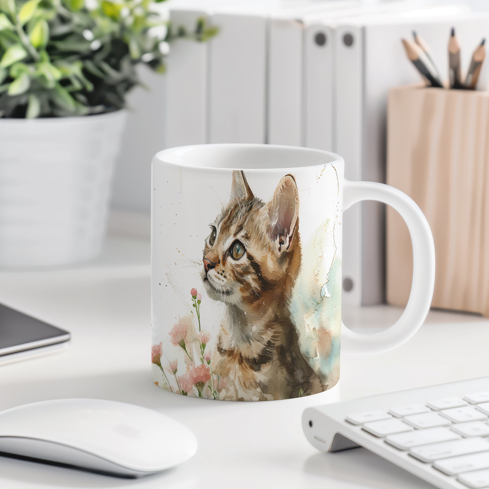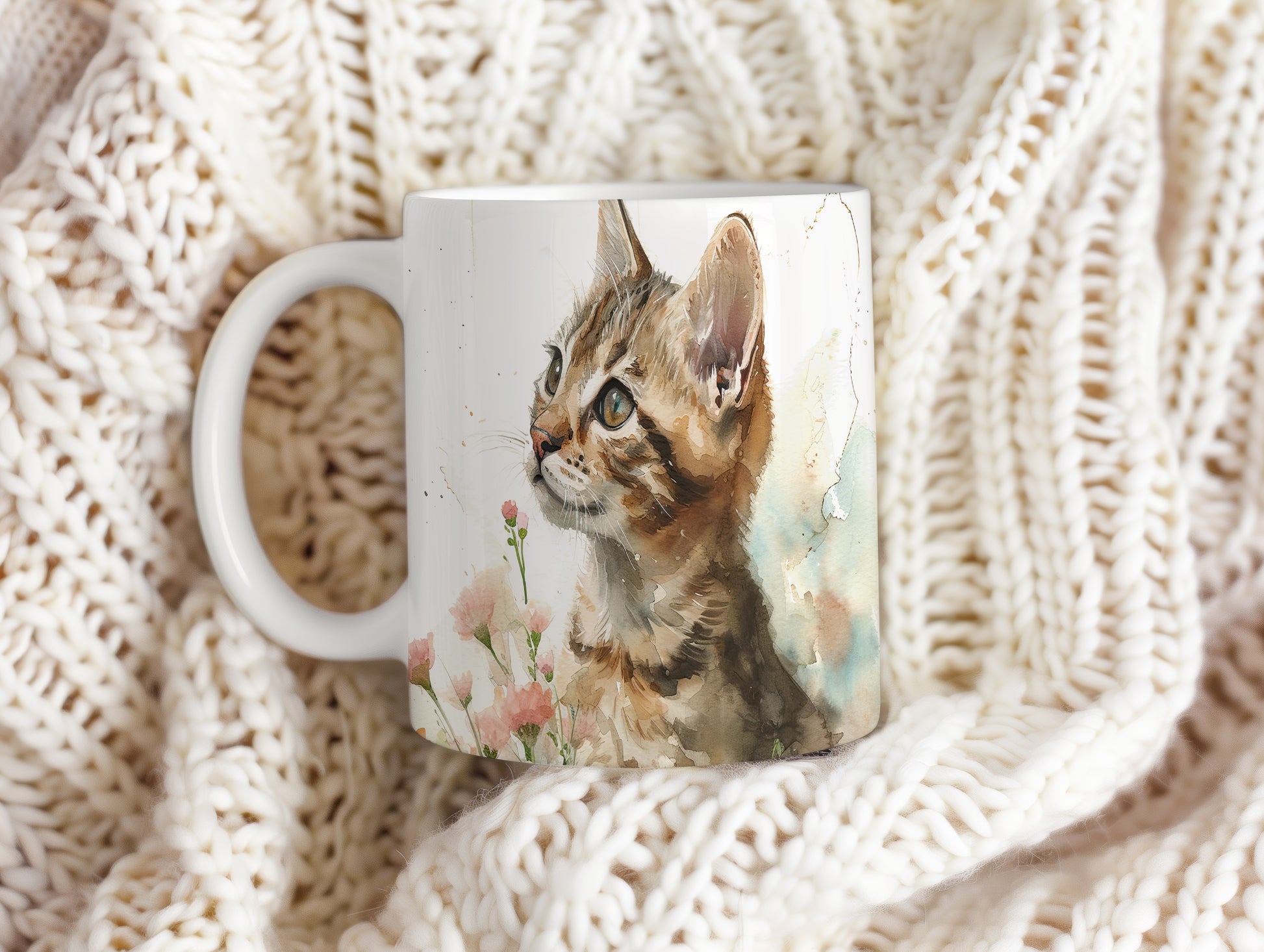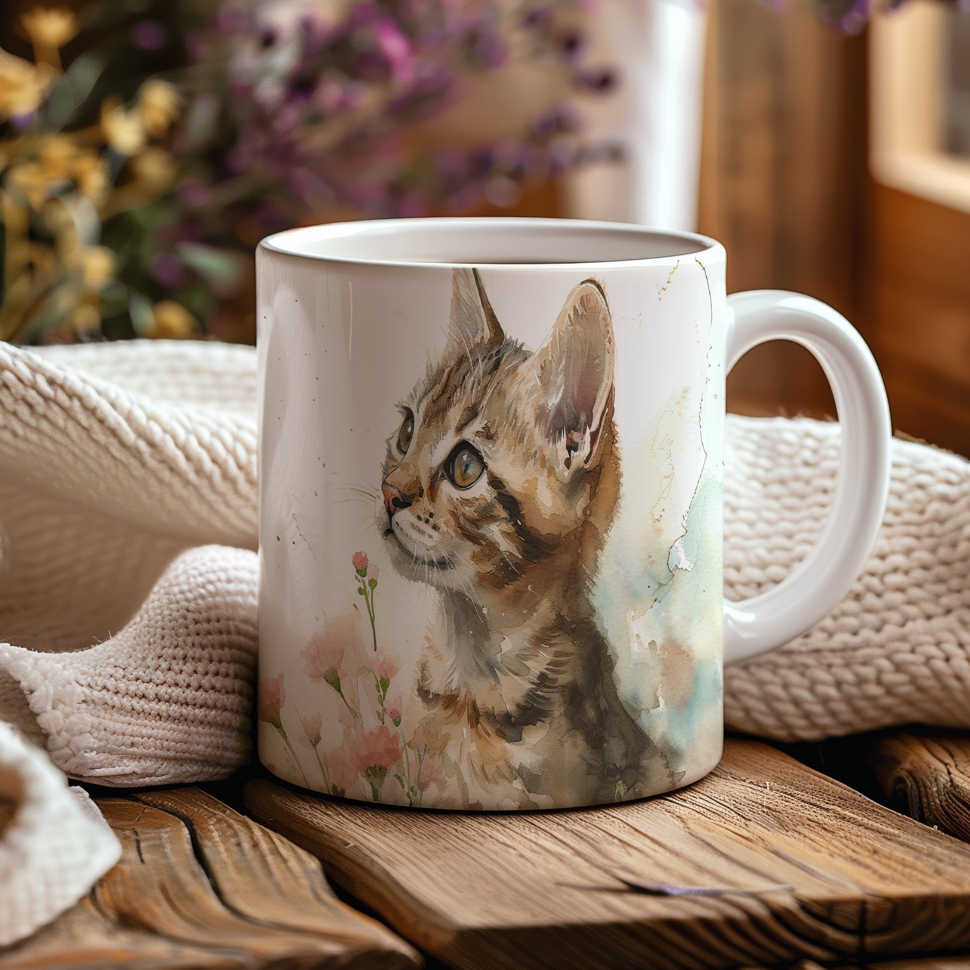 Hrnek s roztomilou kočkou v akvarelovém stylu – výrazným designem