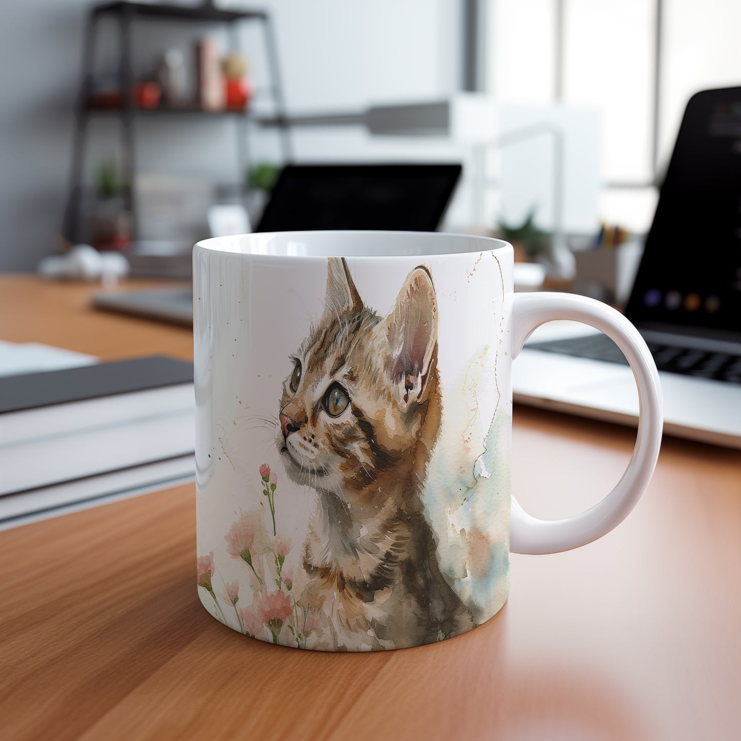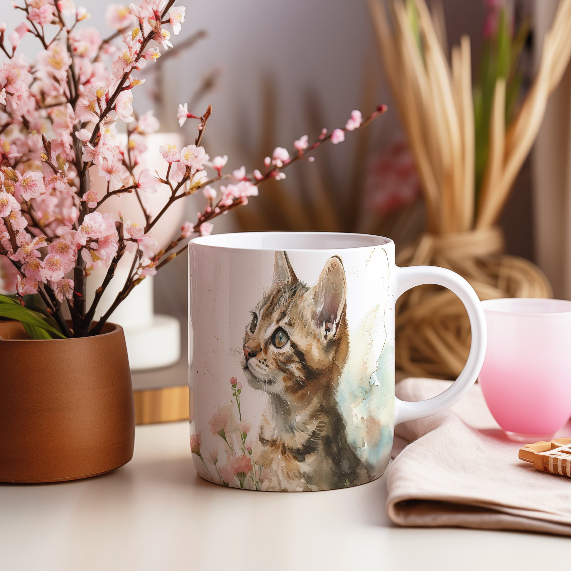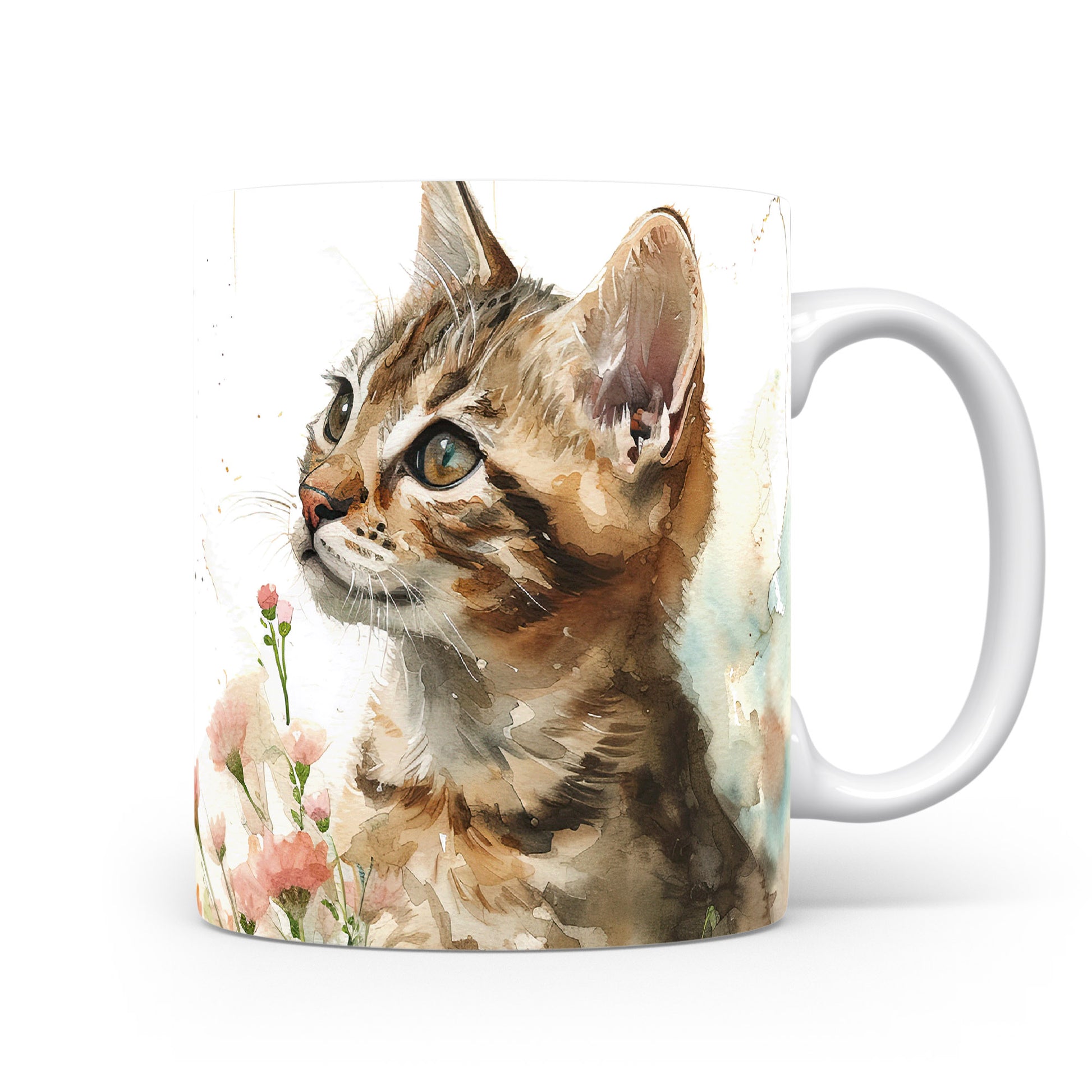 Hrnek s roztomilou kočkou v akvarelovém stylu – výrazným designem