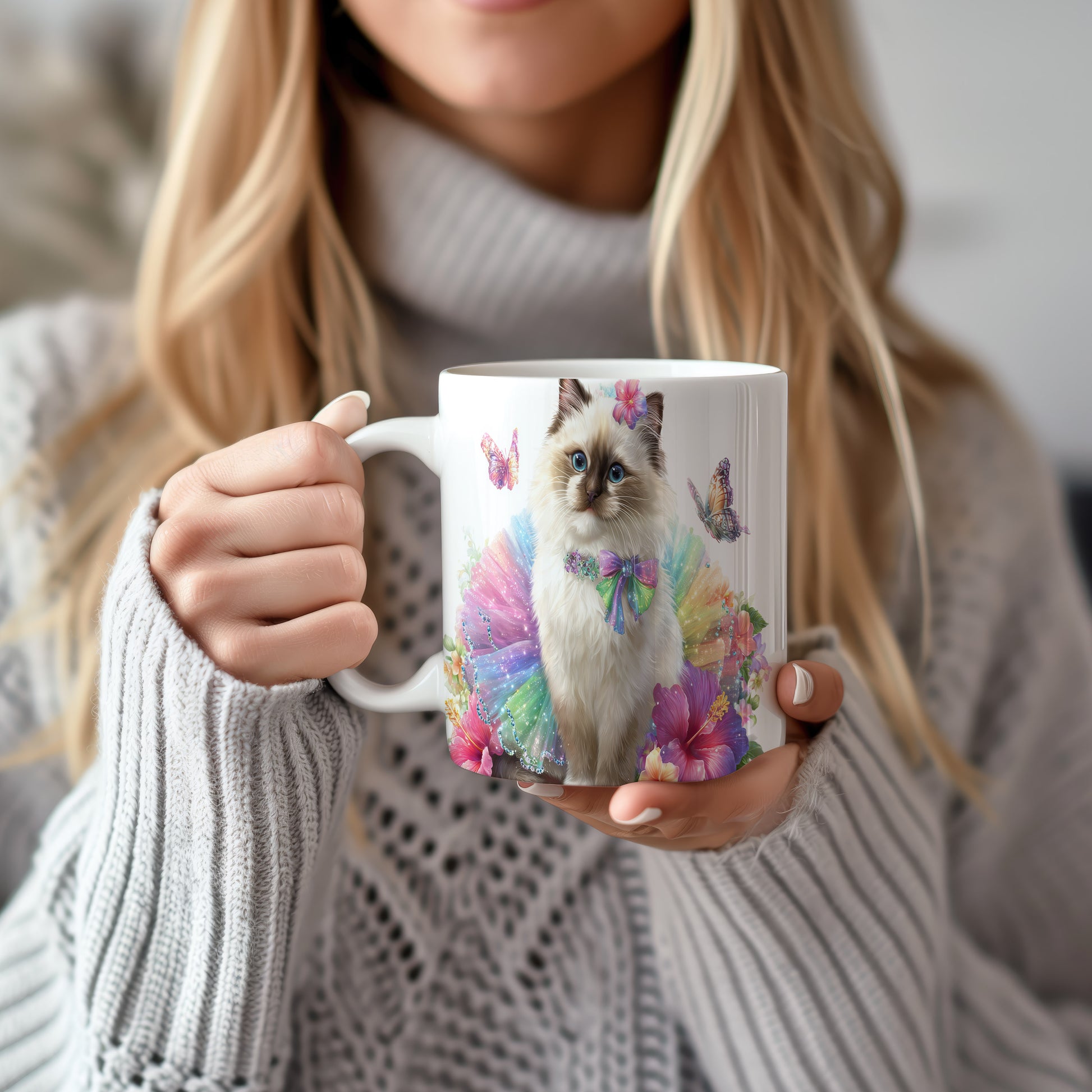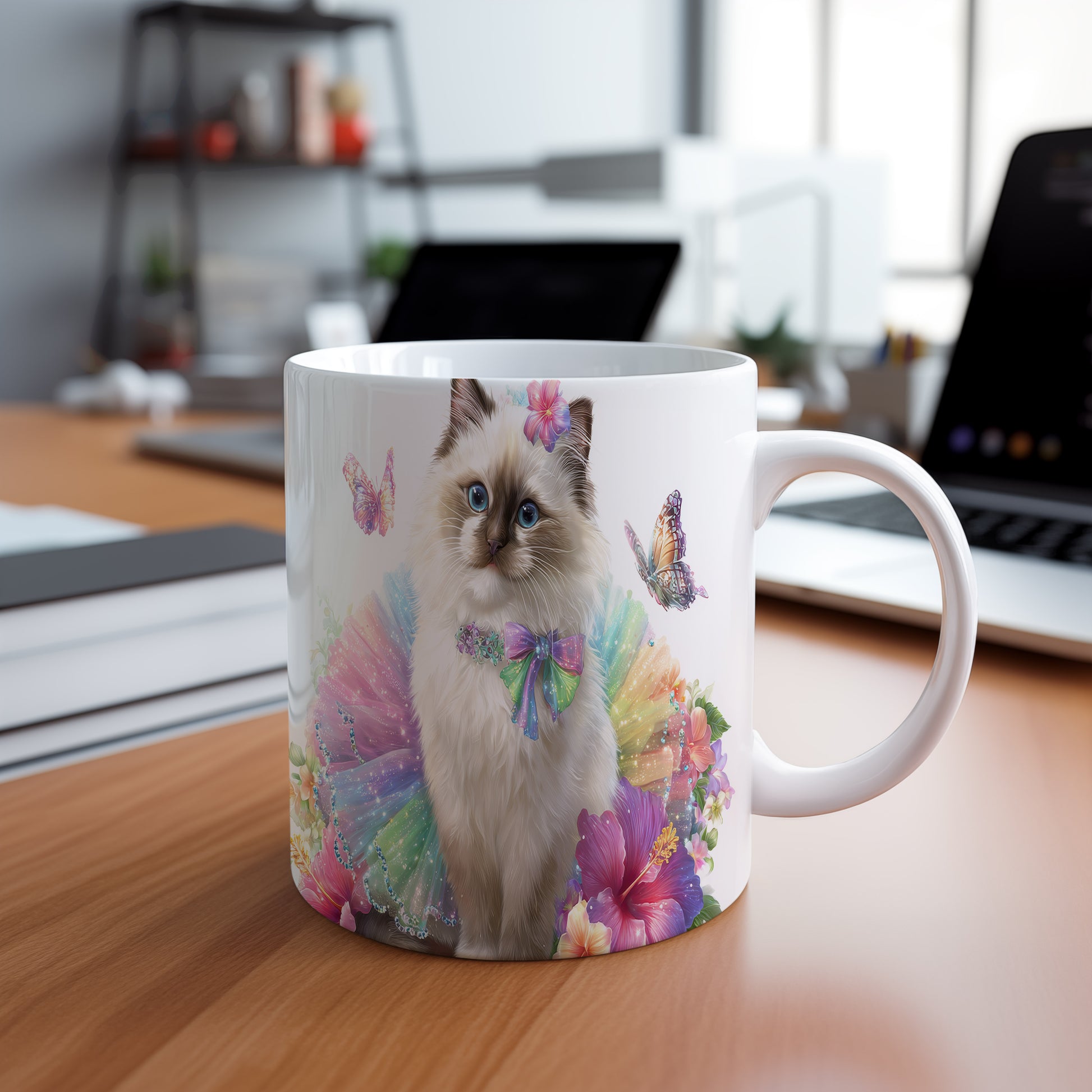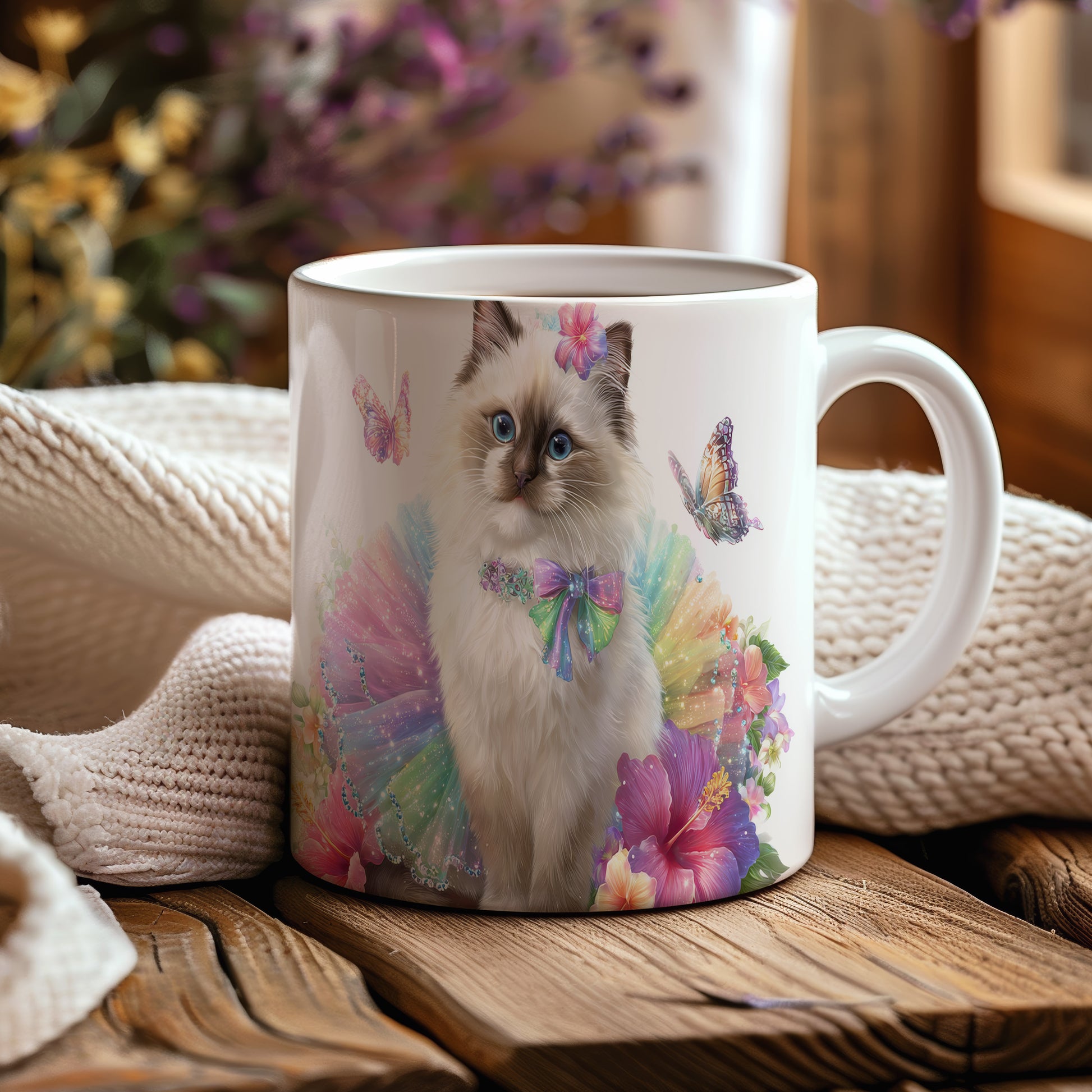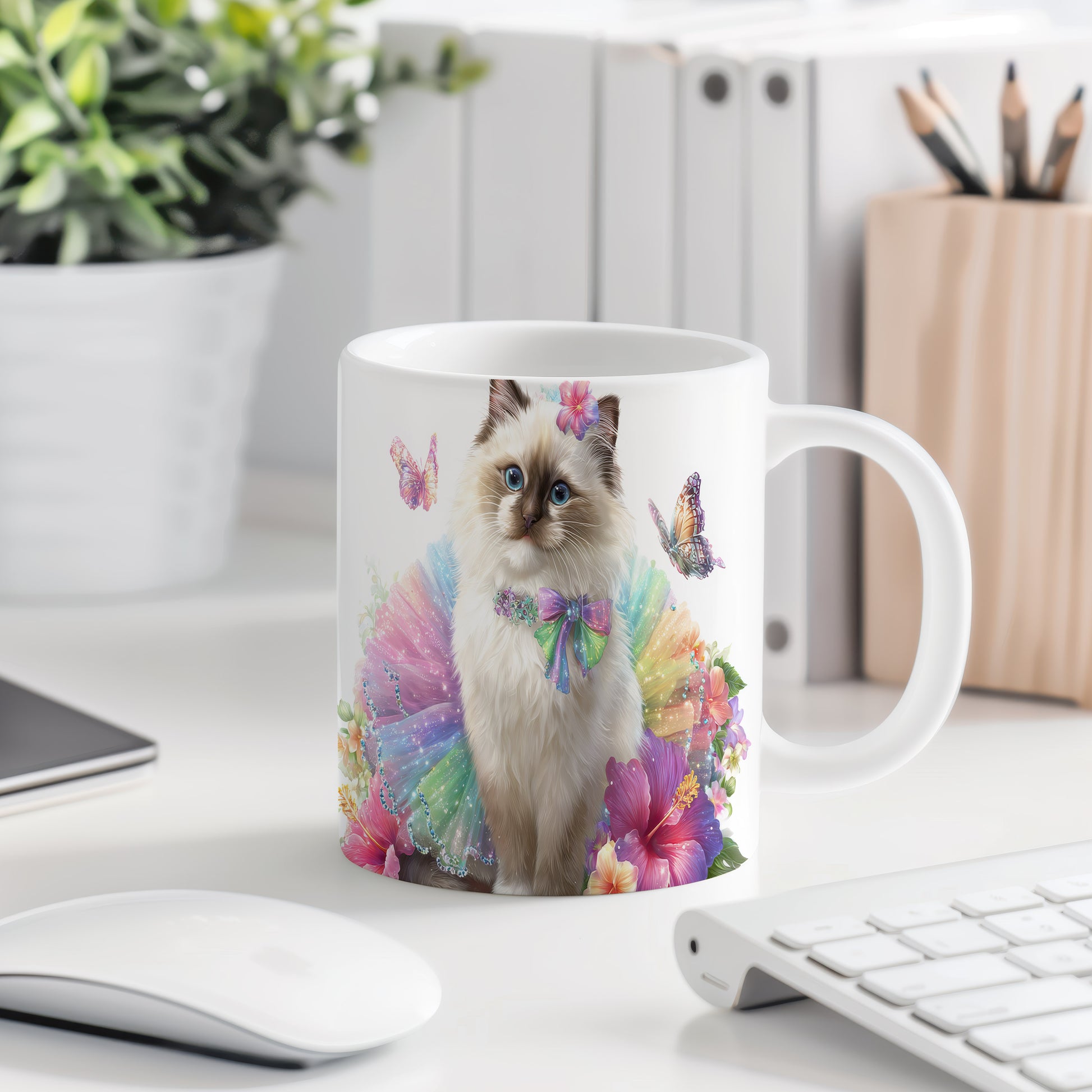 Tento keramický hrnek s motivem roztomilé kočky oblečené v barevném tutu je skvělým kouskem pro milovníky koček a veselých designů. Je ideální jako dárek pro přátele nebo rodinu, kteří ocení hravé a barevné prvky. Materiál: keramika. Objem: 330 ml. Vhodné do myčky i mikrovlnky. Používání tohoto hrnku přináší radost a pozitivní energii do každého dne.