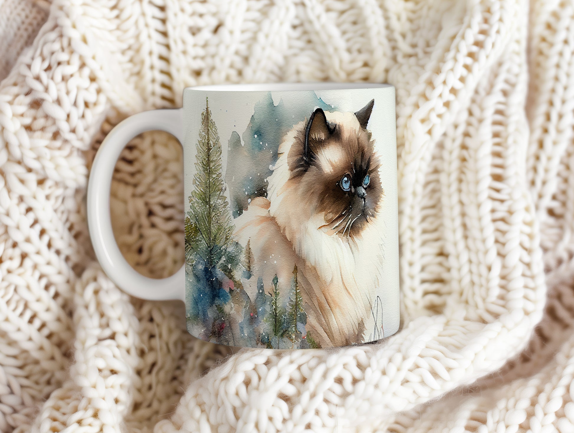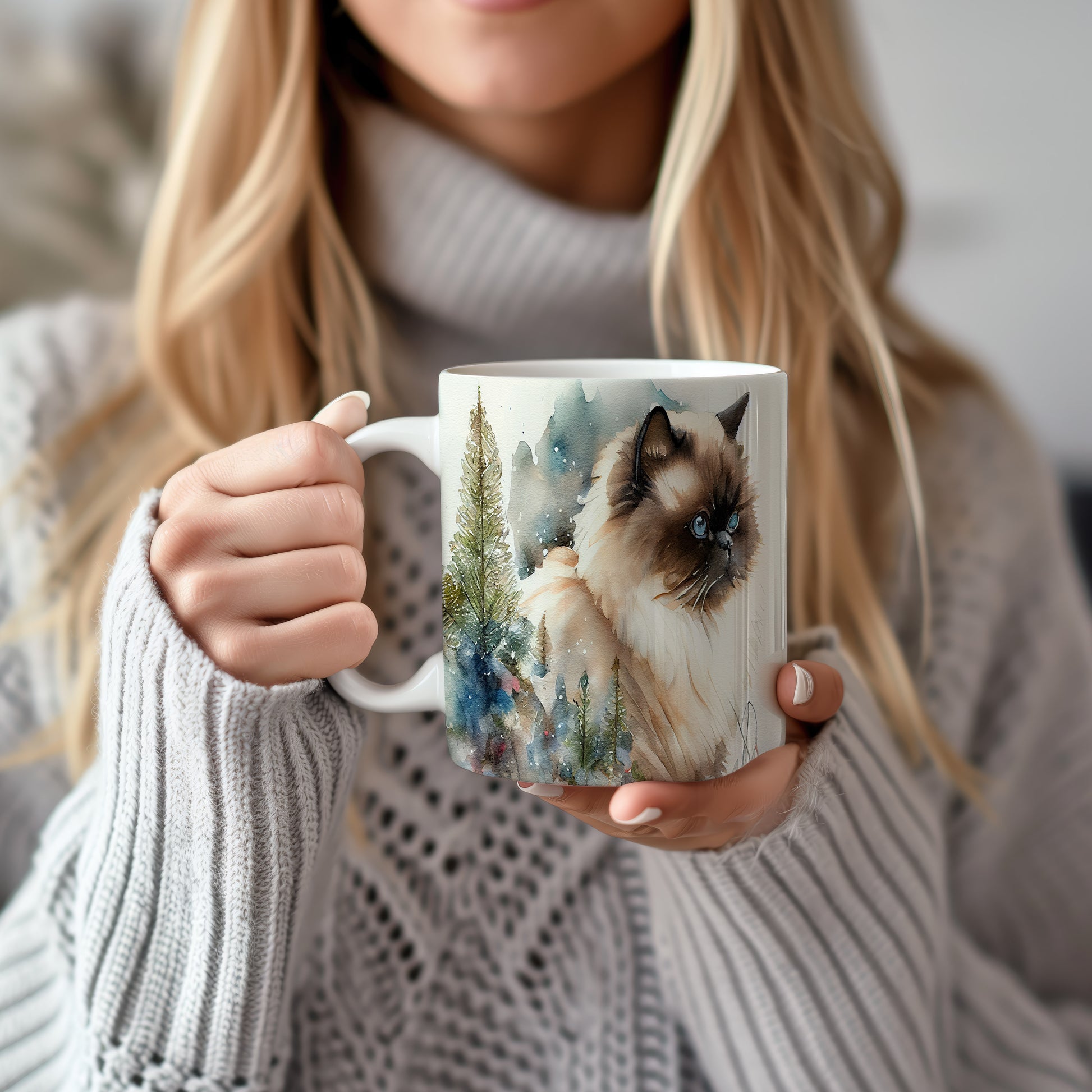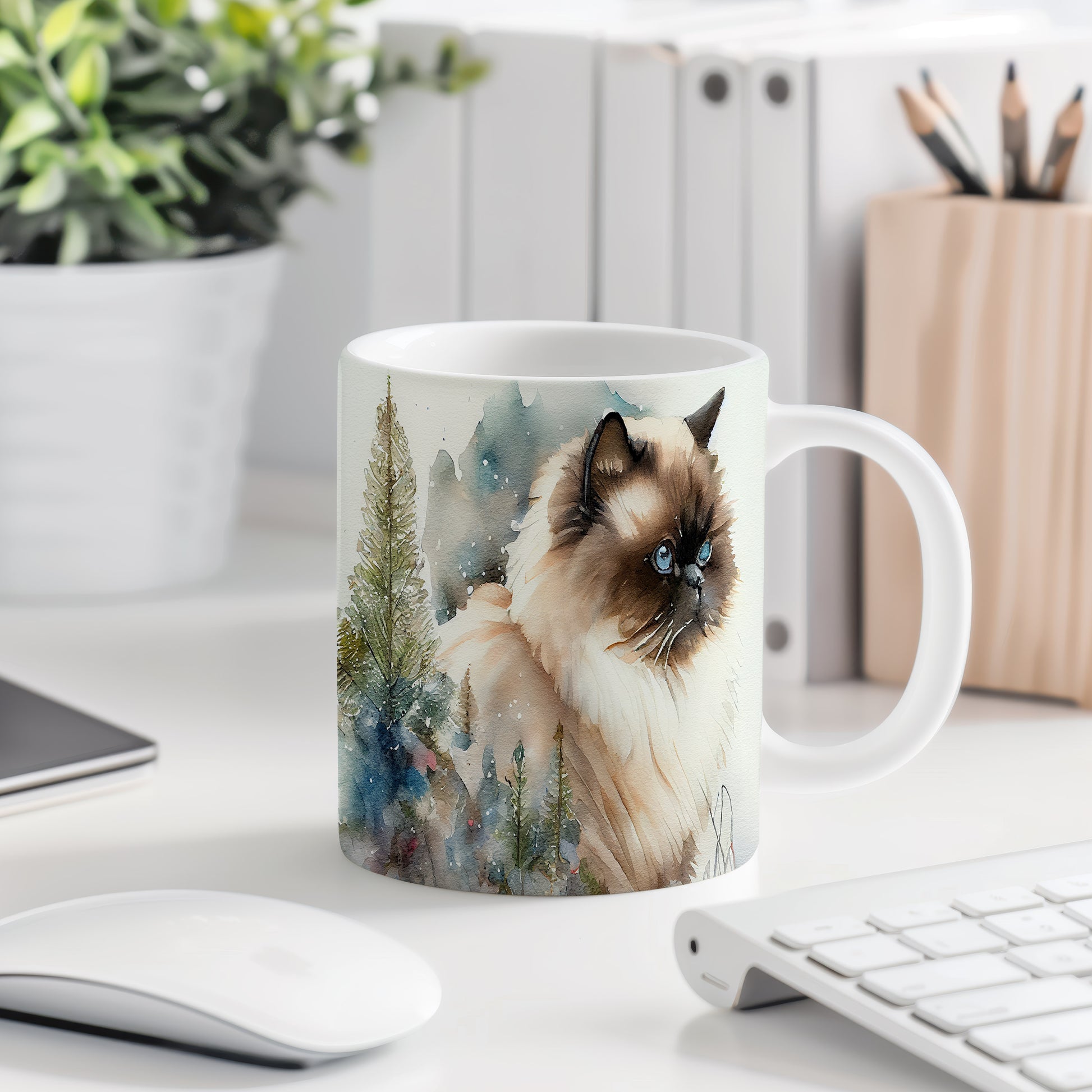 Tento keramický hrnek zobrazuje roztomilou kočku v přírodě, obklopenou stromy a jemným sněžením. Je ideální pro milovníky koček a skvělým dárkem pro každého, kdo si rád vychutnává svůj oblíbený nápoj. Materiál: keramika. Objem: 330 ml. Vhodné do myčky i mikrovlnky. Používání tohoto hrnku přináší útulný zážitek při každém doušku.