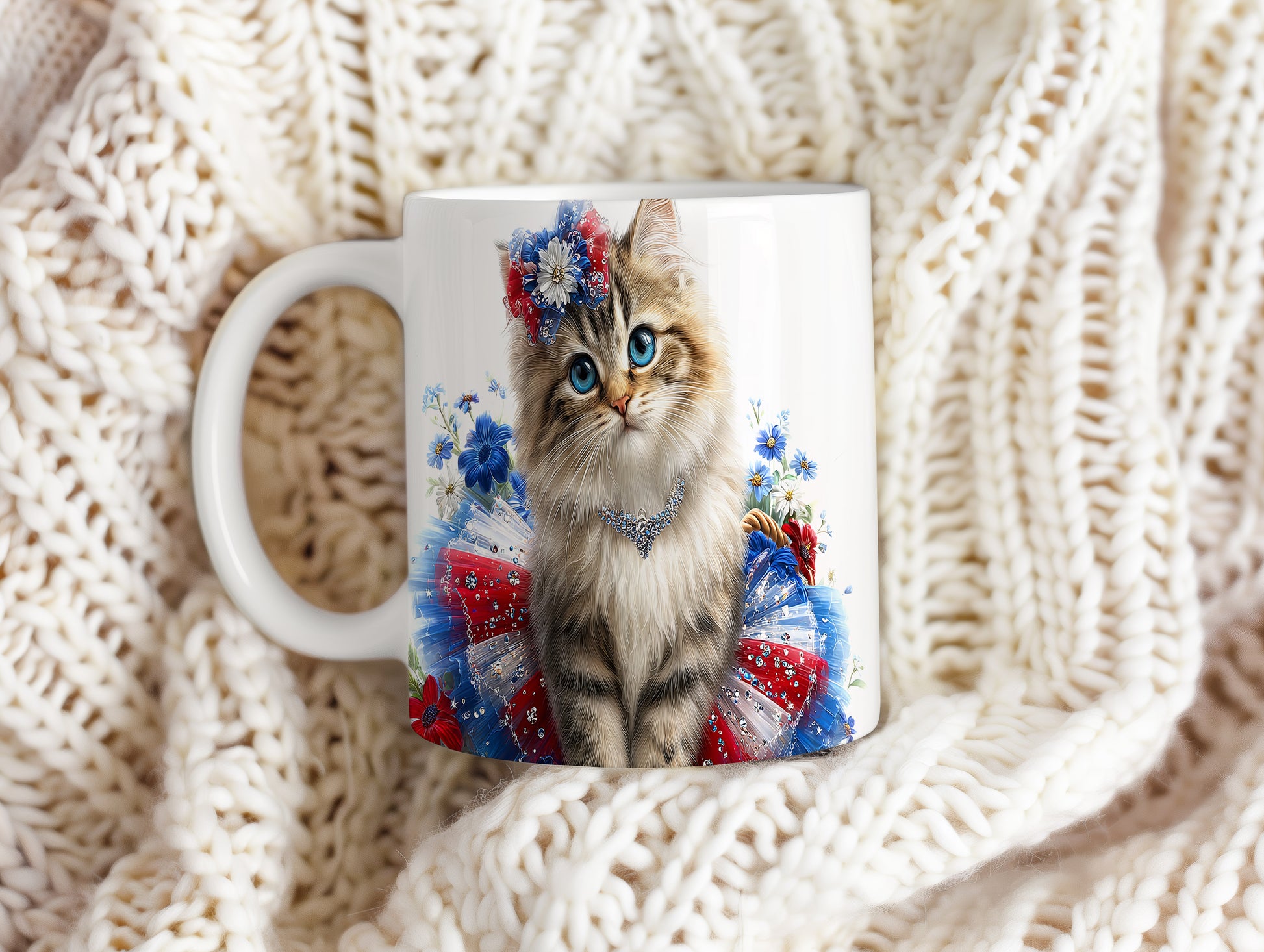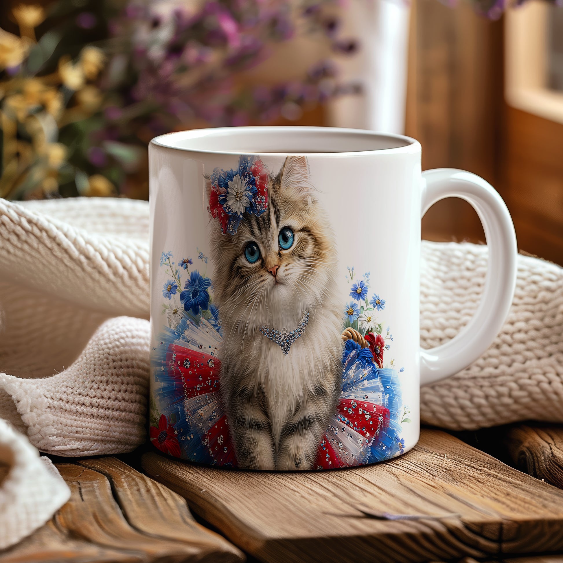 Na hrnku je vyobrazena roztomilá kočka s velkýma modrýma očima a květinami. Tento hrnek je ideální pro milovníky koček a skvělý tip na dárek pro přátele nebo rodinu. Materiál: keramika. Objem: 330 ml. Vhodné do myčky i mikrovlnky. Používání tohoto hrnku přináší radost a útulnost do každého dne.