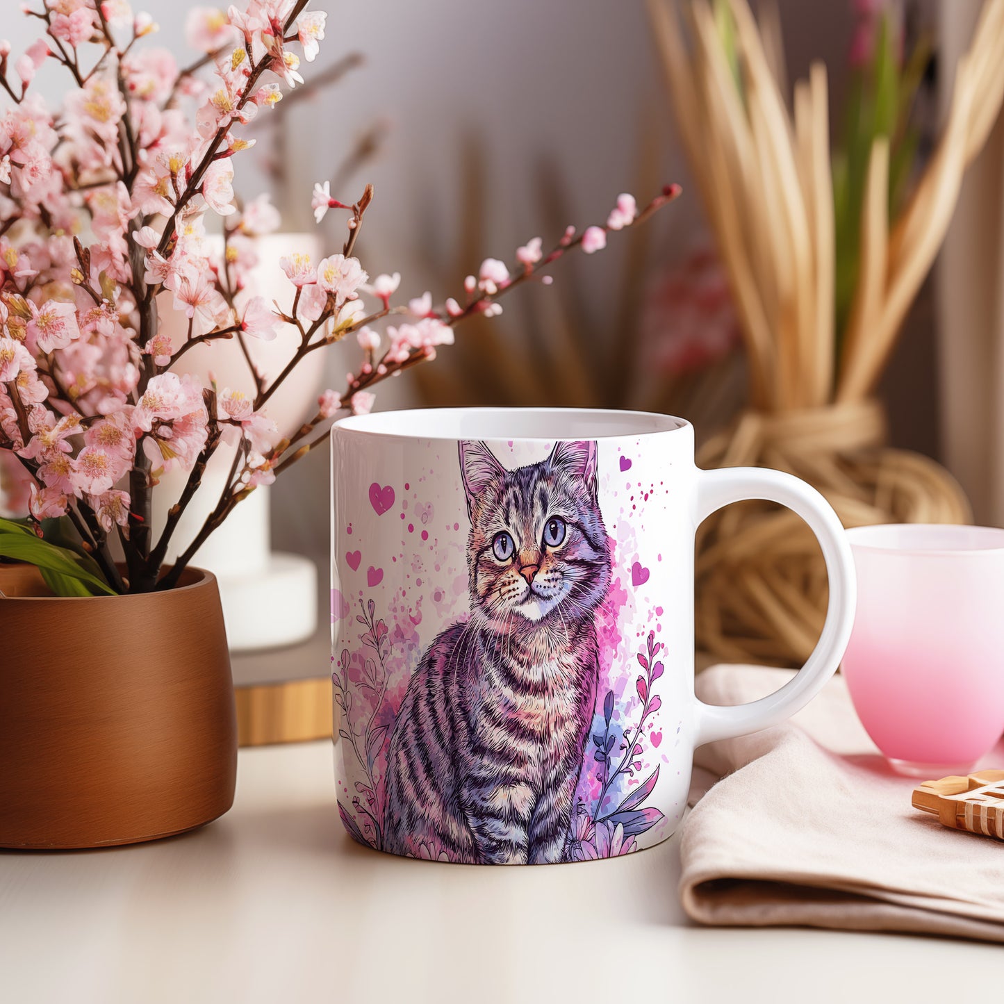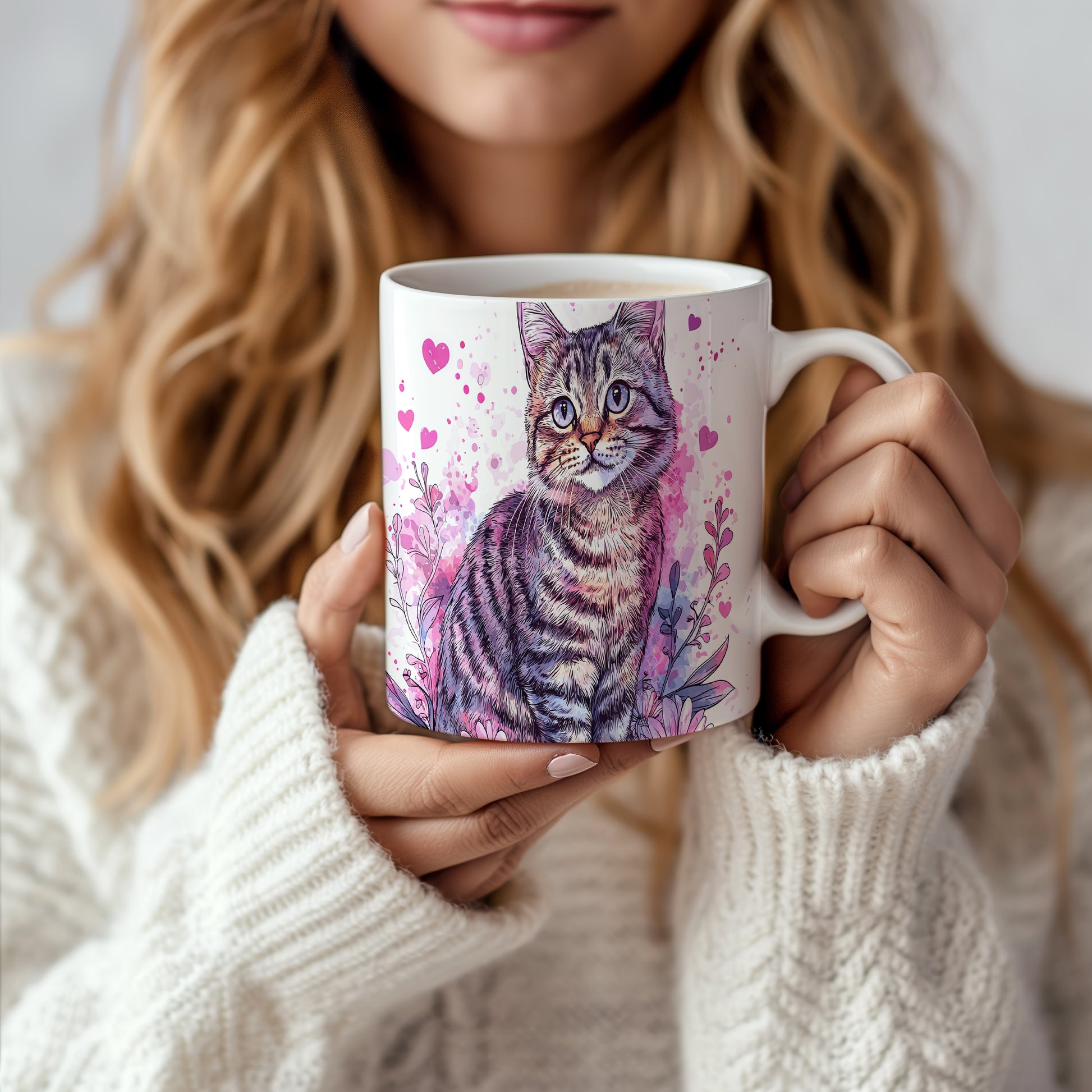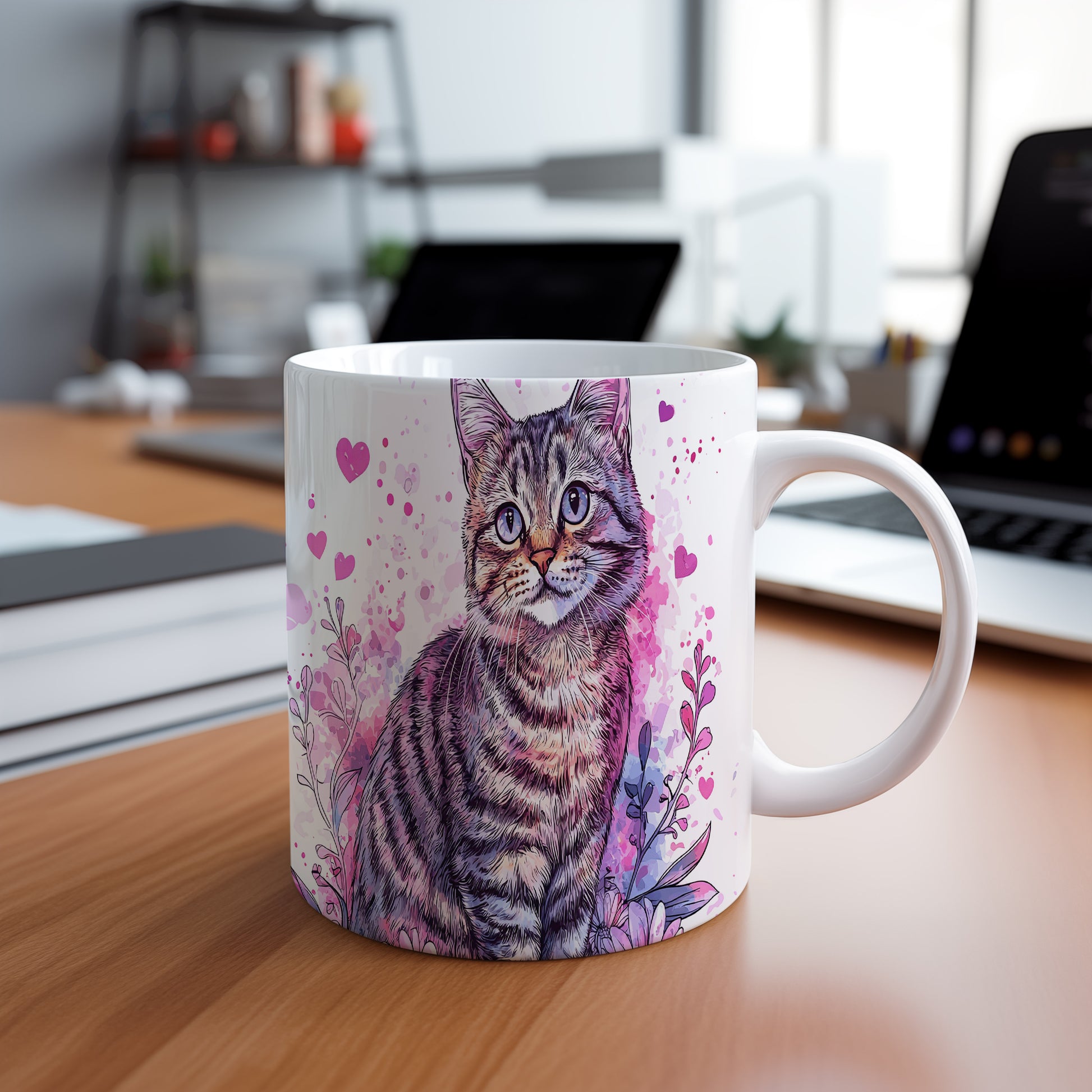 Tento hrnek s motivem roztomilé kočky v jemných tónech růžové a fialové potěší každého milovníka zvířat. Je skvělým dárkem pro přátele nebo rodinu, kteří ocení originální design. Materiál: keramika. Objem: 330 ml. Vhodné do myčky i mikrovlnky. Díky svému jedinečnému vzhledu přinese do vašeho každodenního pití radost a útulnost.