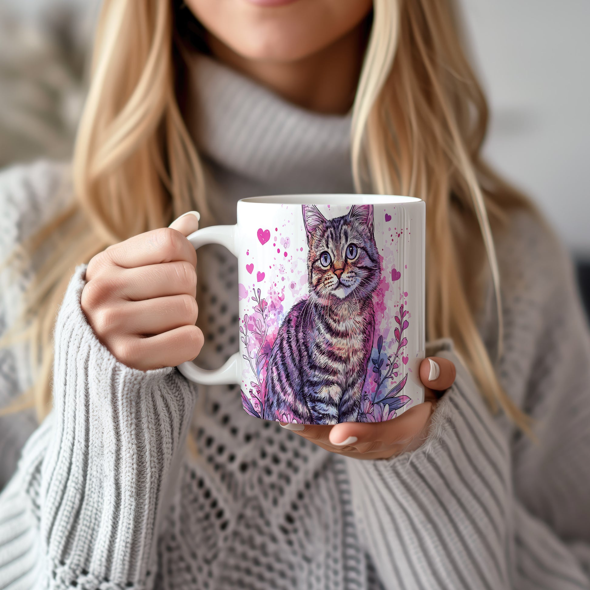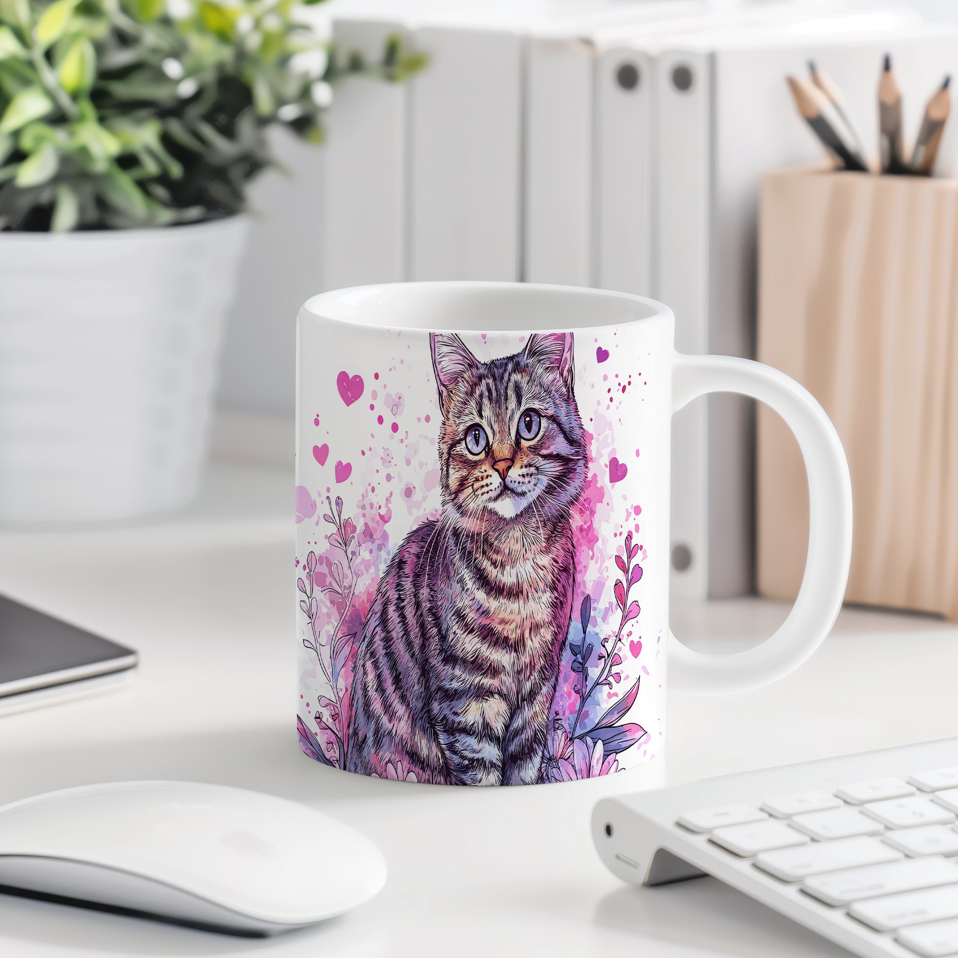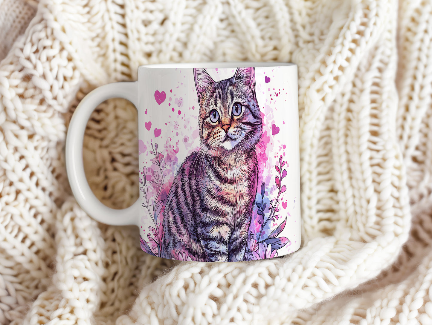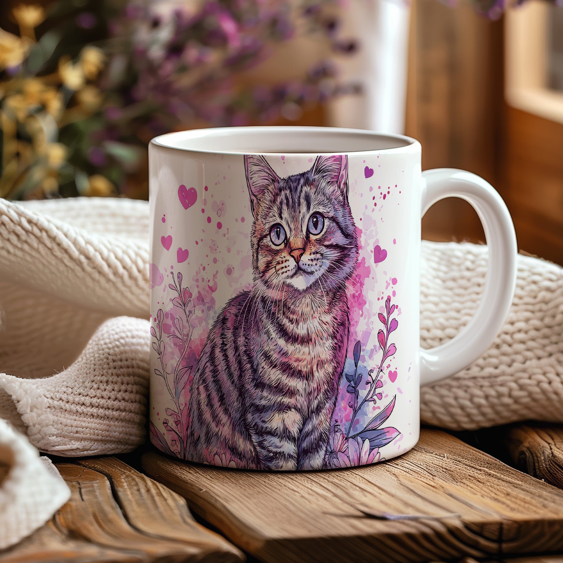 Tento hrnek s motivem roztomilé kočky v jemných tónech růžové a fialové potěší každého milovníka zvířat. Je skvělým dárkem pro přátele nebo rodinu, kteří ocení originální design. Materiál: keramika. Objem: 330 ml. Vhodné do myčky i mikrovlnky. Díky svému jedinečnému vzhledu přinese do vašeho každodenního pití radost a útulnost.
