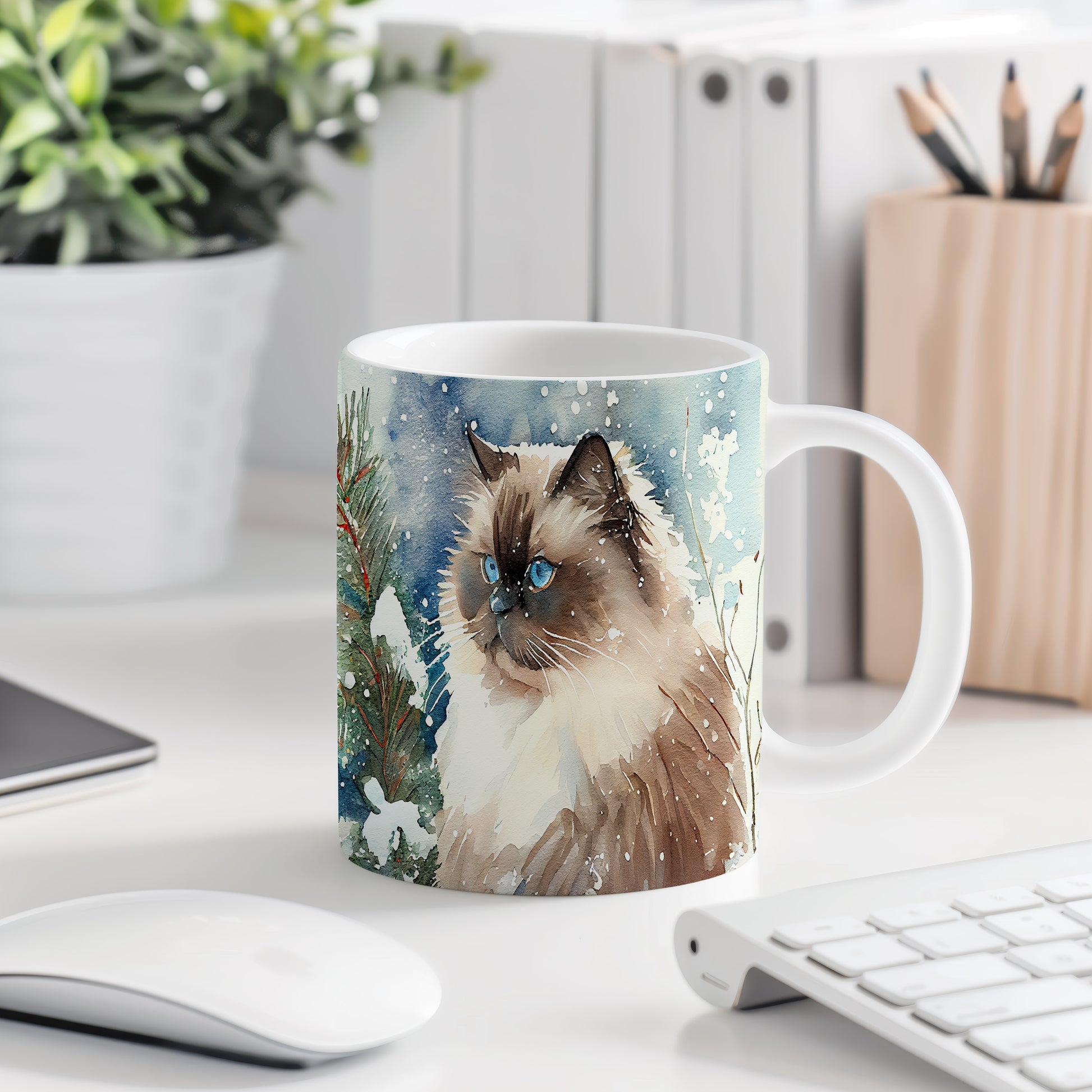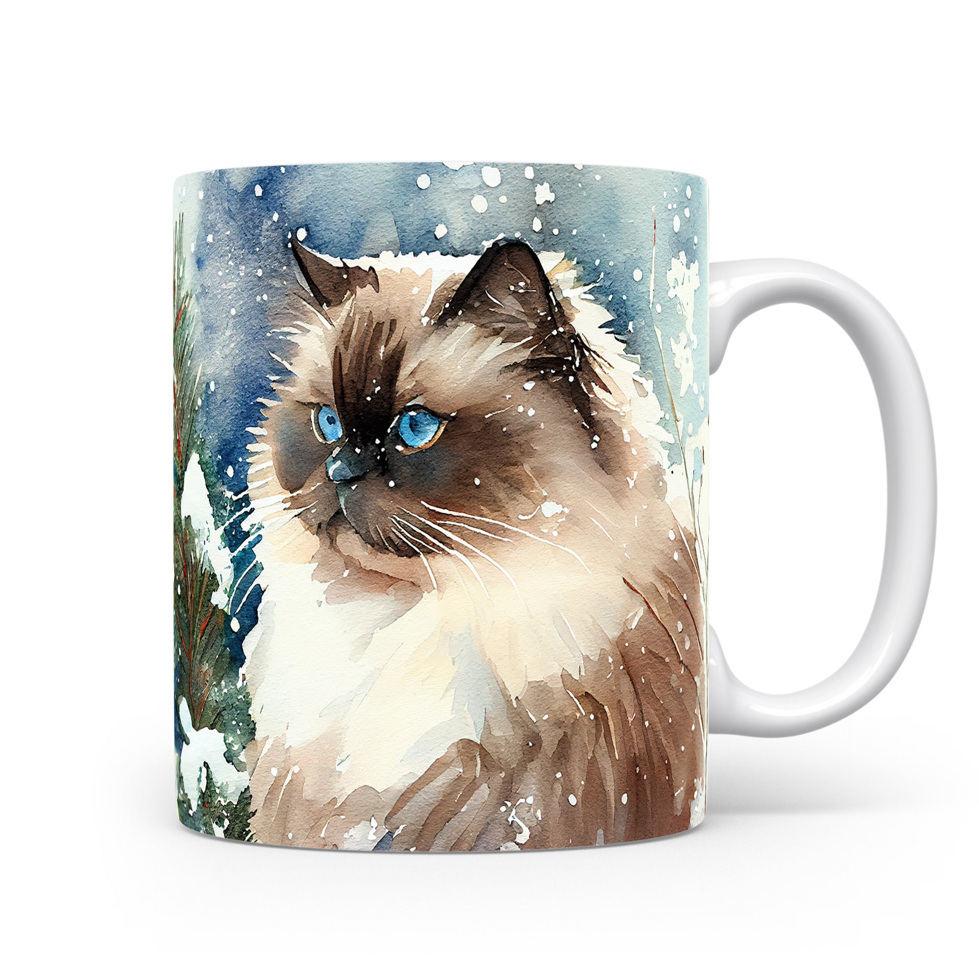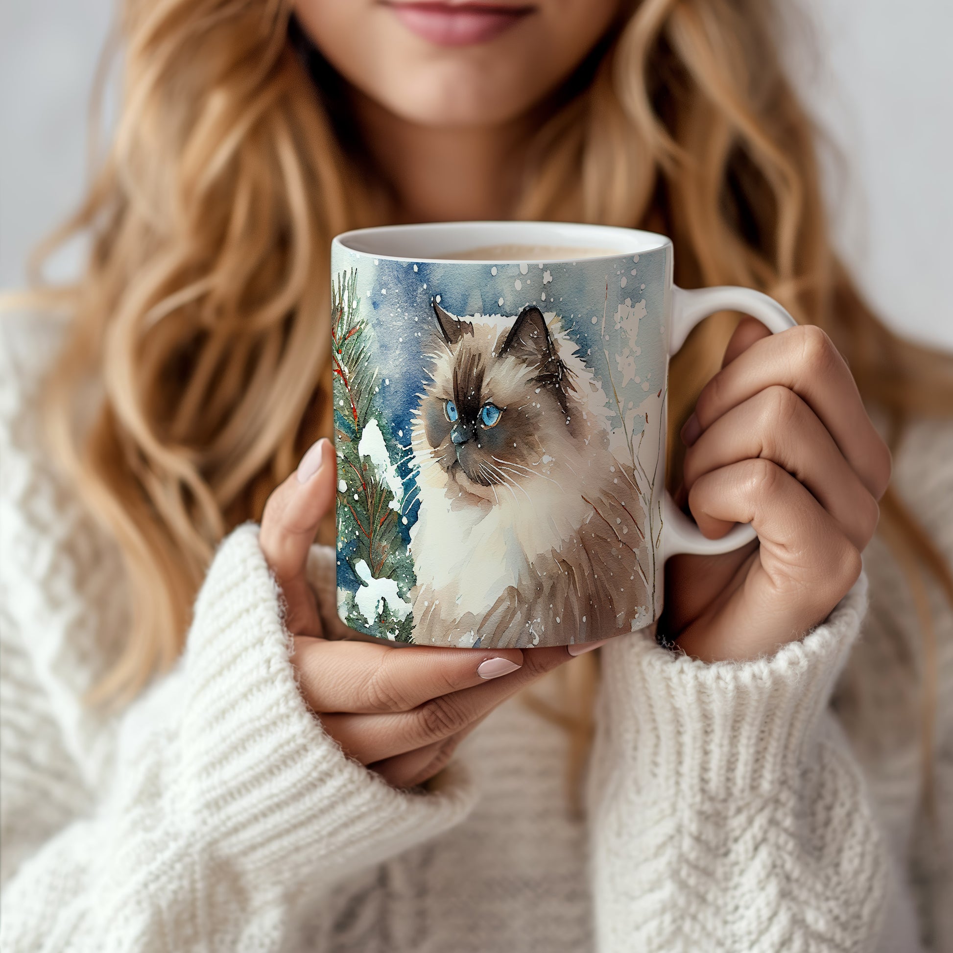 Tento hrnek zobrazuje roztomilou kočku s modrýma očima v zimní krajině. Je ideální pro milovníky koček a zimních motivů, skvělý tip na dárek pro přátele nebo rodinu. Materiál: keramika. Objem: 330 ml. Vhodné do myčky i mikrovlnky. Používání tohoto hrnku přináší radost a útulnost do každého dne.