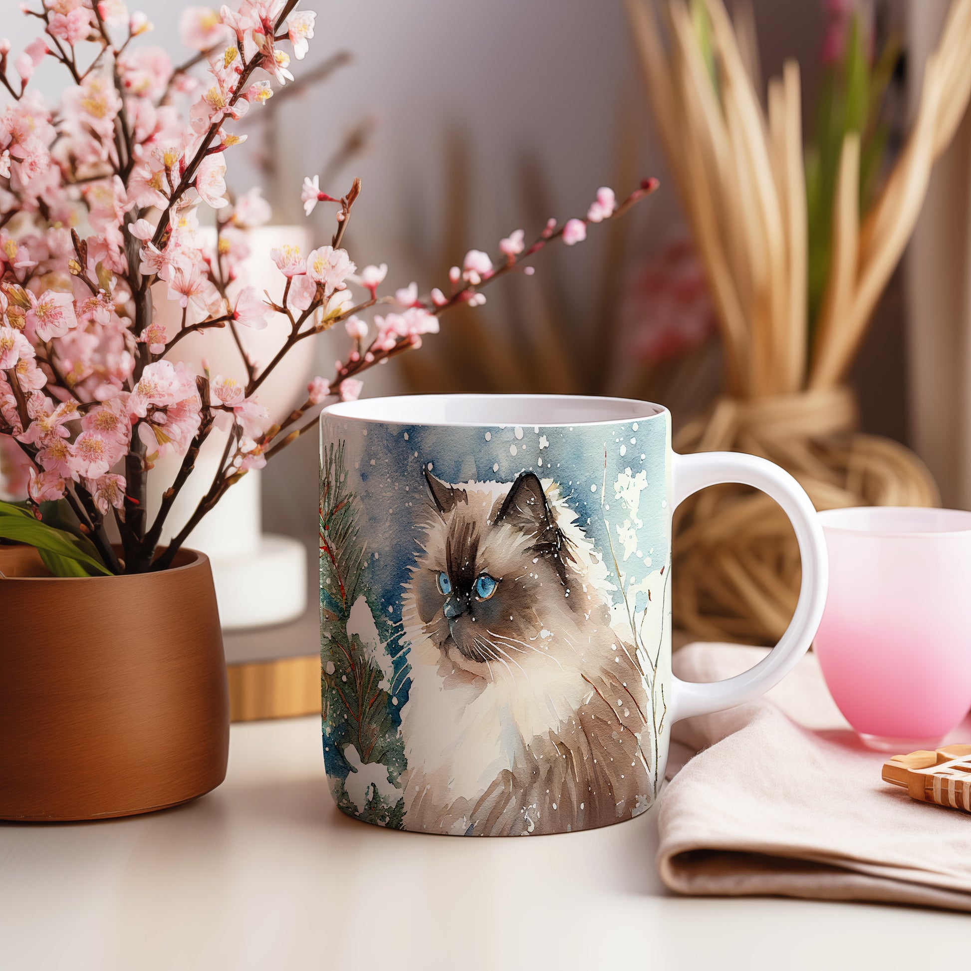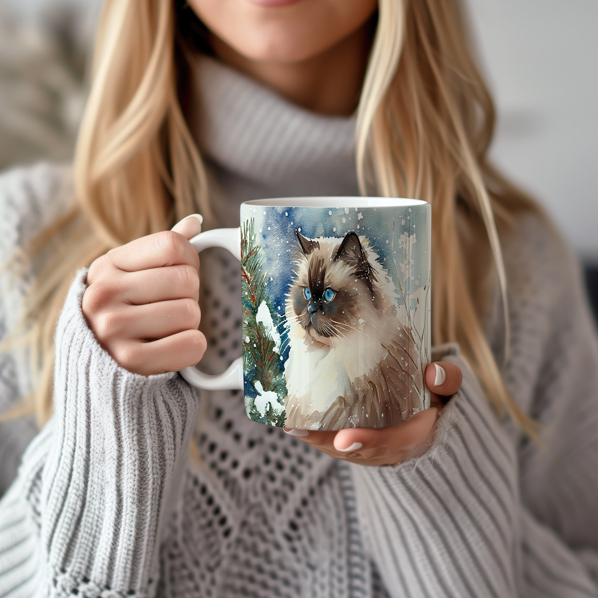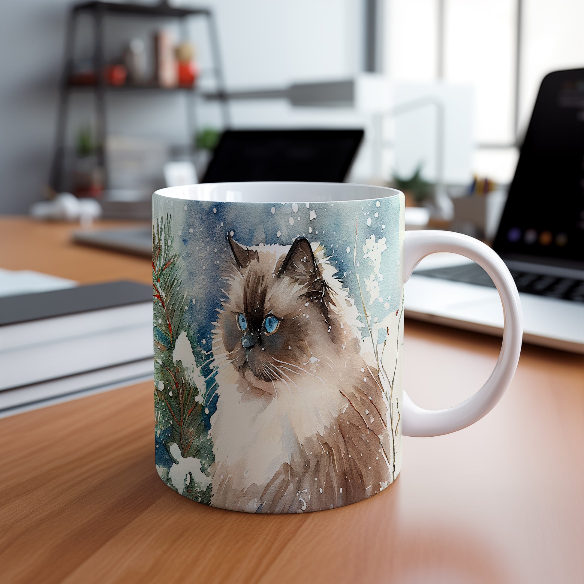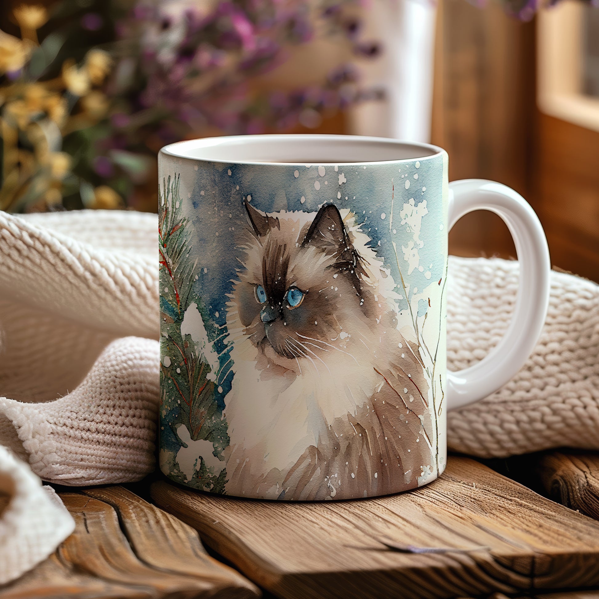 Tento hrnek zobrazuje roztomilou kočku s modrýma očima v zimní krajině. Je ideální pro milovníky koček a zimních motivů, skvělý tip na dárek pro přátele nebo rodinu. Materiál: keramika. Objem: 330 ml. Vhodné do myčky i mikrovlnky. Používání tohoto hrnku přináší radost a útulnost do každého dne.