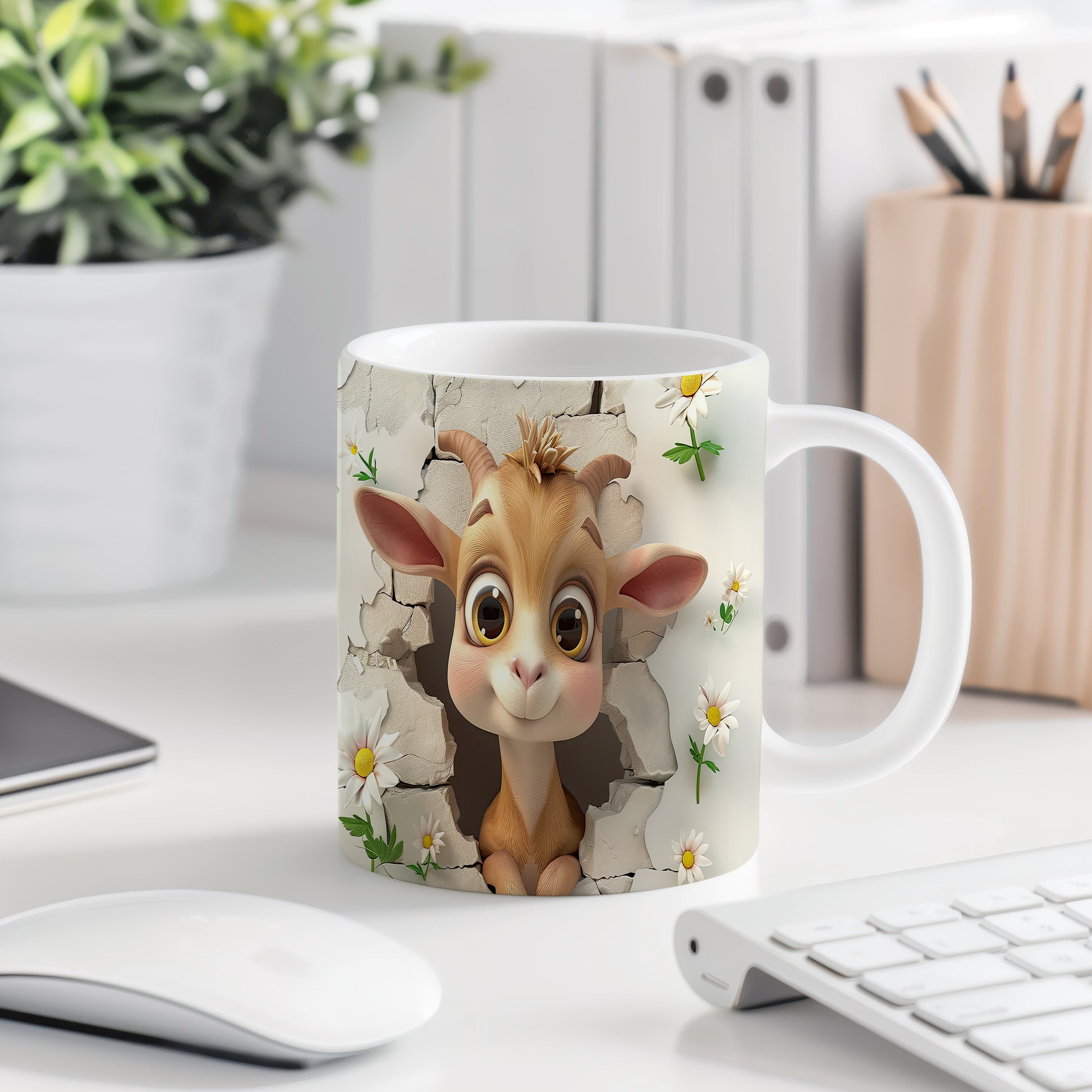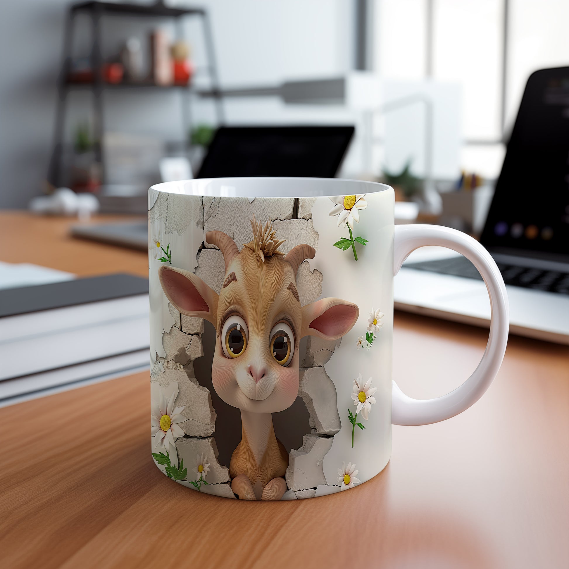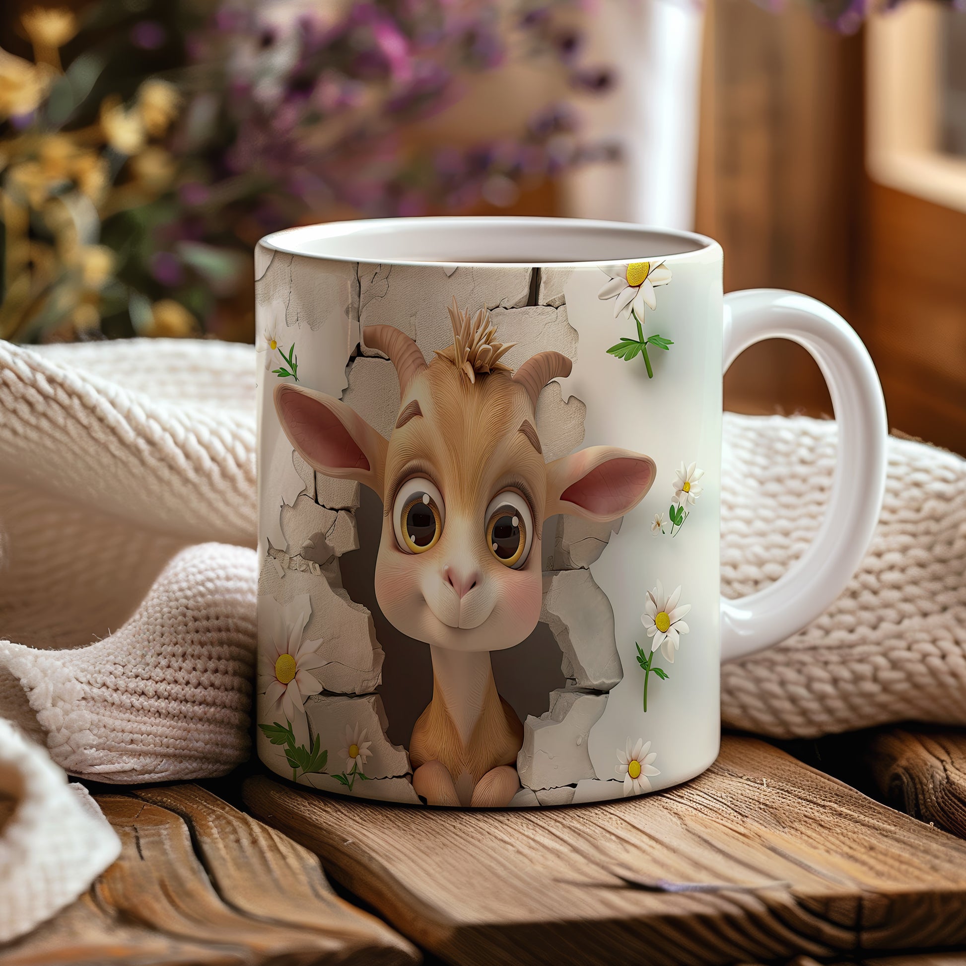 Hrnek s motivem roztomilé kozičky obklopené květinami. Tento hrnek je ideální pro milovníky zvířat a skvělým dárkem pro přátele či rodinu. Materiál: keramika. Objem: 330 ml. Vhodné do myčky i mikrovlnky. Používání tohoto hrnku přináší radost a oživí každodenní pití.