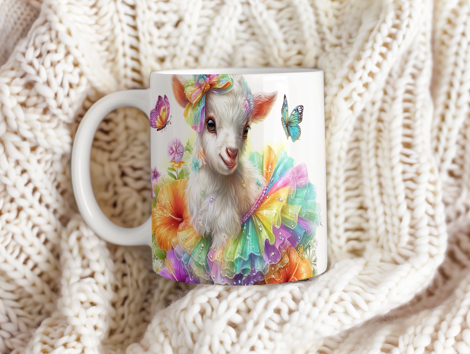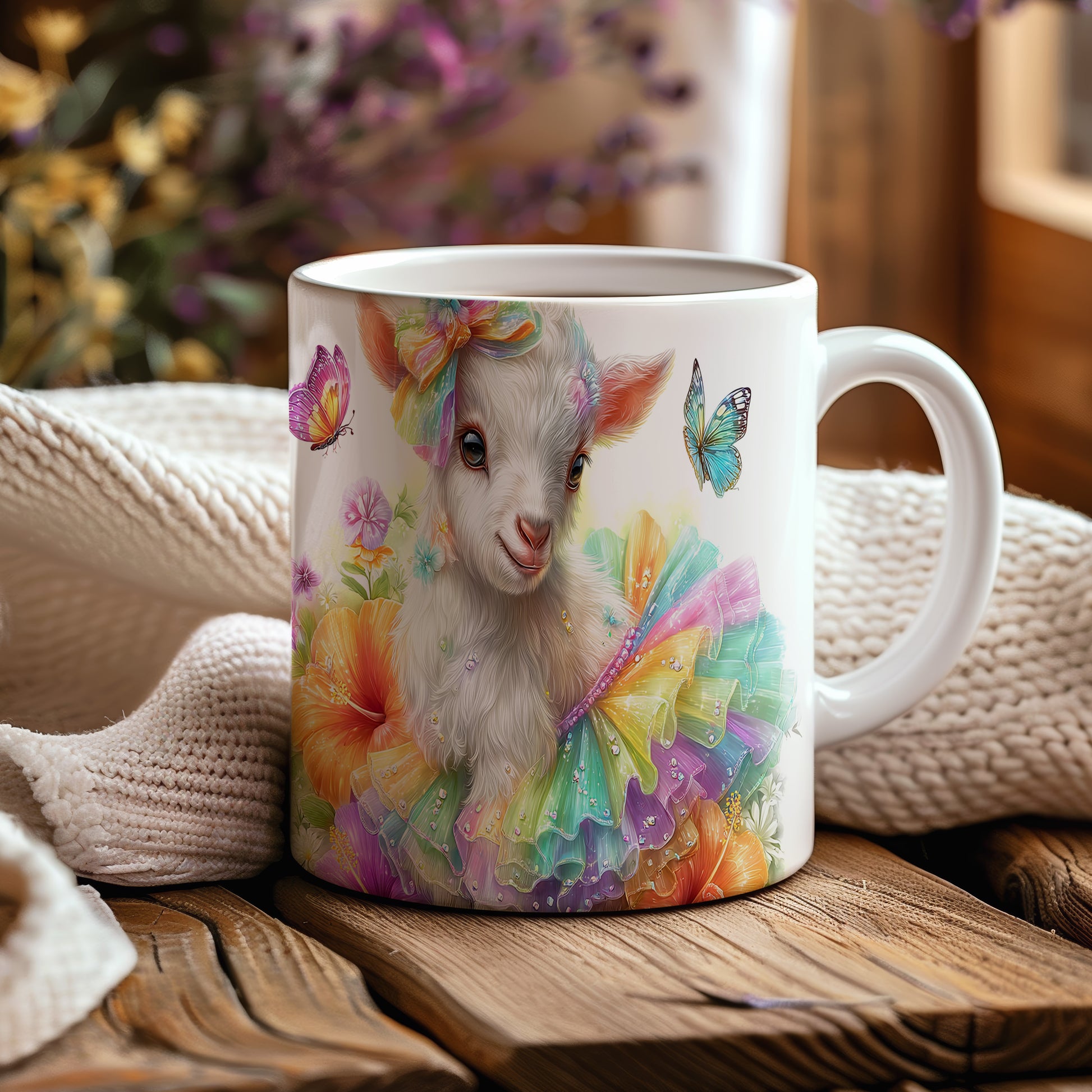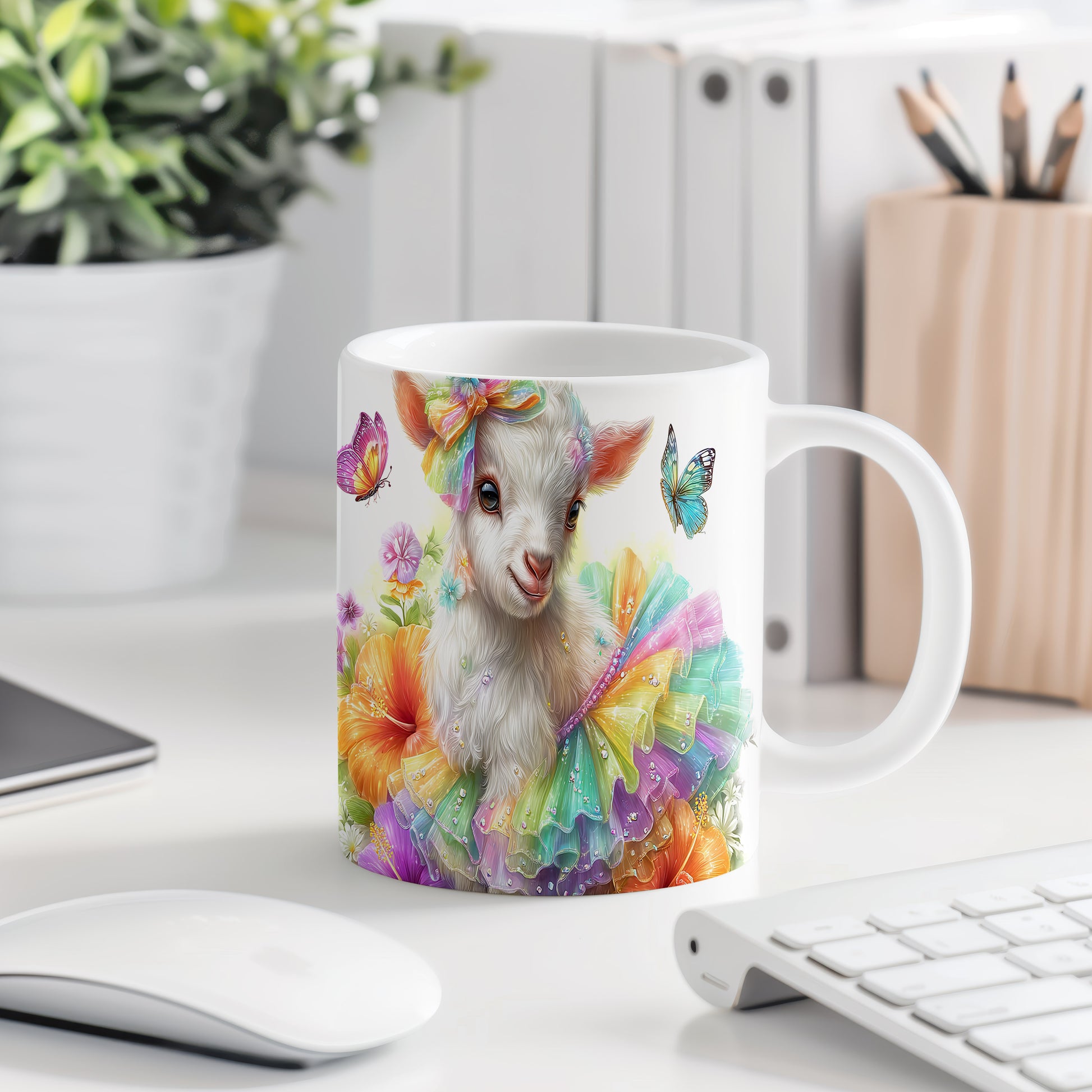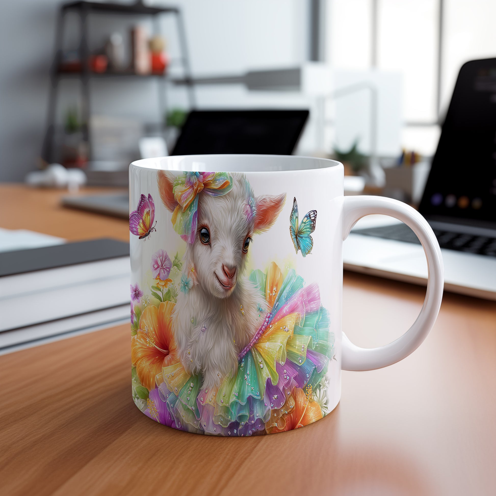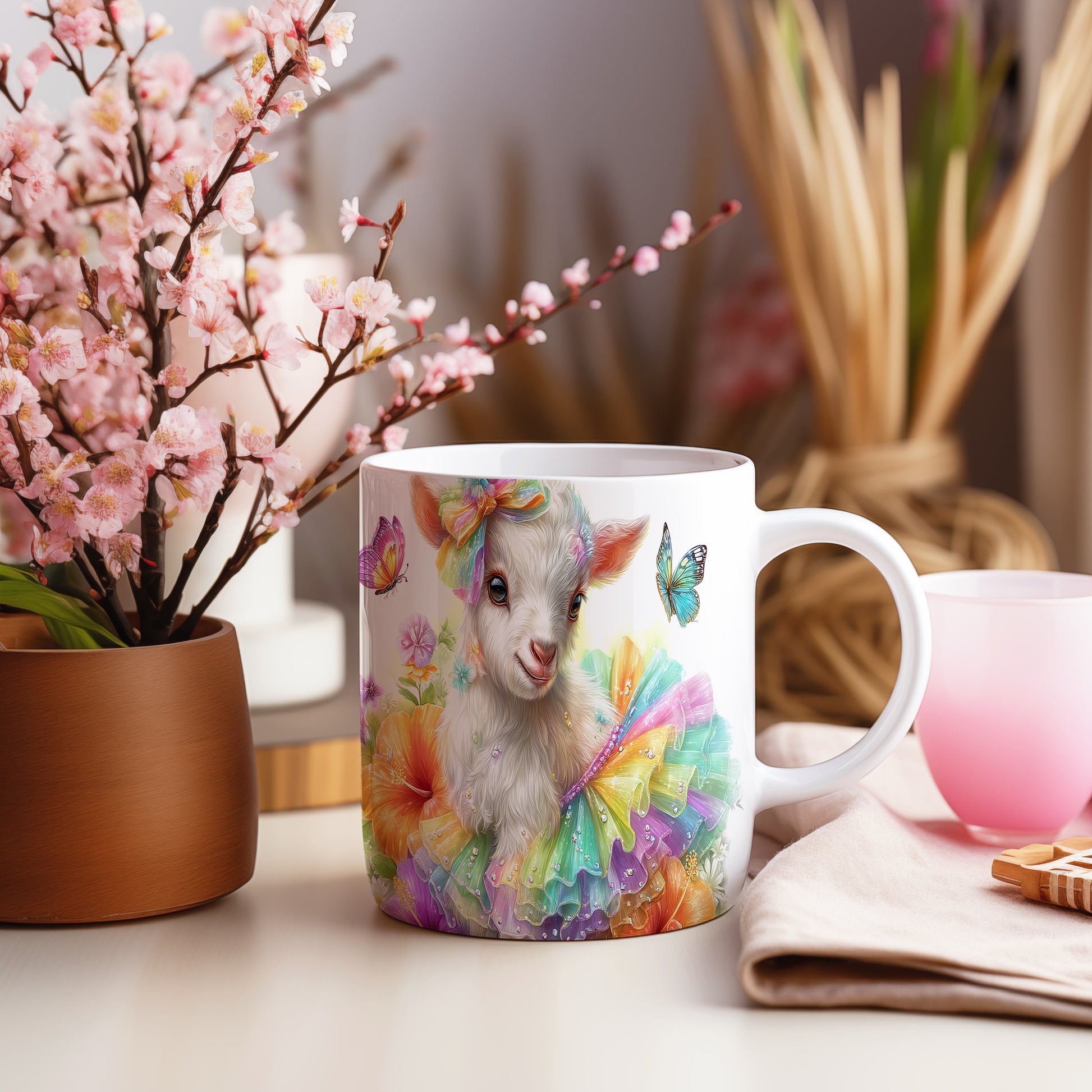Na hrnku je zobrazená roztomilá kozlí slečna v barevné sukýnce. Tento veselý motiv je ideální pro milovníky zvířat a přírody, skvělý tip na dárek pro děti nebo přátele. Materiál: keramika. Objem: 330 ml. Vhodné do myčky i mikrovlnky. Používání tohoto hrnku přináší radost a dobrou náladu při každém doušku.