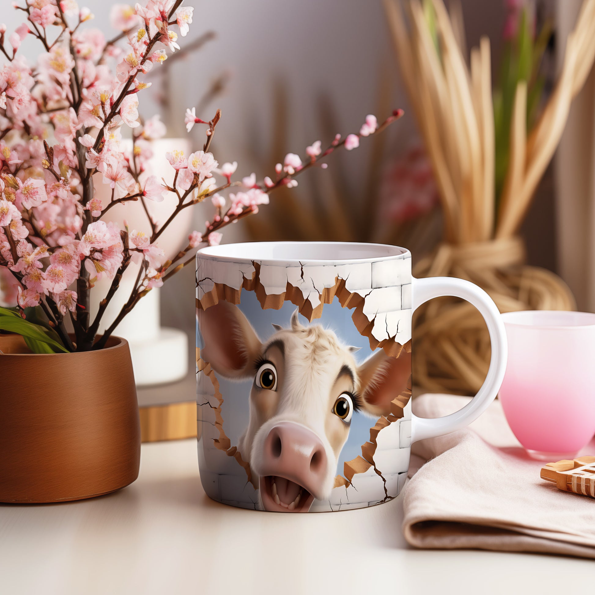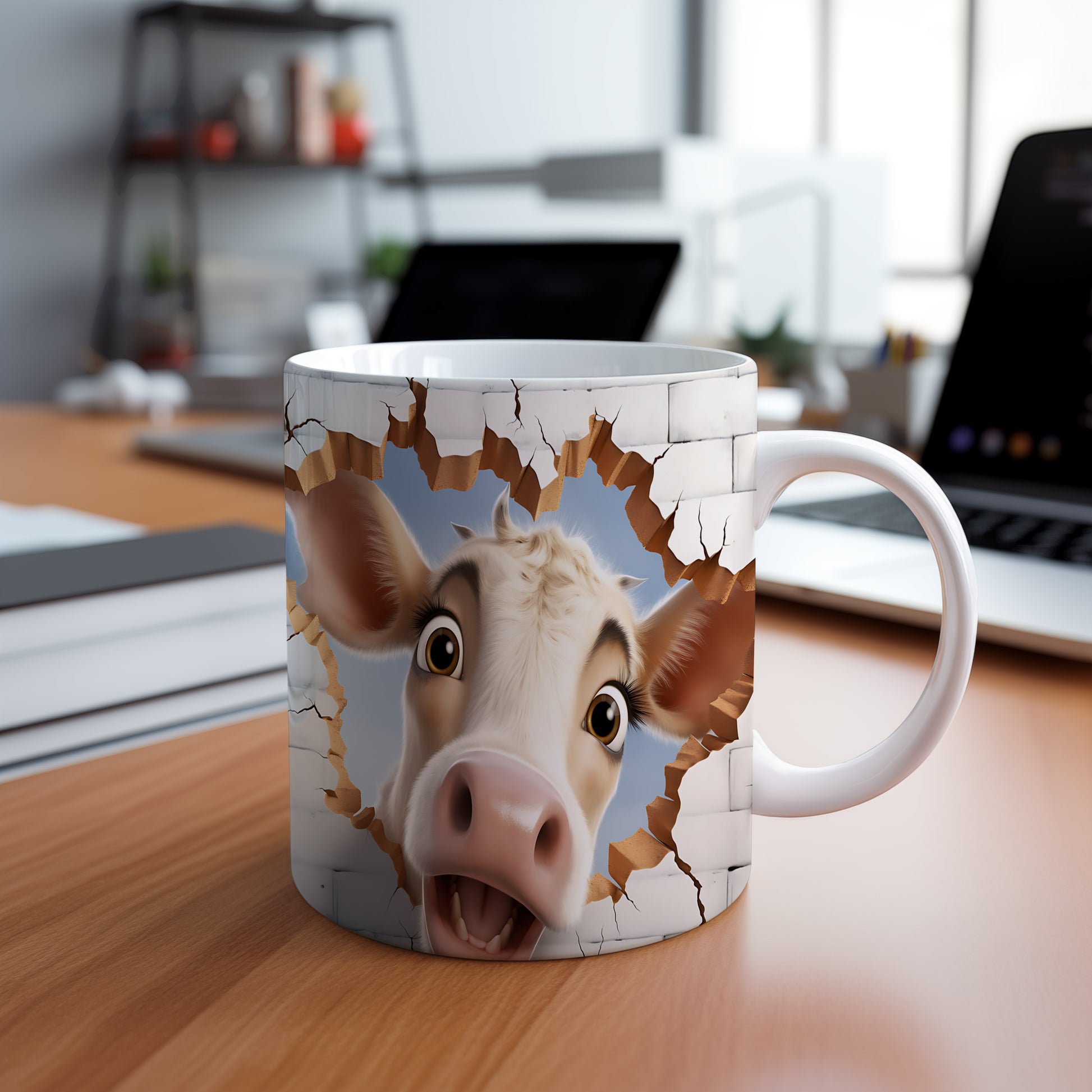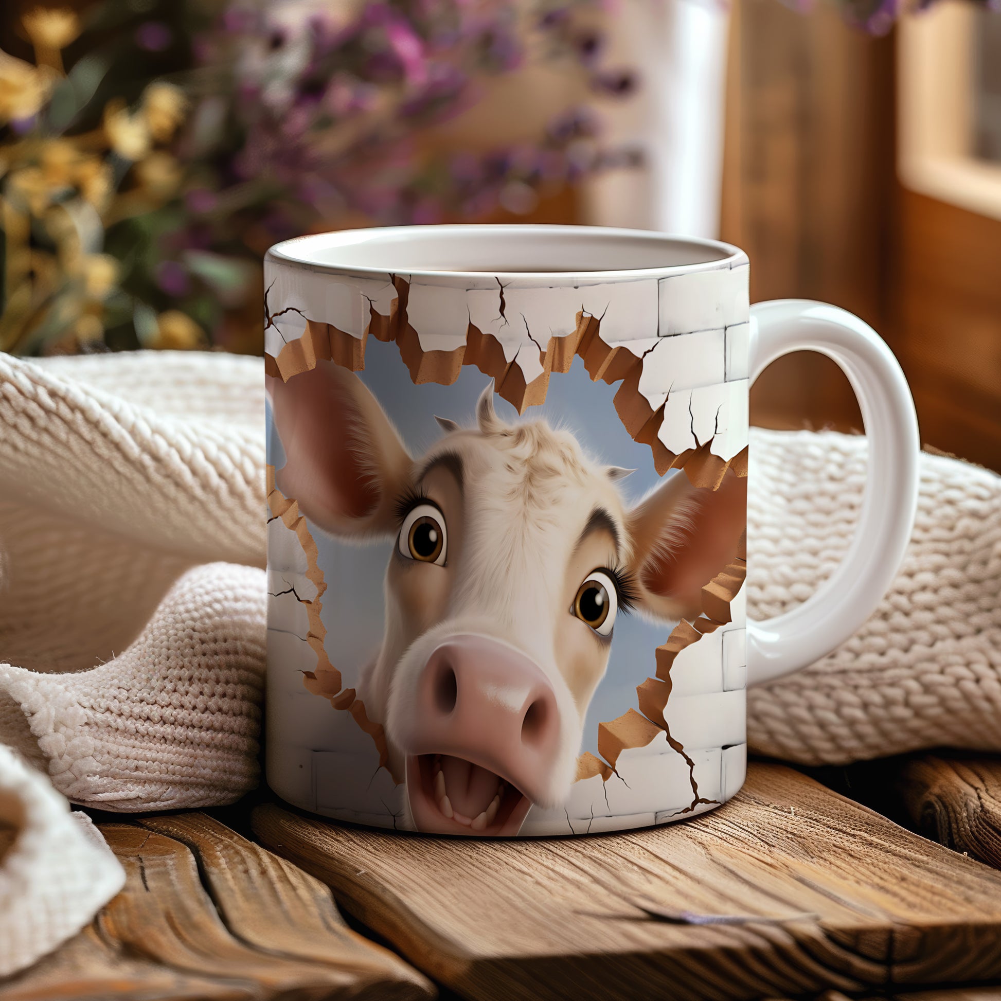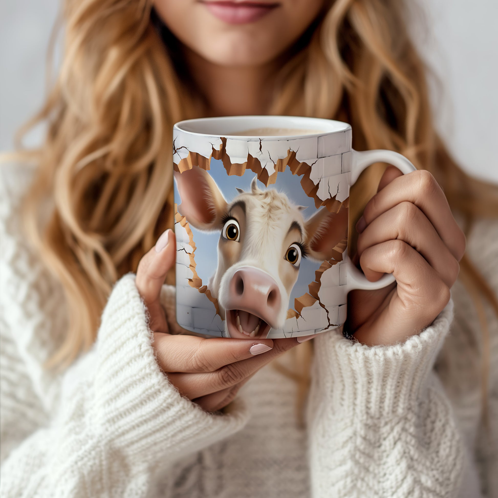 Tento hrnek zaujme motivem roztomilé krávy v 3D efektu. Je ideální pro milovníky zvířat a skvělý tip na dárek pro přátele nebo rodinu. Materiál: keramika. Objem: 330 ml. Vhodné do myčky i mikrovlnky. Používání tohoto hrnku přinese radost do každodenního pití.