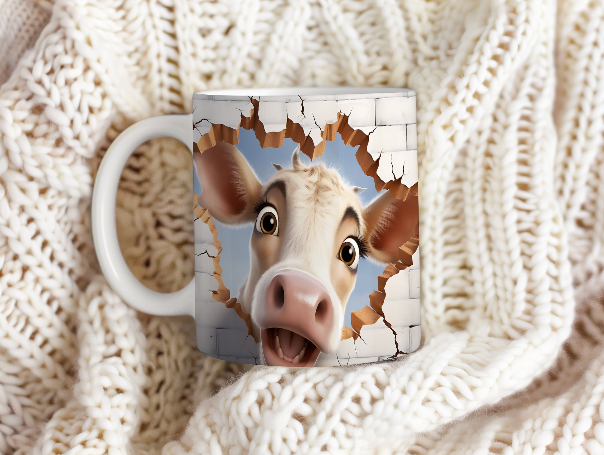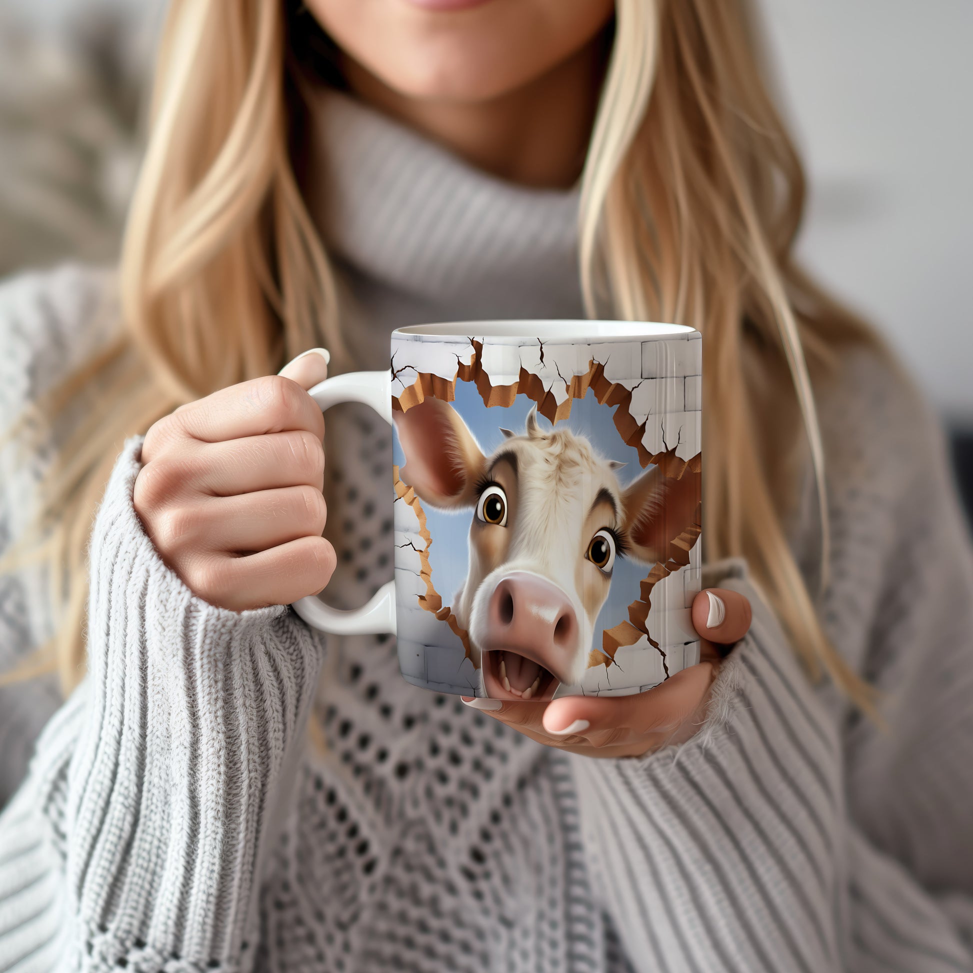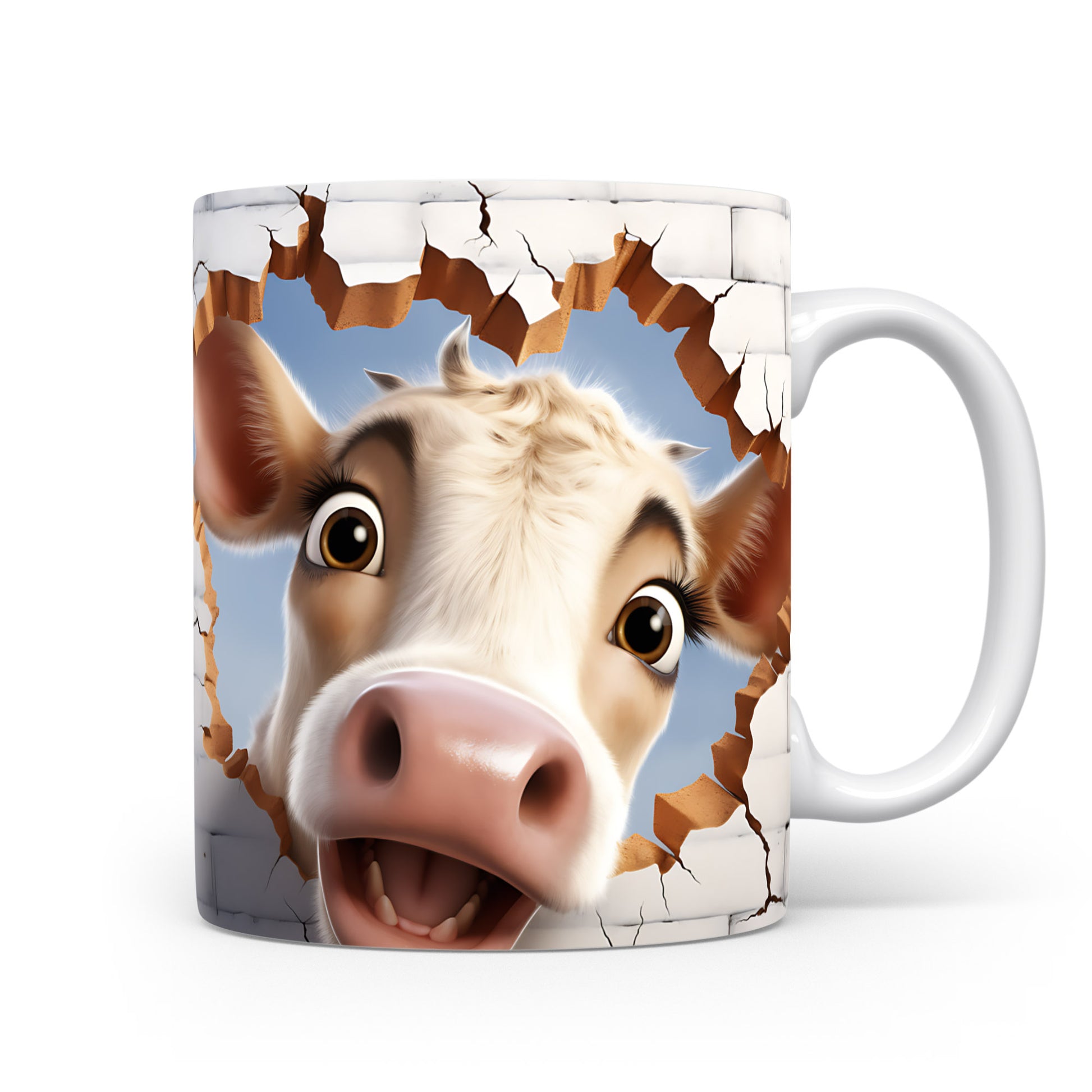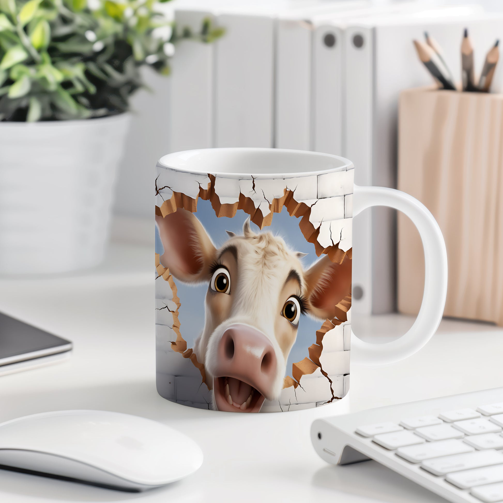 Tento hrnek zaujme motivem roztomilé krávy v 3D efektu. Je ideální pro milovníky zvířat a skvělý tip na dárek pro přátele nebo rodinu. Materiál: keramika. Objem: 330 ml. Vhodné do myčky i mikrovlnky. Používání tohoto hrnku přinese radost do každodenního pití.
