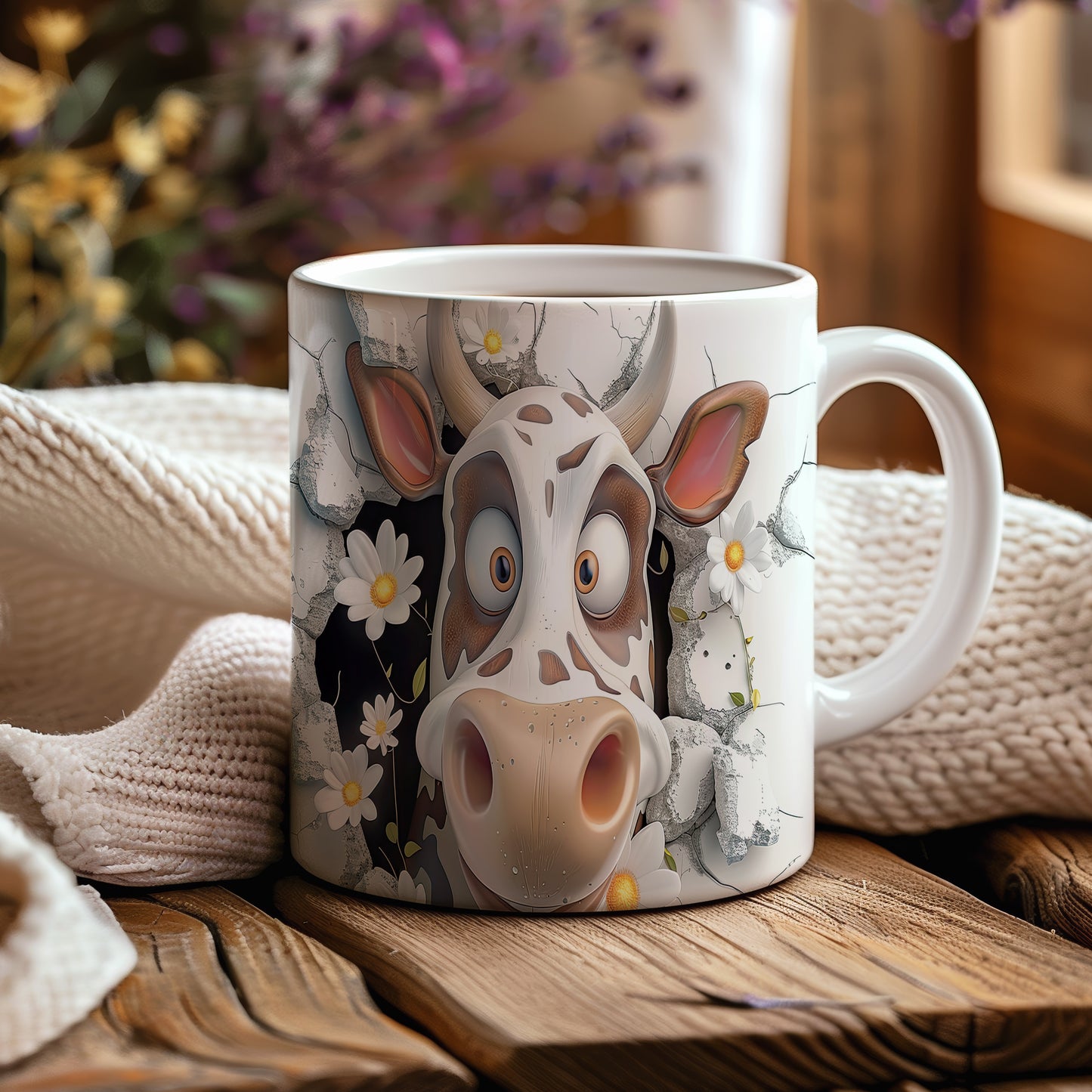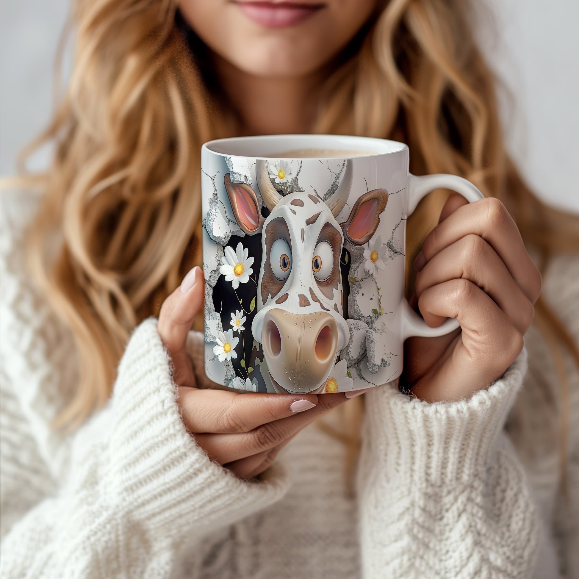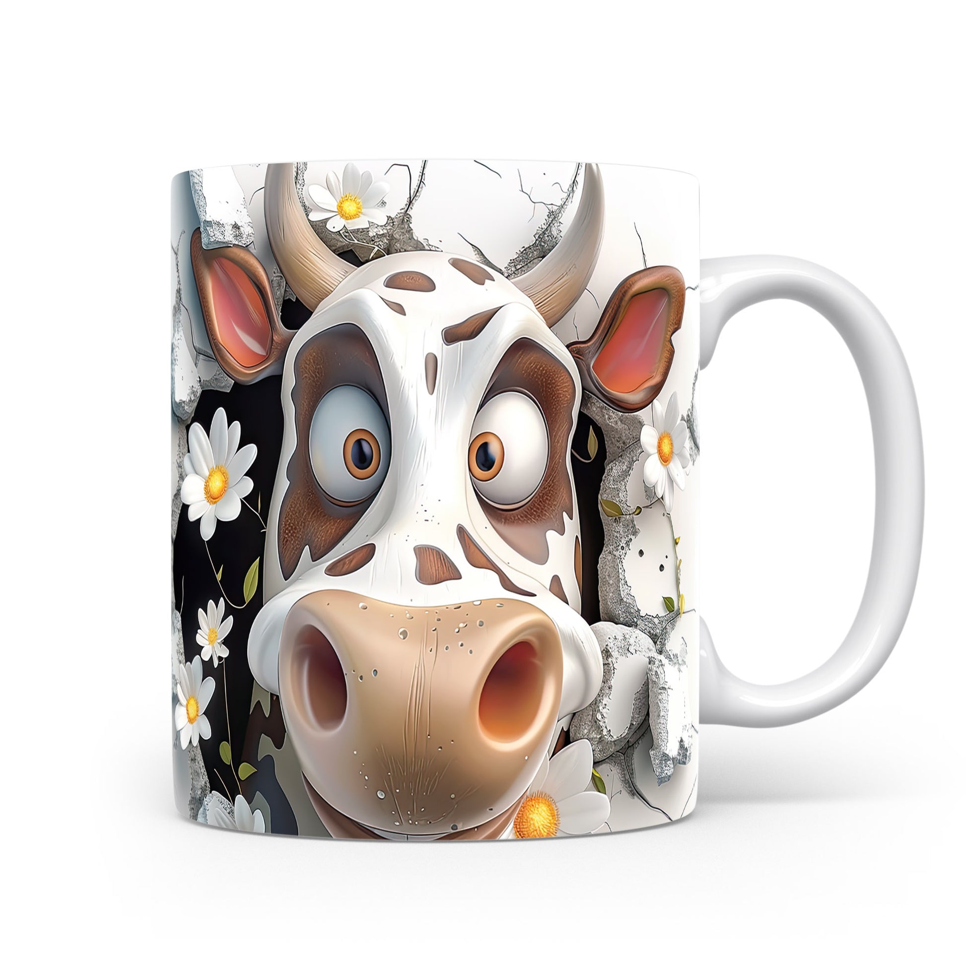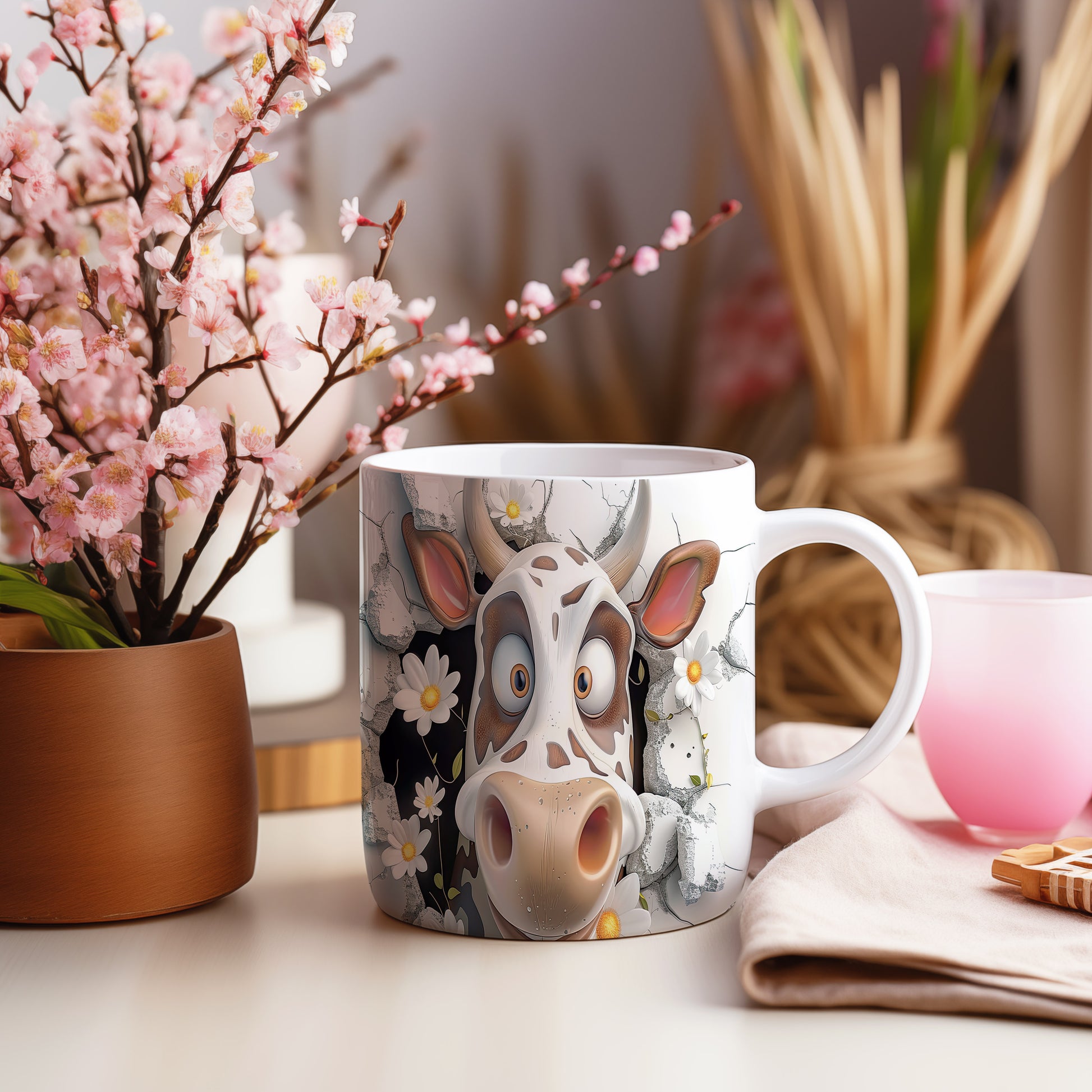 Na hrnku je krásná ilustrace roztomilé krávy obklopené květinami. Tento hrnek je ideální pro milovníky zvířat a přírody, skvělý tip na dárek pro přátele nebo rodinu. Materiál: keramika. Objem: 330 ml. Vhodné do myčky i mikrovlnky. Používání tohoto hrnku přináší radost a oživí každodenní pití.