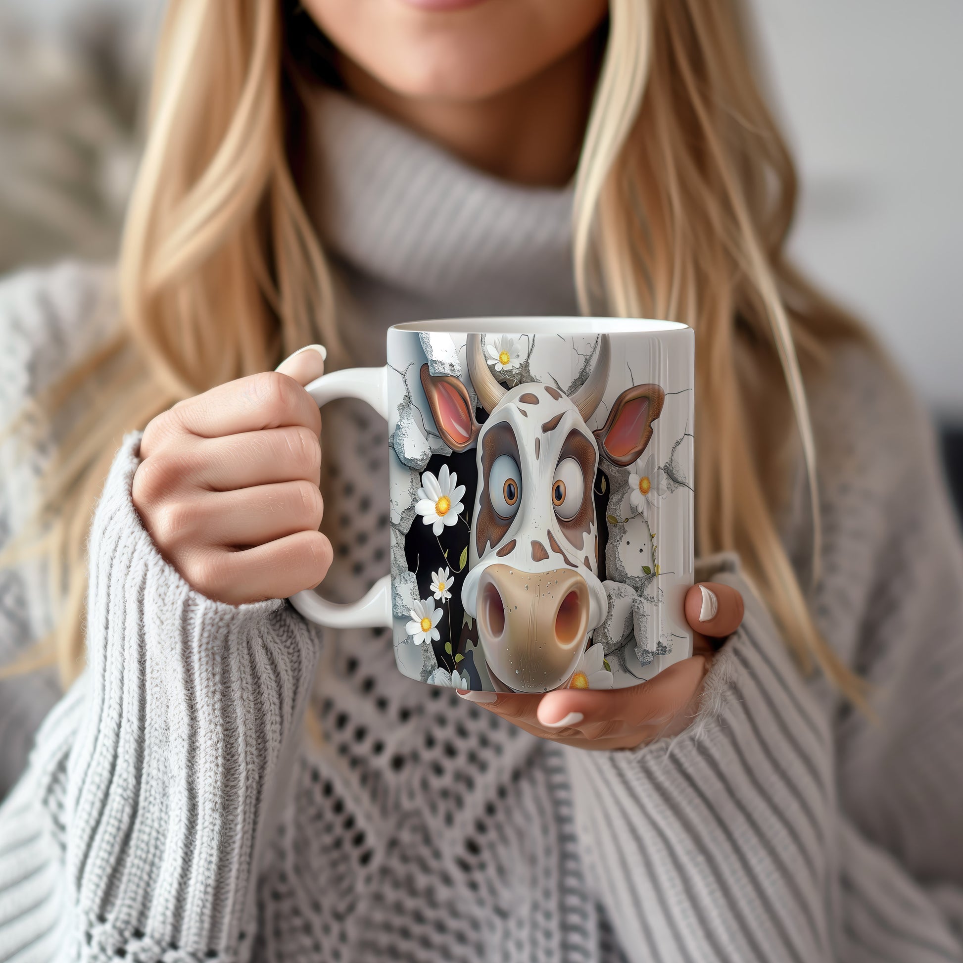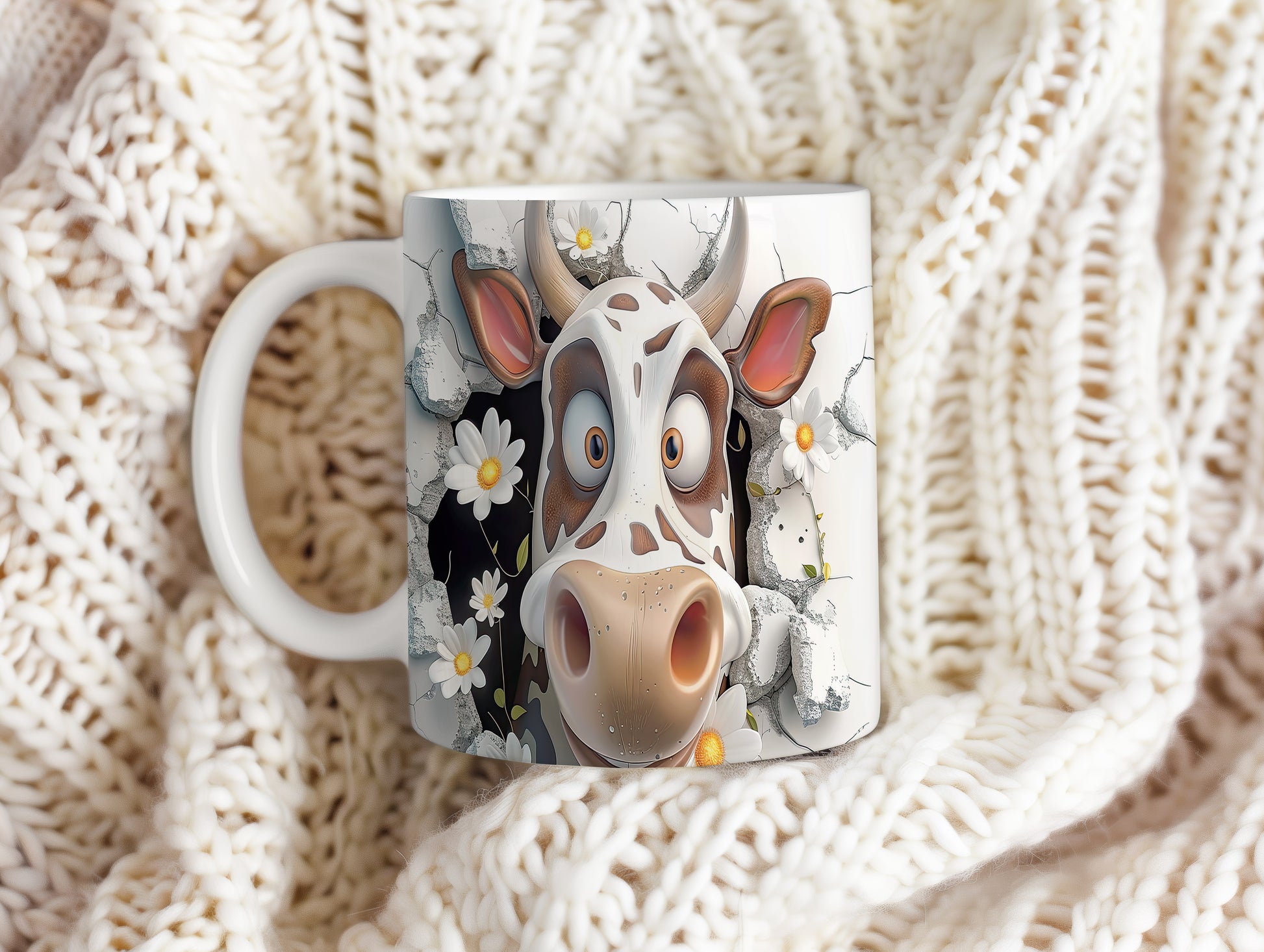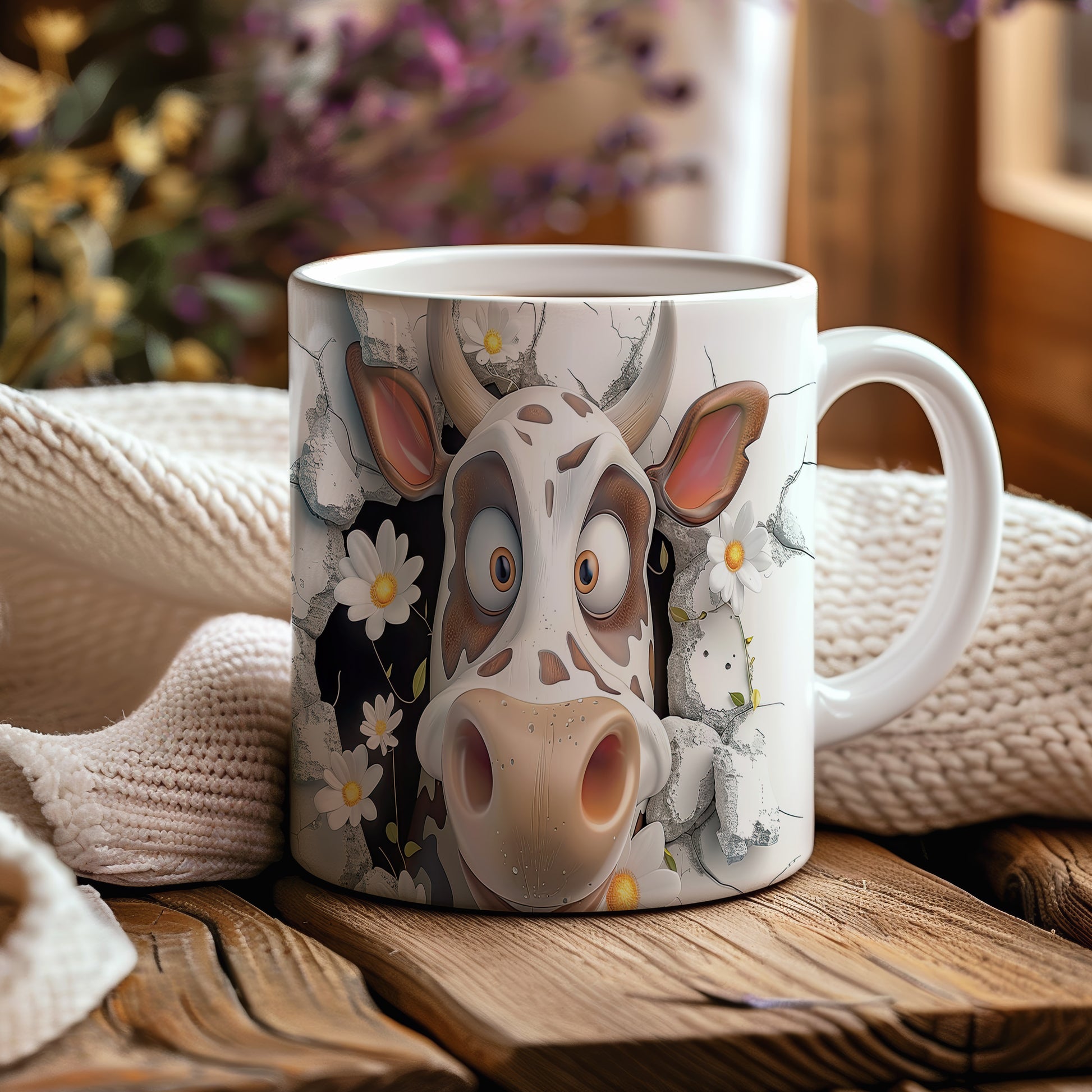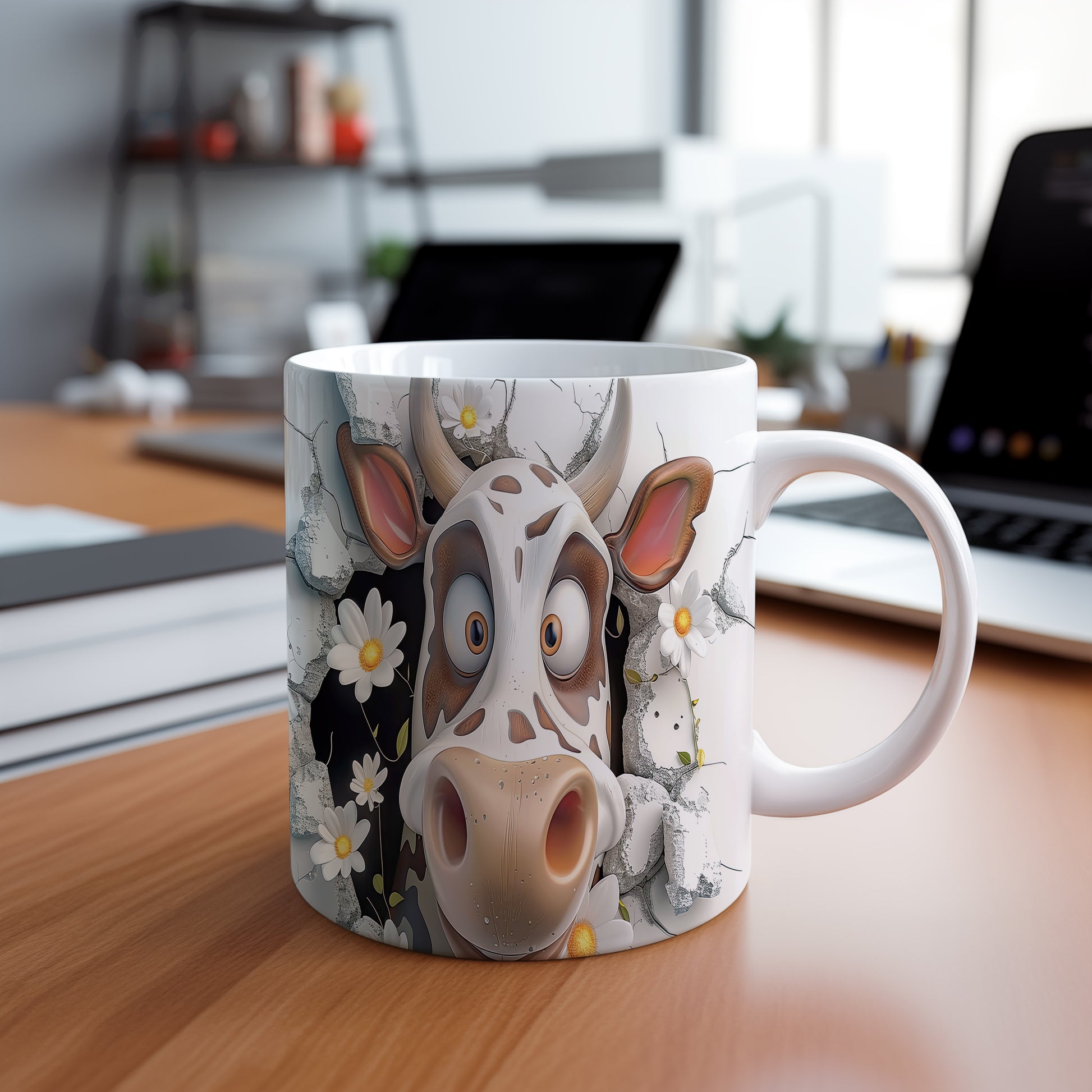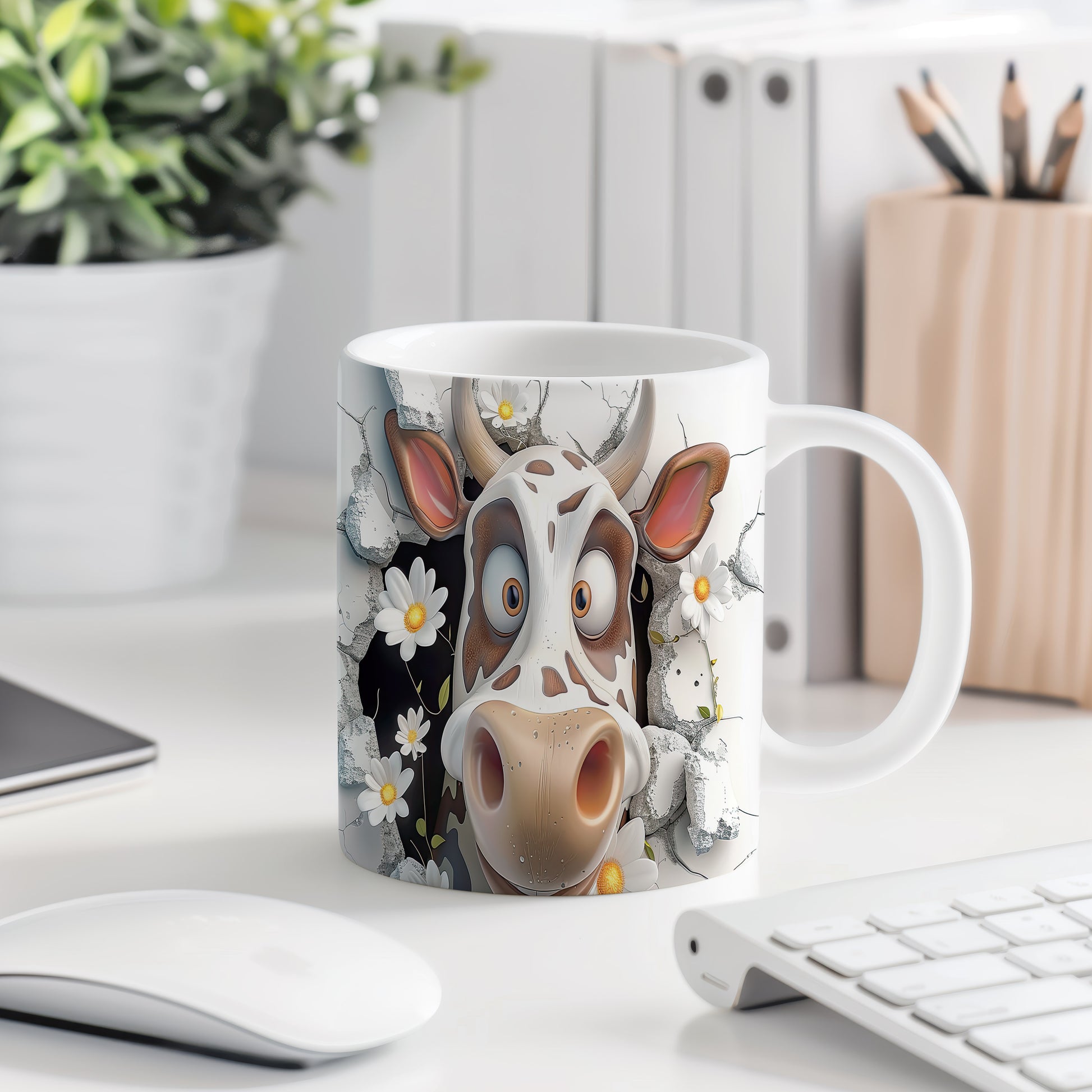 Na hrnku je krásná ilustrace roztomilé krávy obklopené květinami. Tento hrnek je ideální pro milovníky zvířat a přírody, skvělý tip na dárek pro přátele nebo rodinu. Materiál: keramika. Objem: 330 ml. Vhodné do myčky i mikrovlnky. Používání tohoto hrnku přináší radost a oživí každodenní pití.