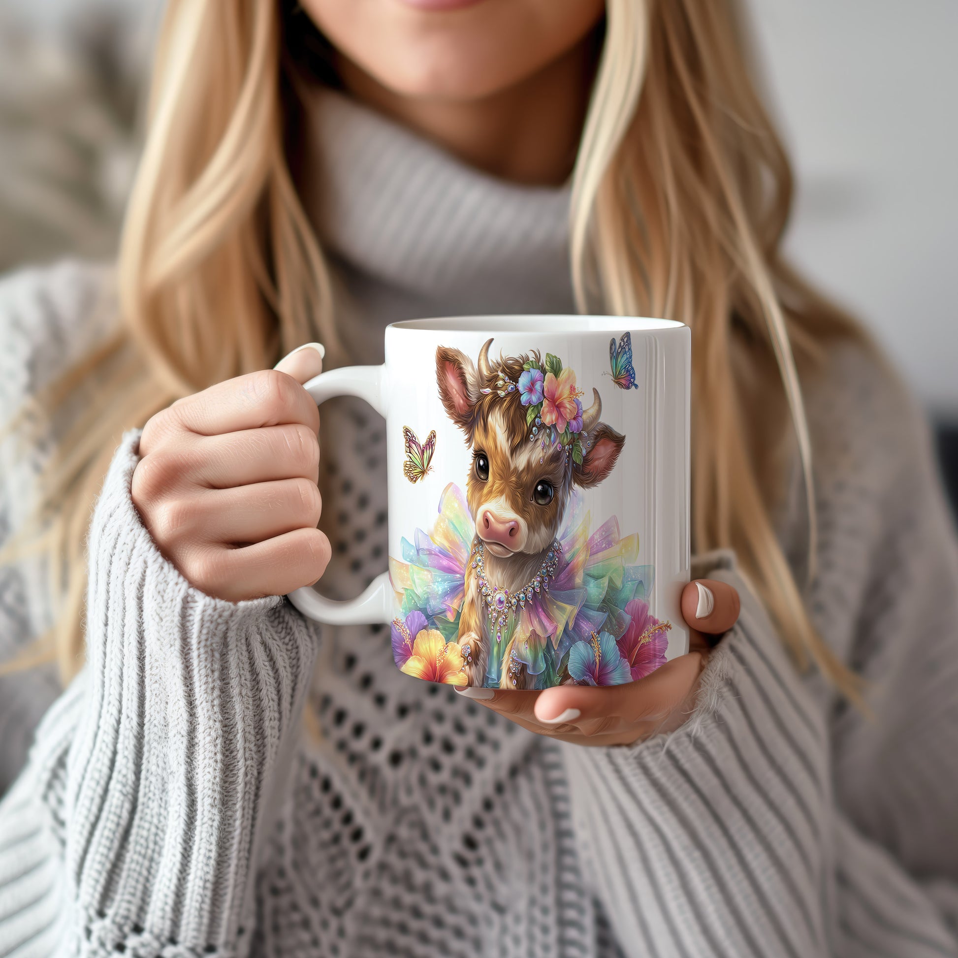 Tento hrnek zaujme roztomilým motivem krávy obklopené květinami. Je ideální pro milovníky zvířat a skvělým dárkem pro každého, kdo ocení veselý design. Materiál: keramika. Objem: 330 ml. Vhodné do myčky i mikrovlnky. Používání tohoto hrnku přináší radost a pozitivní náladu do každého dne.