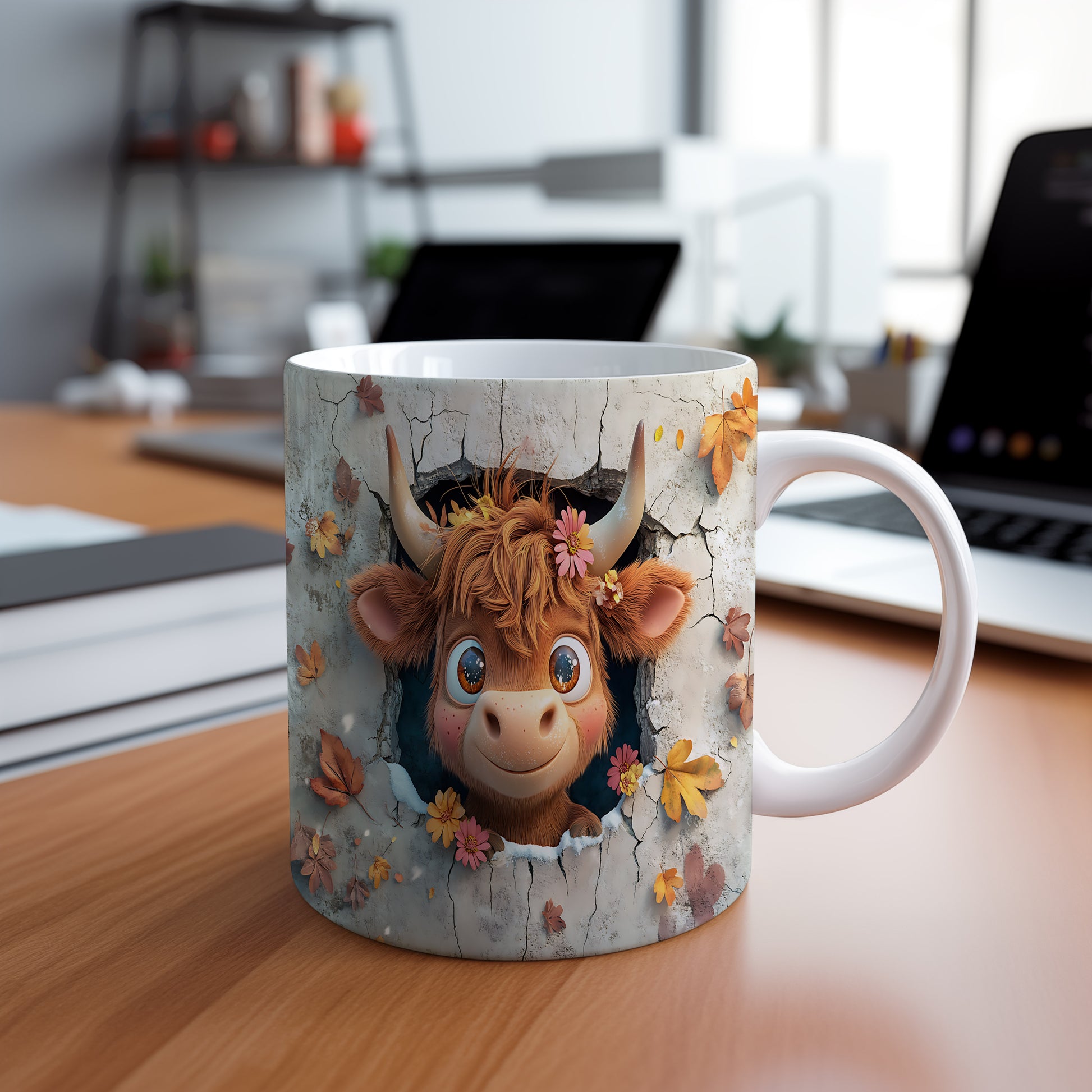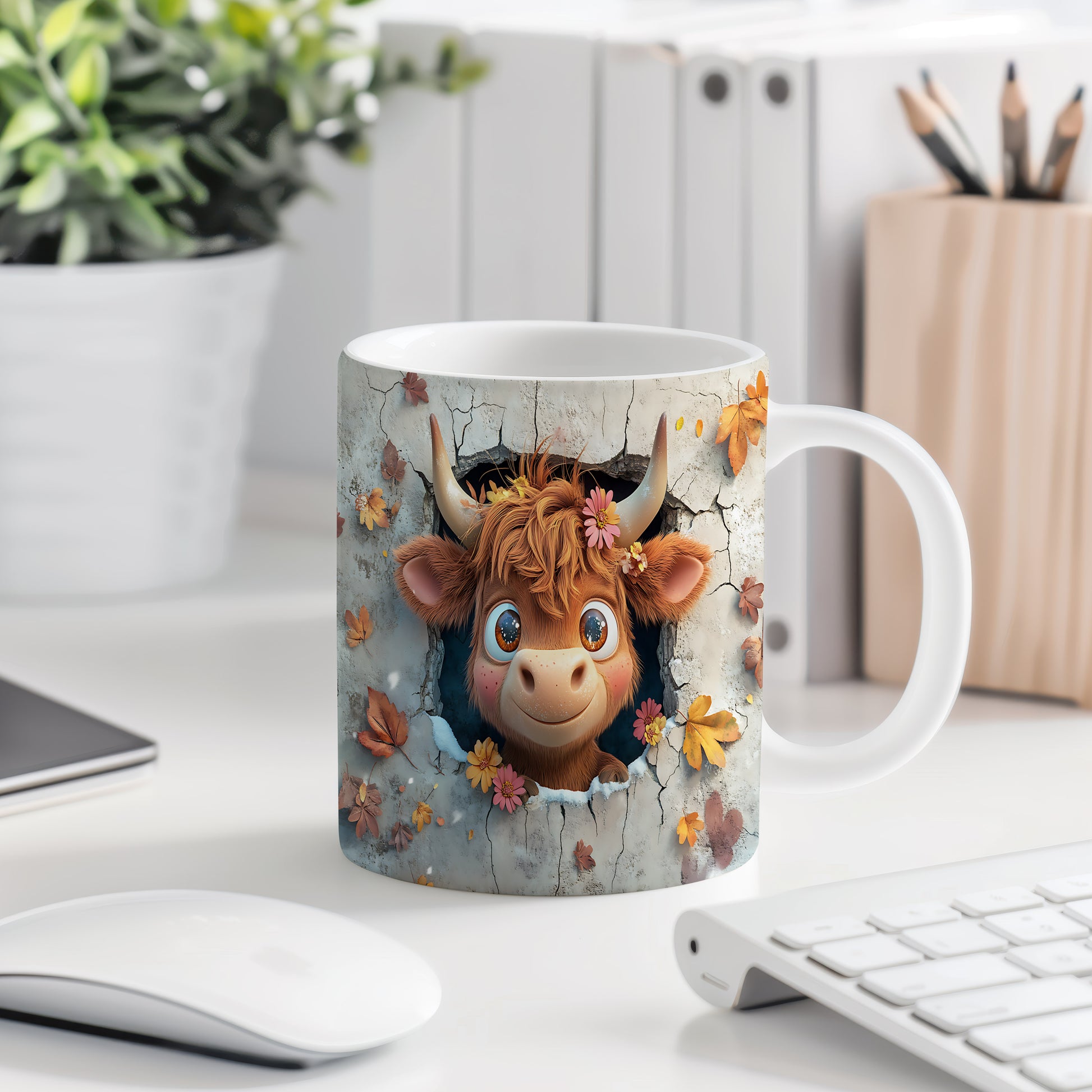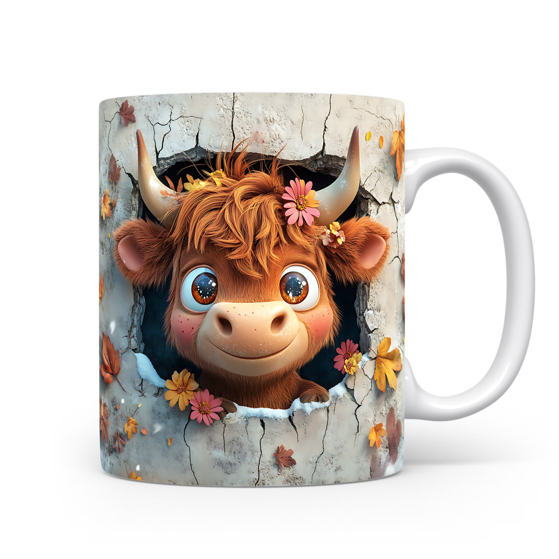 Hrnek s roztomilou krávou v květinách