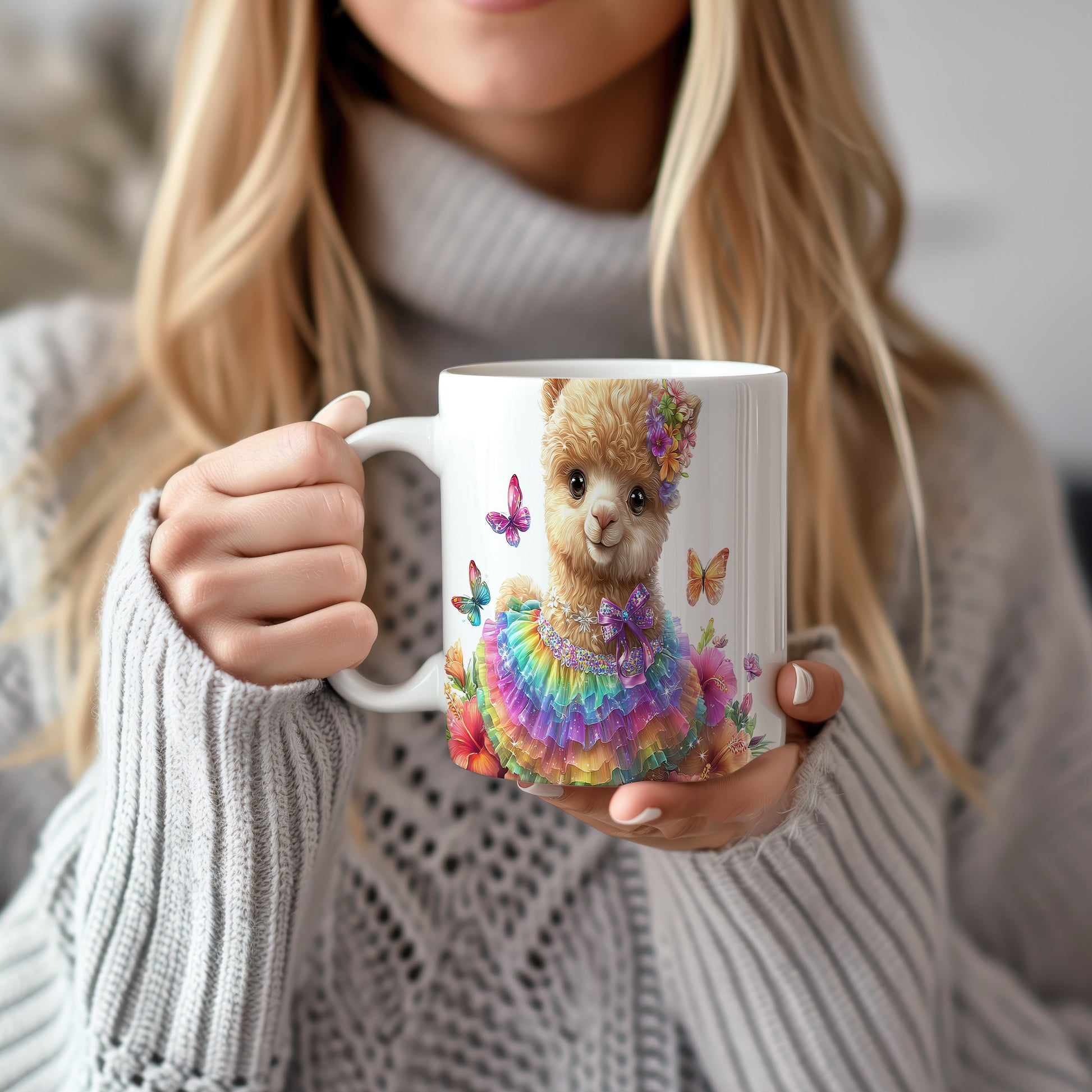 Tento hrnek s motivem roztomilé lamy v barevném oblečku potěší všechny milovníky zvířat a veselých designů. Je ideálním dárkem pro přátele, kteří ocení originální kousek do své sbírky. Materiál: keramika. Objem: 330 ml. Vhodné do myčky i mikrovlnky. Používání tohoto hrnku přináší radost a zábavu při každém doušku.