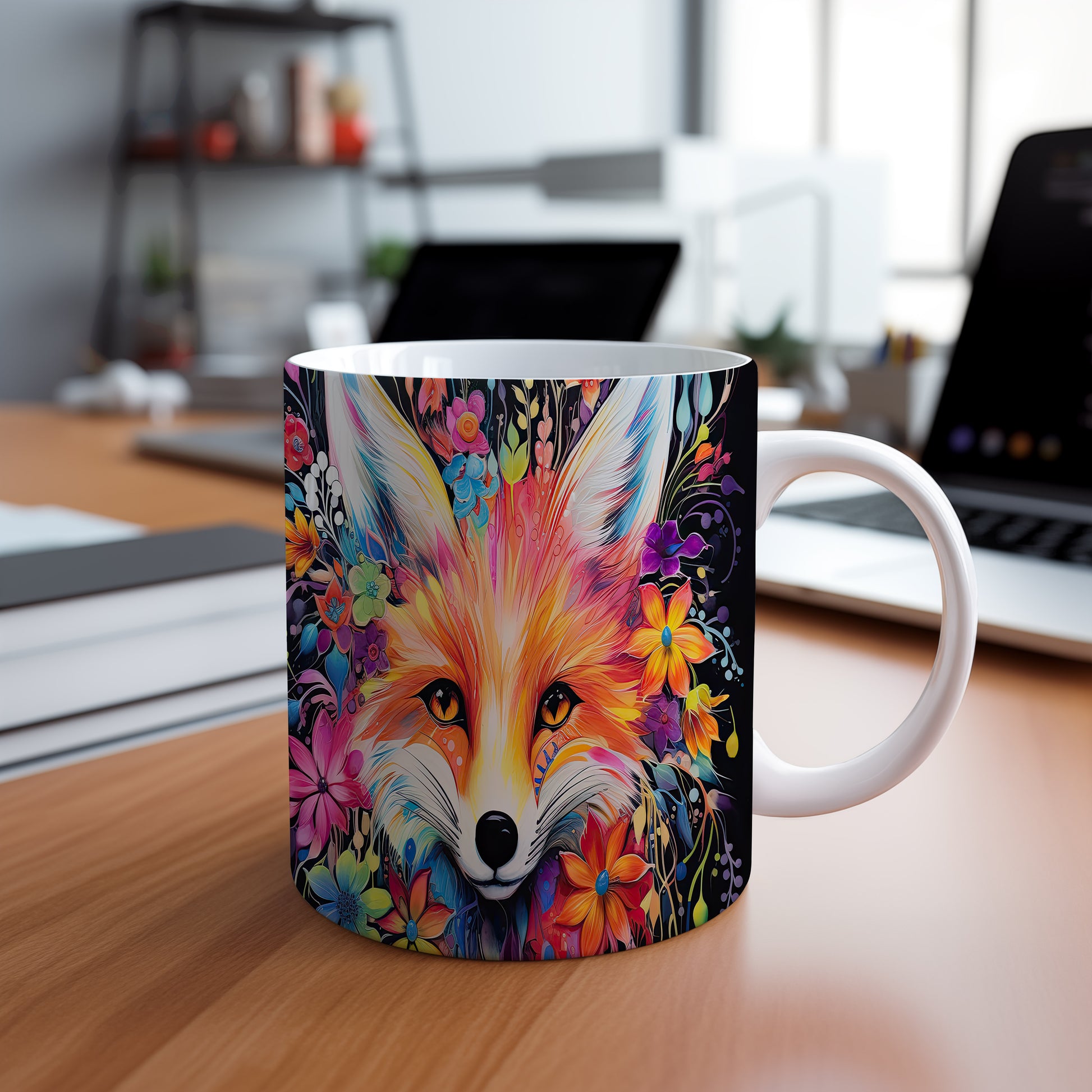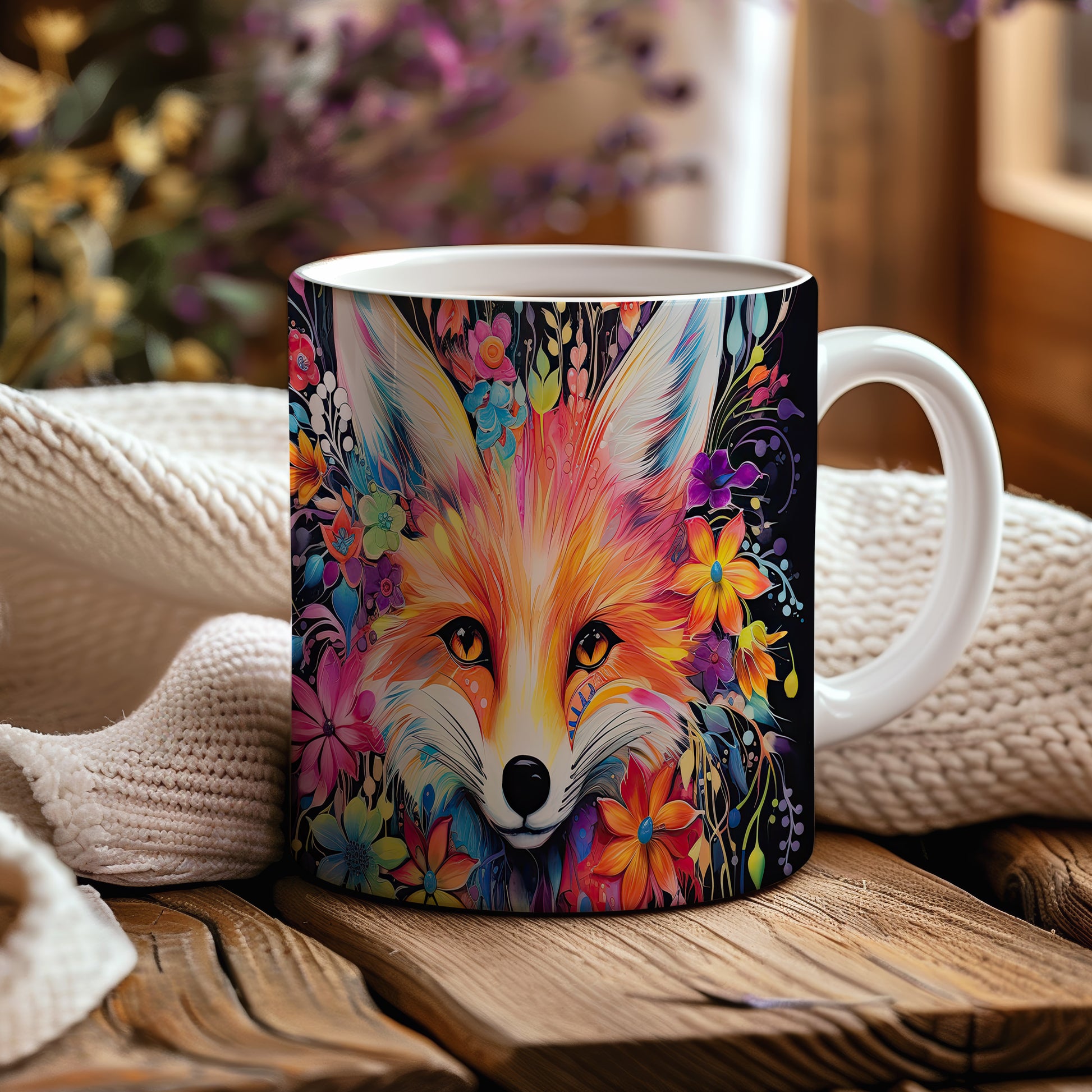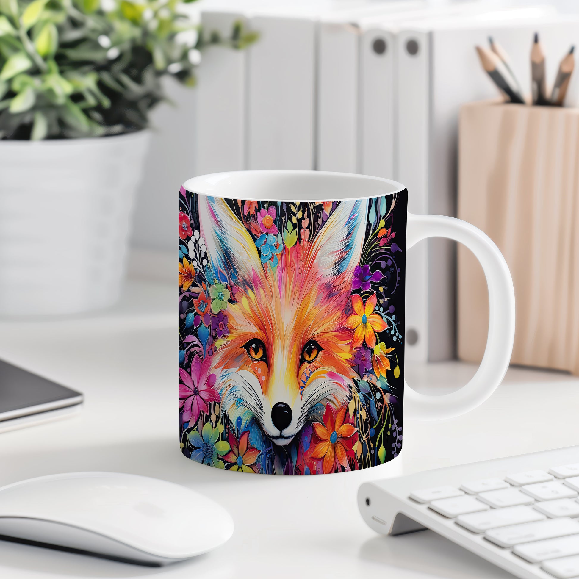 Tento keramický hrnek zobrazuje roztomilou lišku obklopenou květinami. Je ideální pro milovníky přírody a zvířat, skvělý tip na dárek pro přátele nebo rodinu. Materiál: keramika. Objem: 330 ml. Vhodné do myčky i mikrovlnky. Používání tohoto hrnku přináší radost a útulnost do každého dne.