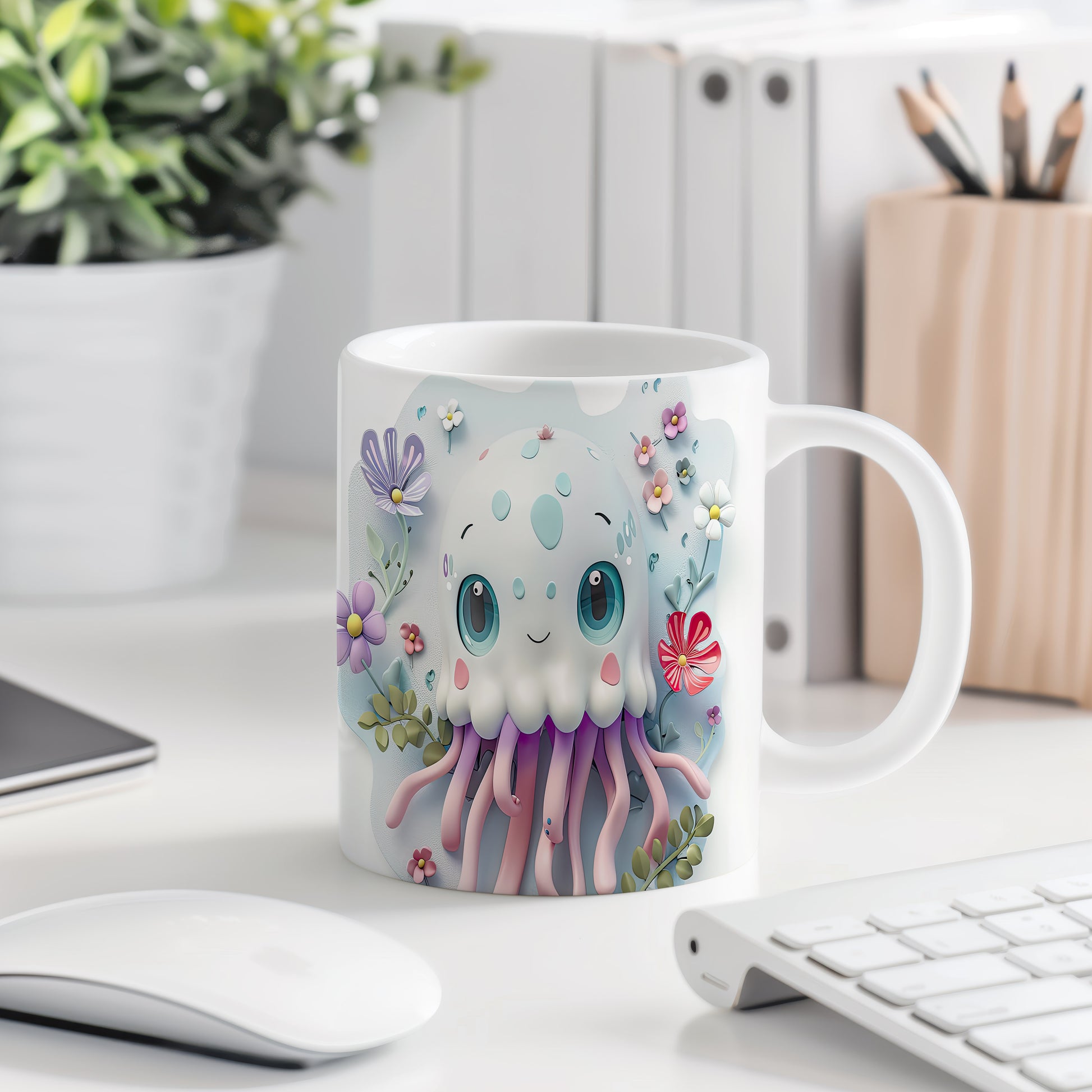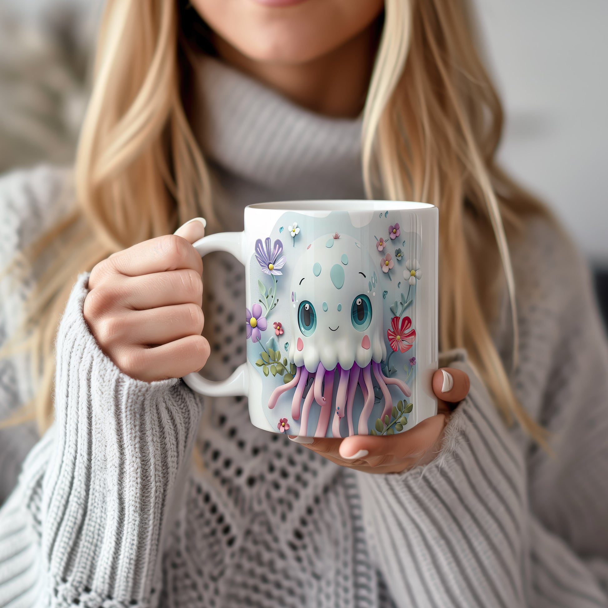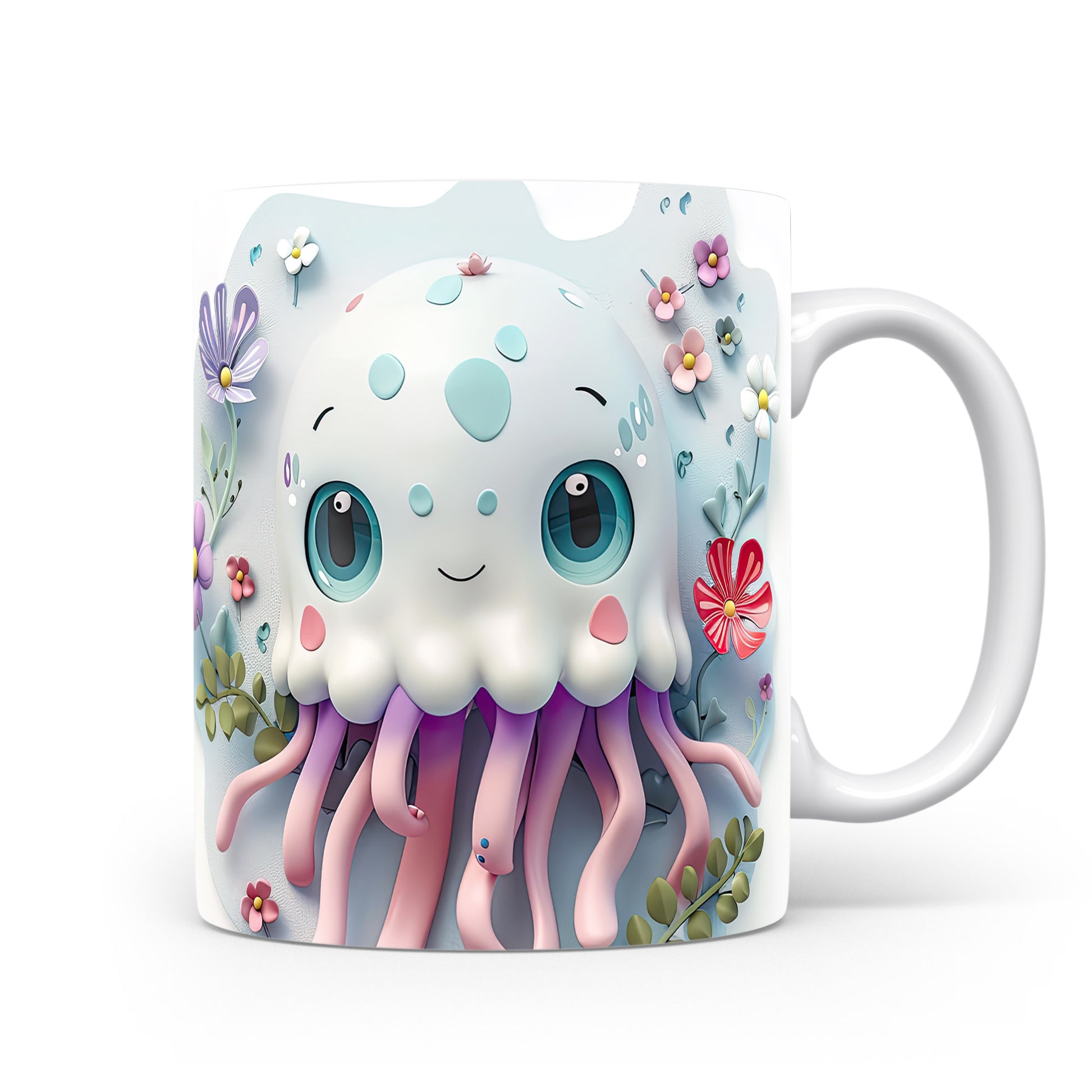Na hrnku je ztvárněna roztomilá medúza s velkými modrými očima a jemným úsměvem. Tento hrnek je ideální pro milovníky mořského života a skvělým dárkem pro děti i dospělé. Materiál: keramika. Objem: 330 ml. Vhodné do myčky i mikrovlnky. Používání tohoto hrnku přináší radost a oživí každé ráno.