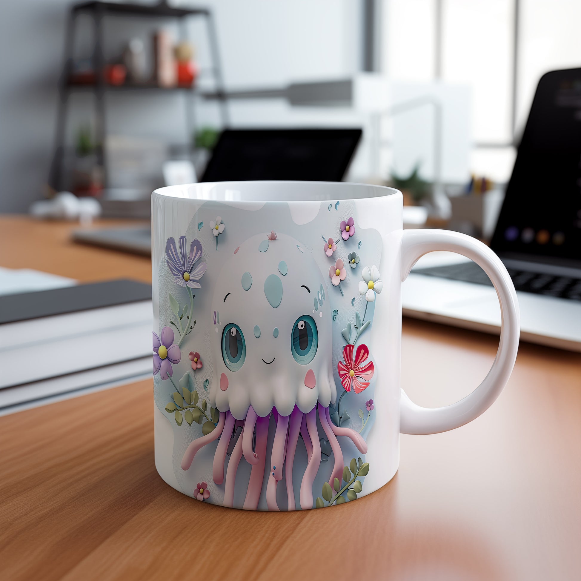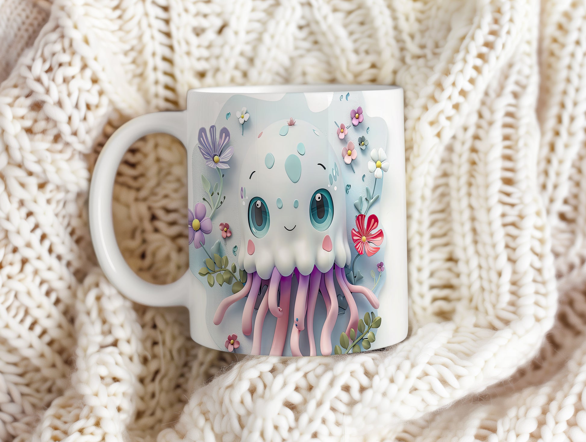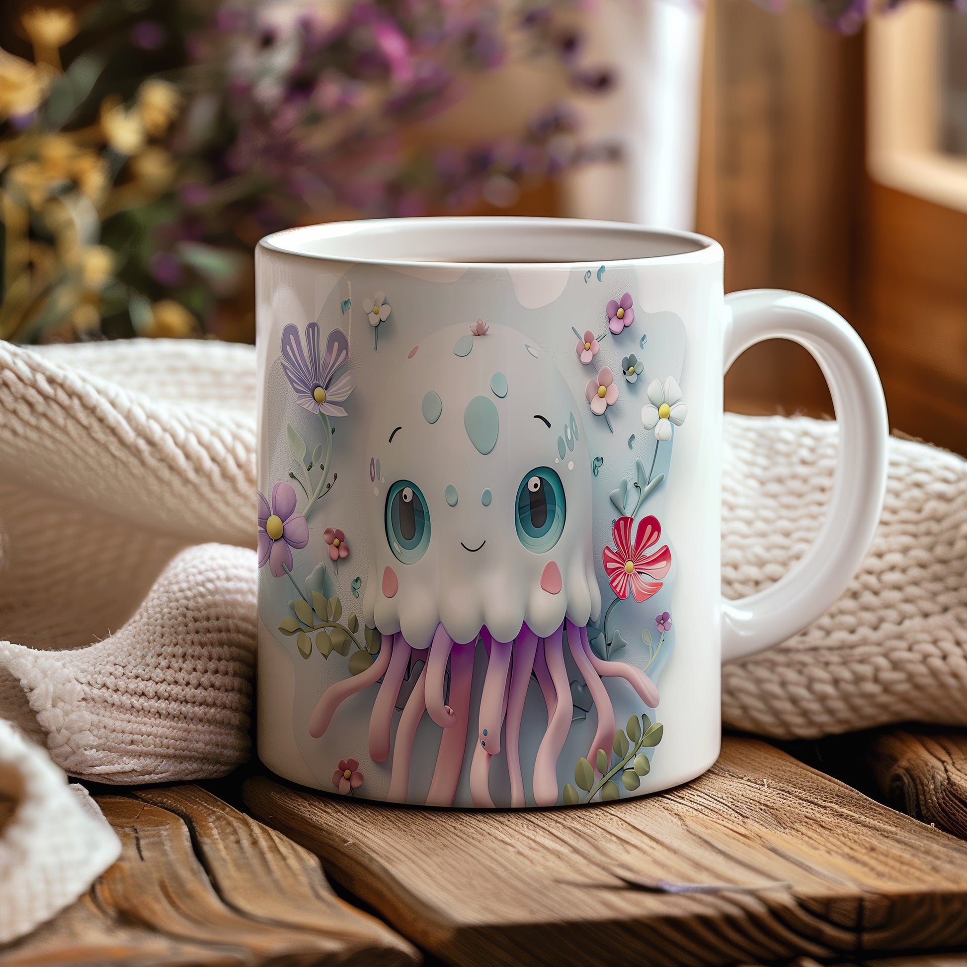 Na hrnku je ztvárněna roztomilá medúza s velkými modrými očima a jemným úsměvem. Tento hrnek je ideální pro milovníky mořského života a skvělým dárkem pro děti i dospělé. Materiál: keramika. Objem: 330 ml. Vhodné do myčky i mikrovlnky. Používání tohoto hrnku přináší radost a oživí každé ráno.