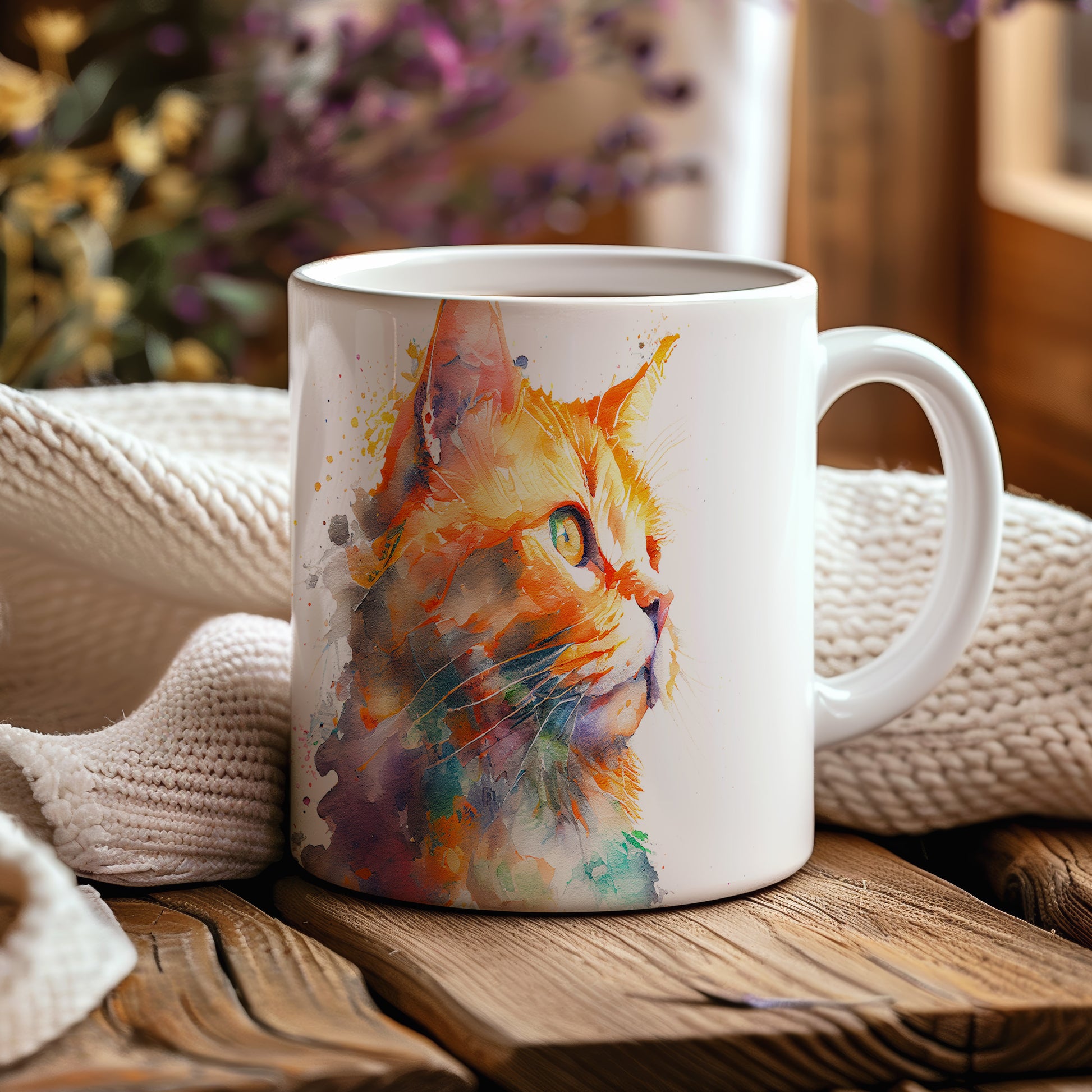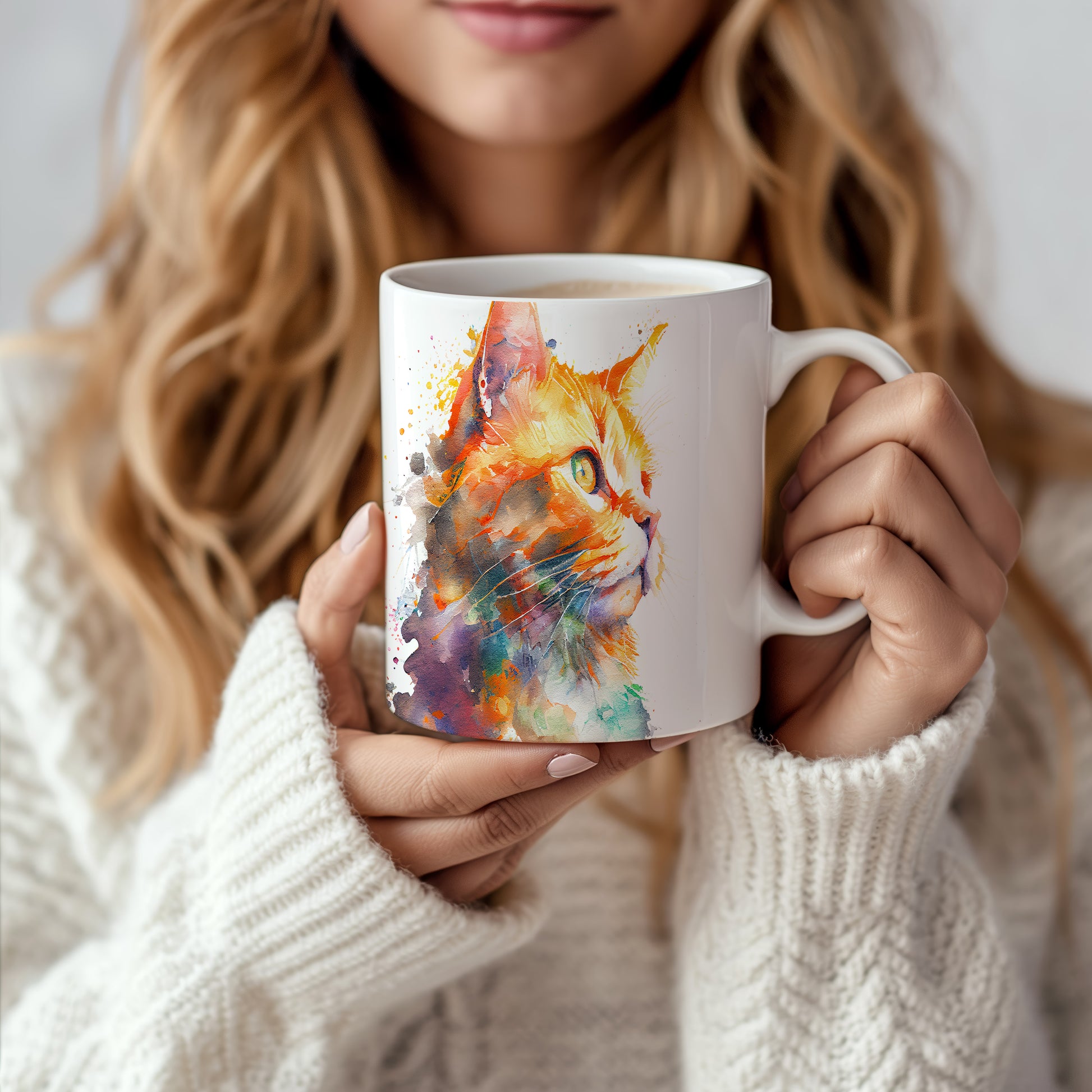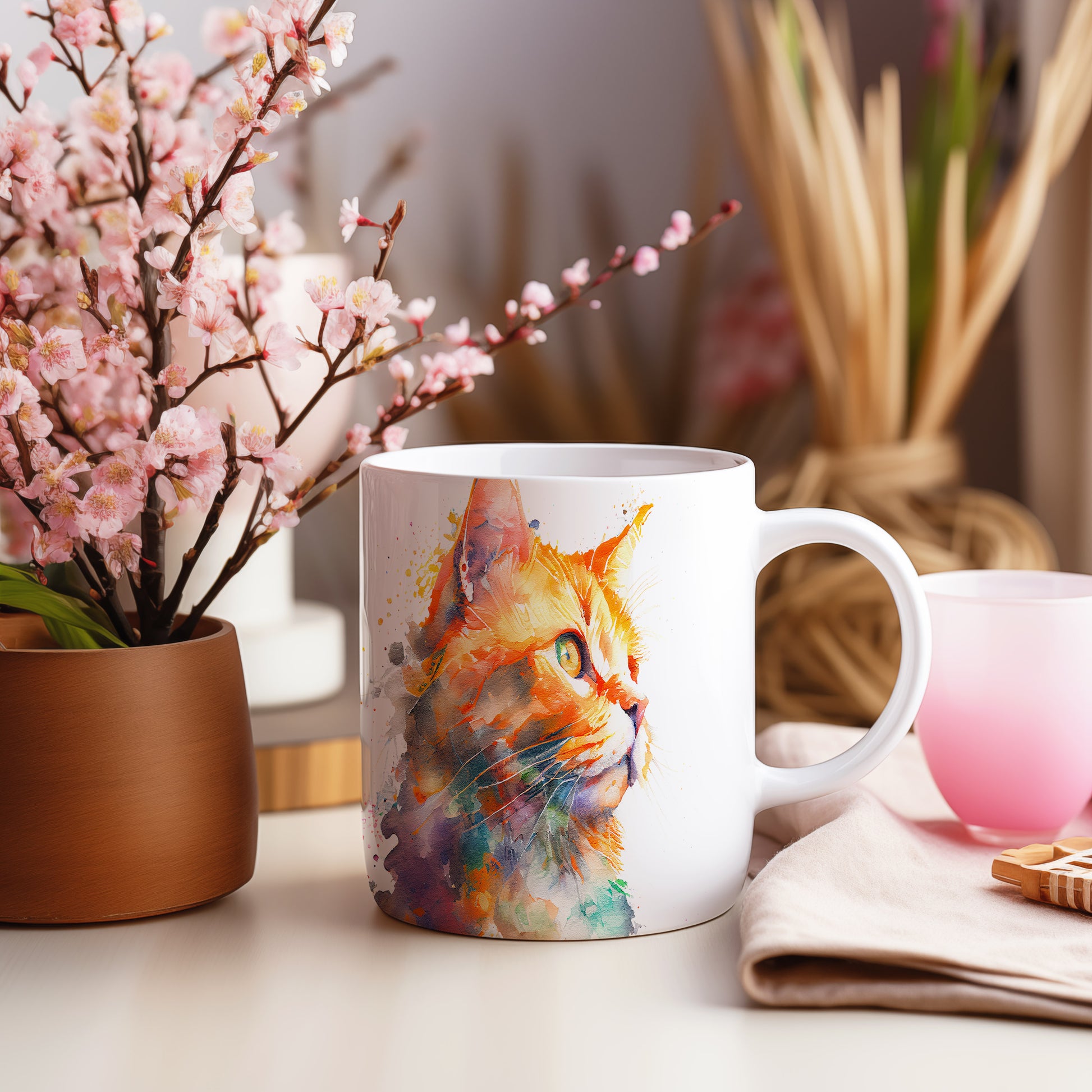 Tento keramický hrnek s jemnou akvarelovou ilustrací oranžové kočky je ideálním doplňkem pro všechny milovníky domácích mazlíčků. Skvěle se hodí jako dárek pro přátele nebo rodinu, kteří mají rádi kočky. Materiál: keramika. Objem: 330 ml. Vhodné do myčky i mikrovlnky. Díky svému designu přináší radost do každodenního pití.