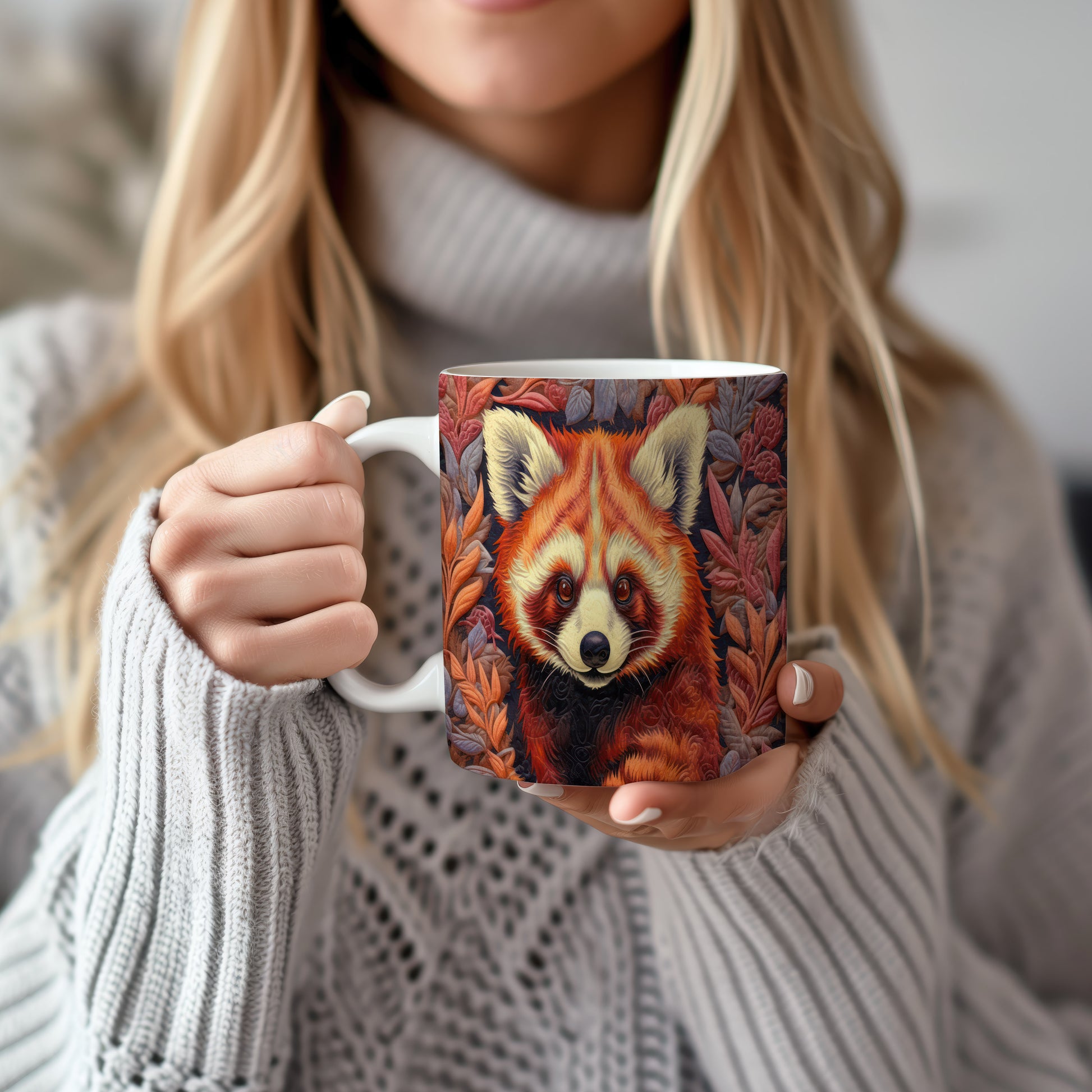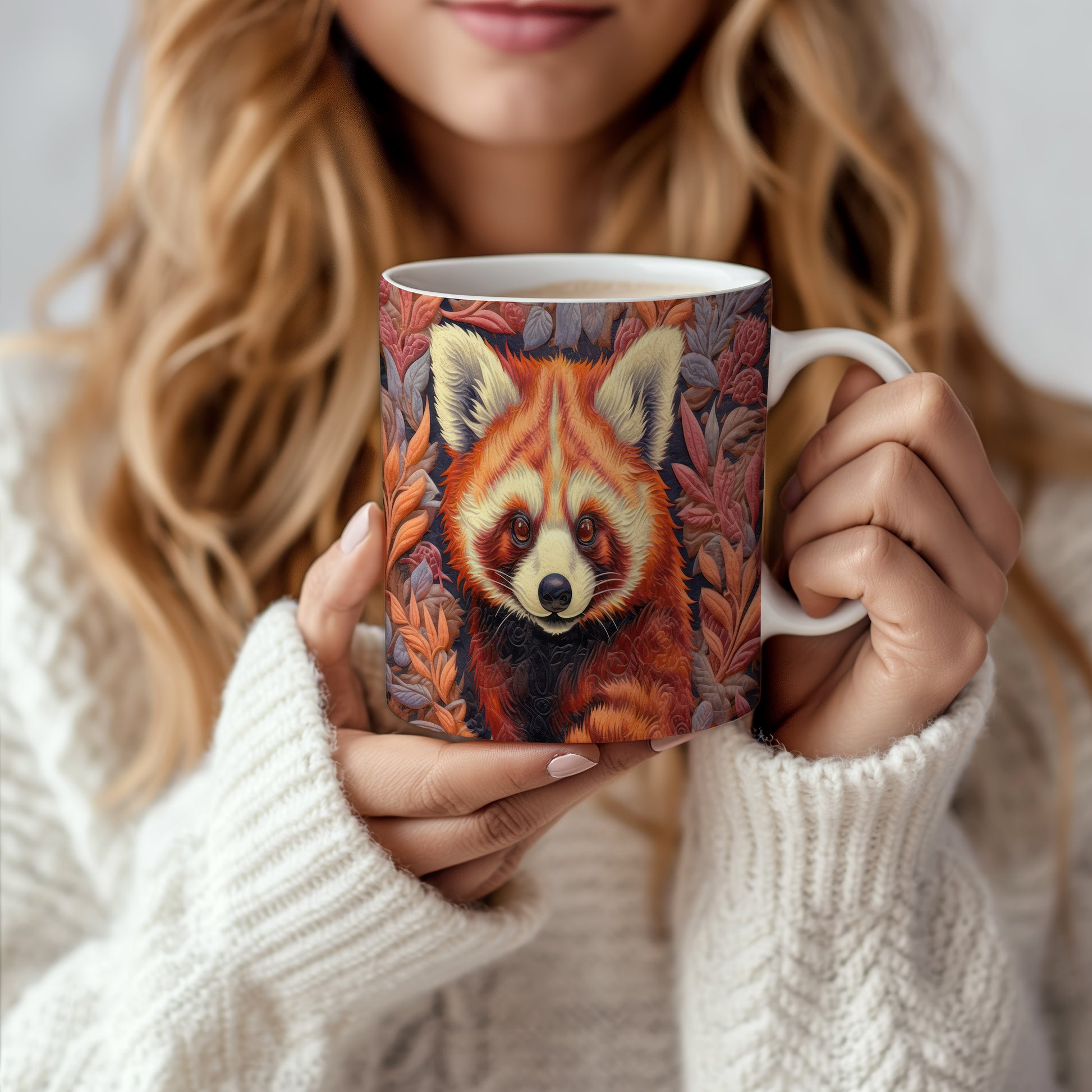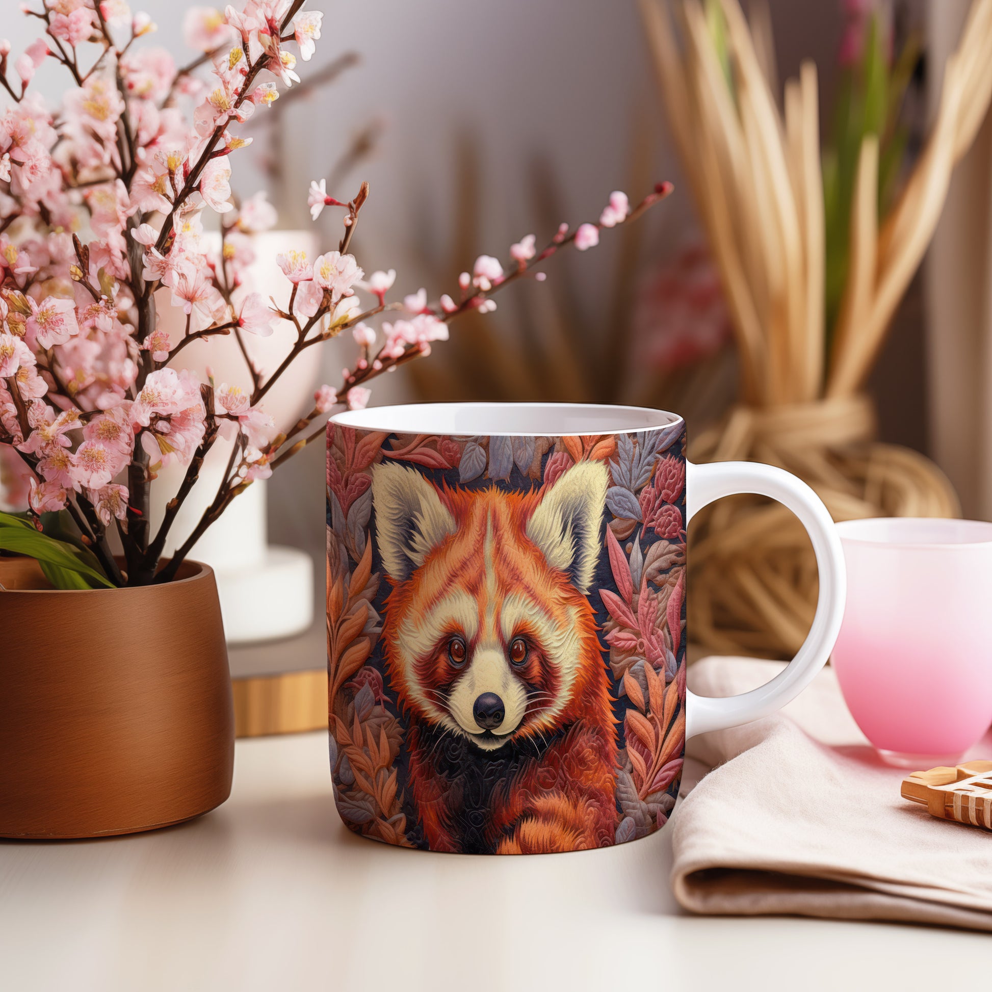 Tento keramický hrnek s motivem roztomilé pandy a barevných listů přináší přírodní kouzlo do každého nápoje. Je ideální pro milovníky zvířat a přírody, skvělý tip na dárek pro přátele nebo rodinu. Materiál: keramika. Objem: 330 ml. Vhodné do myčky i mikrovlnky. Používání tohoto hrnku vám zpříjemní každé sousto a dodá vašim nápojům jedinečný styl.