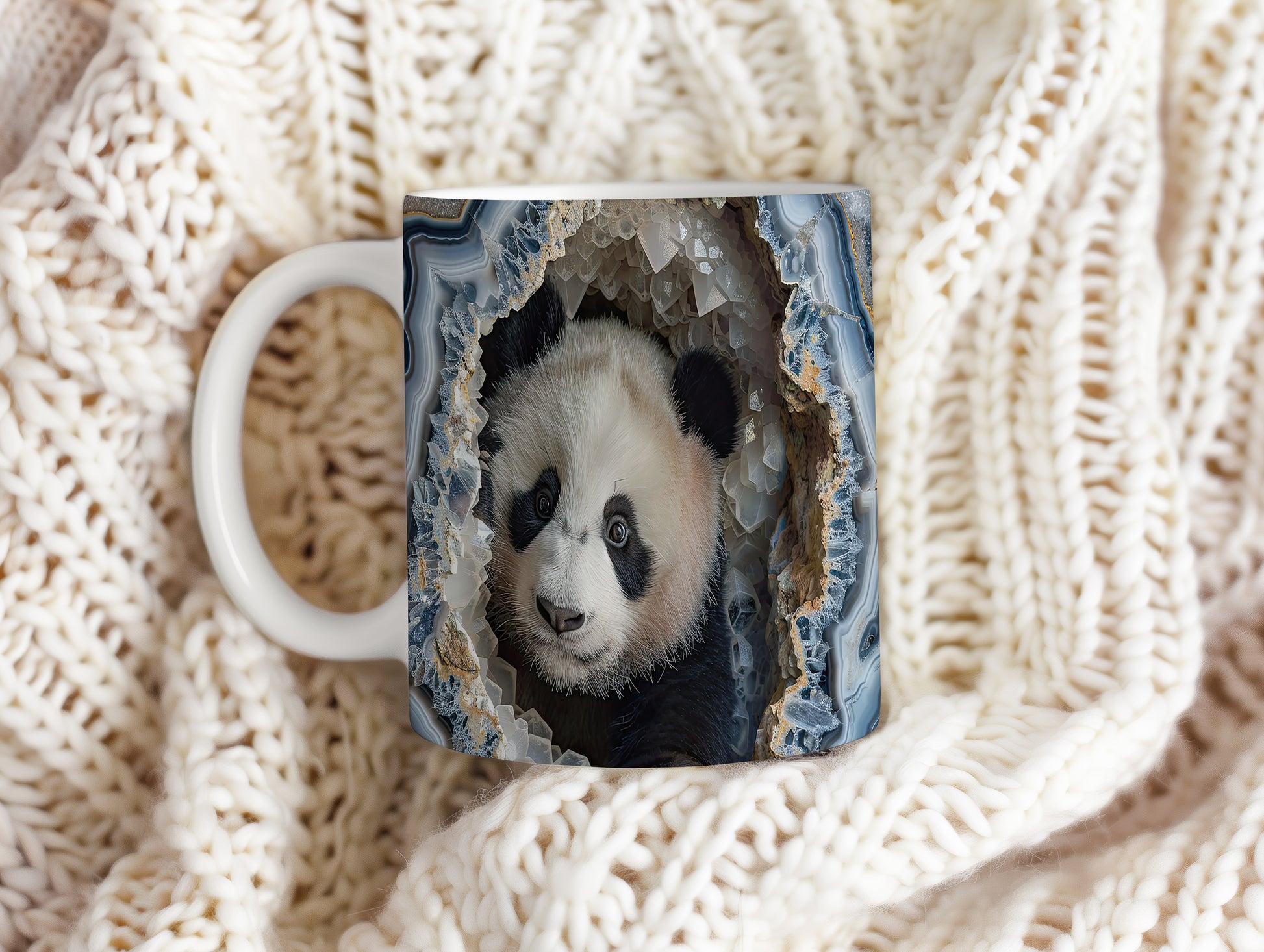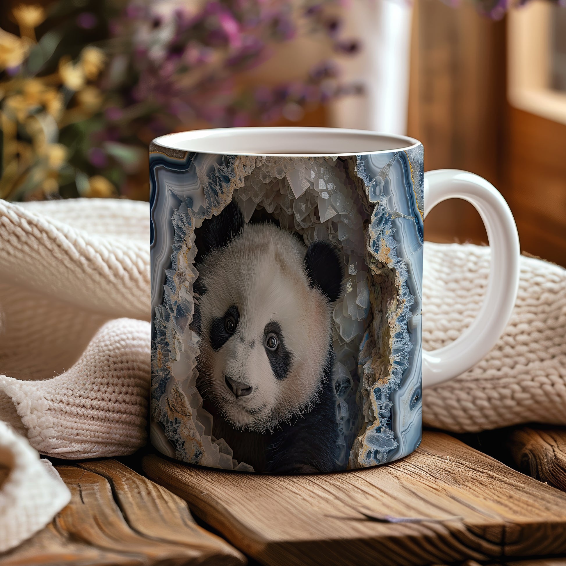 Hrnek s roztomilou pandou – digitální ilustrací v přírodních tónech