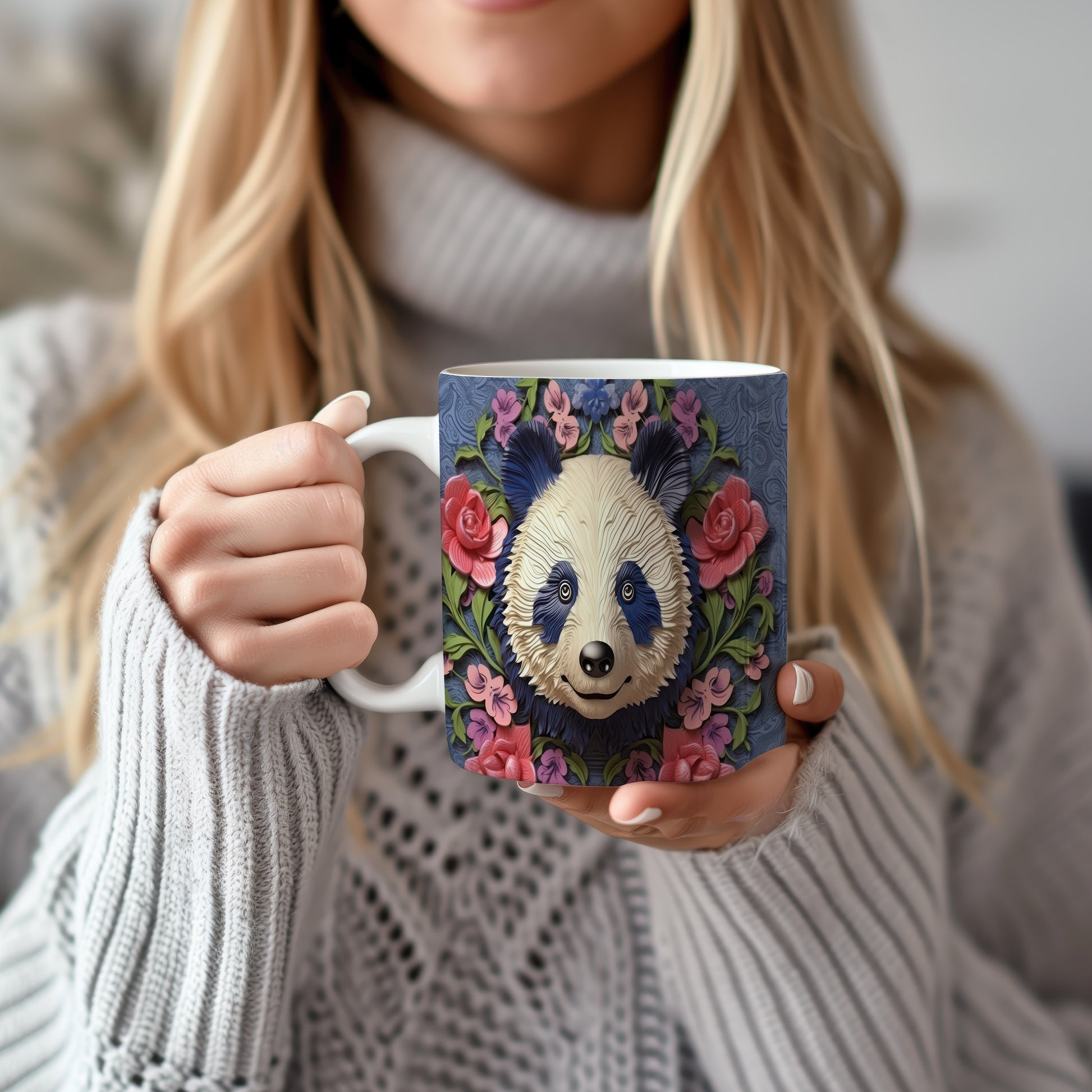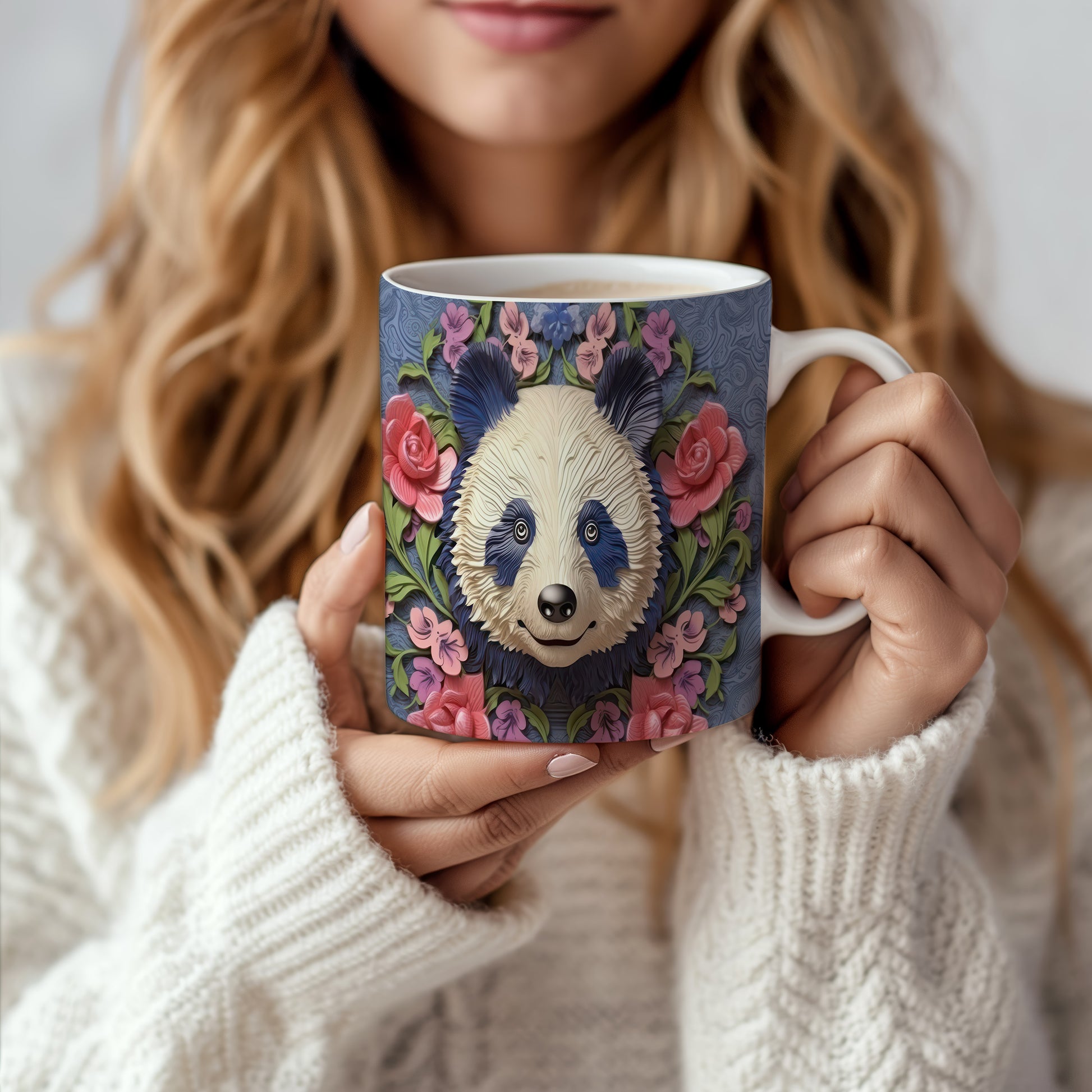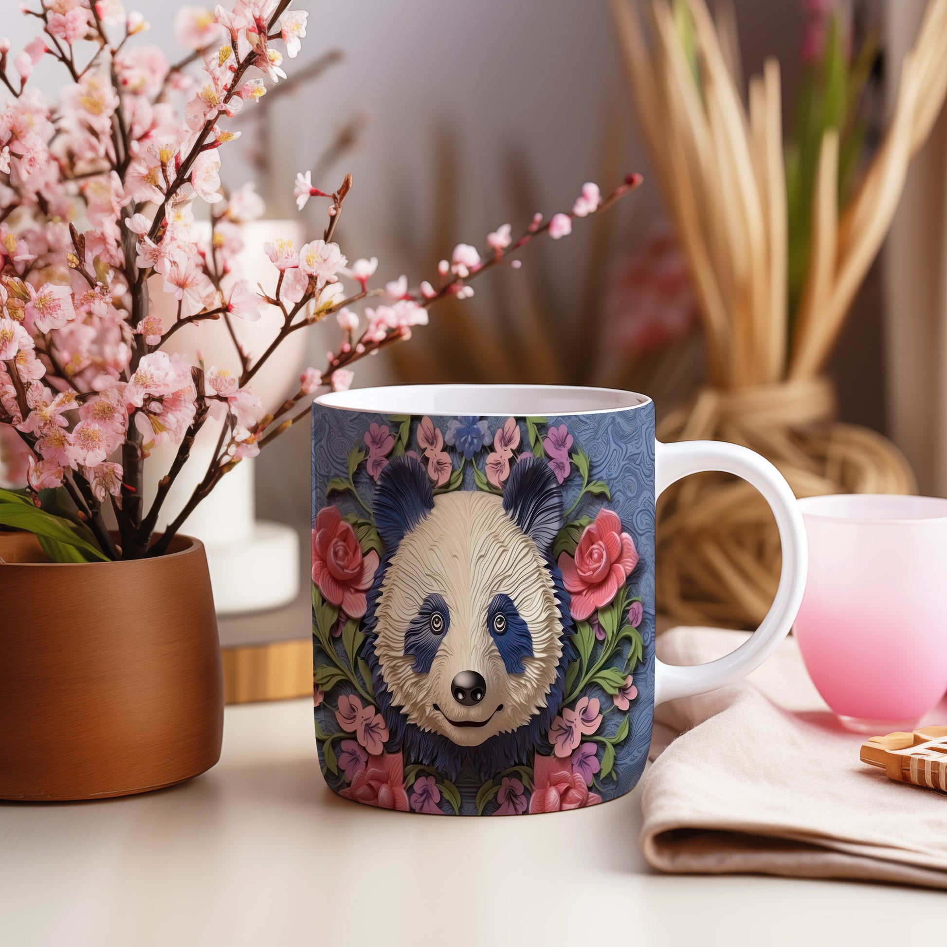 Hrnek s roztomilou pandou – jemnými detaily