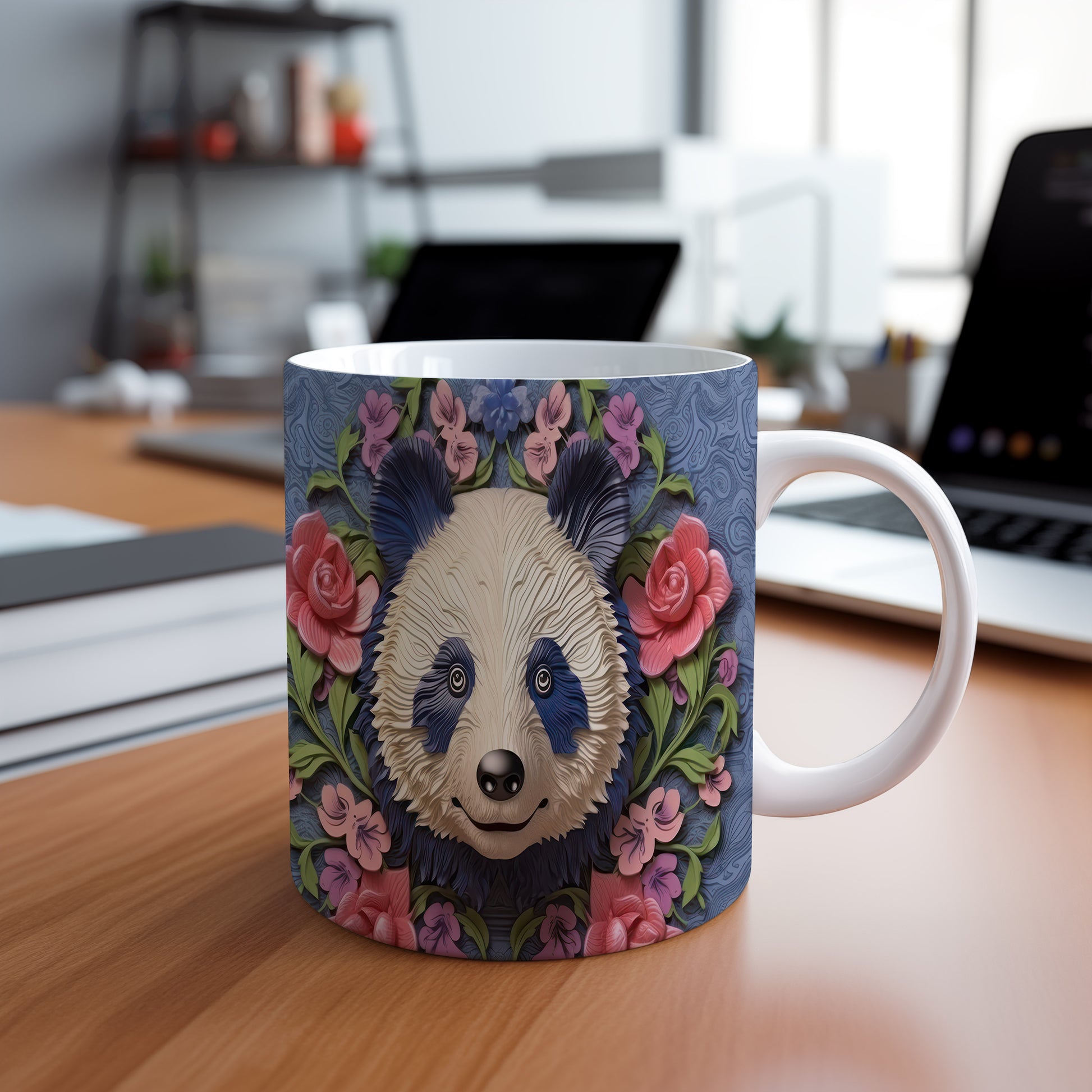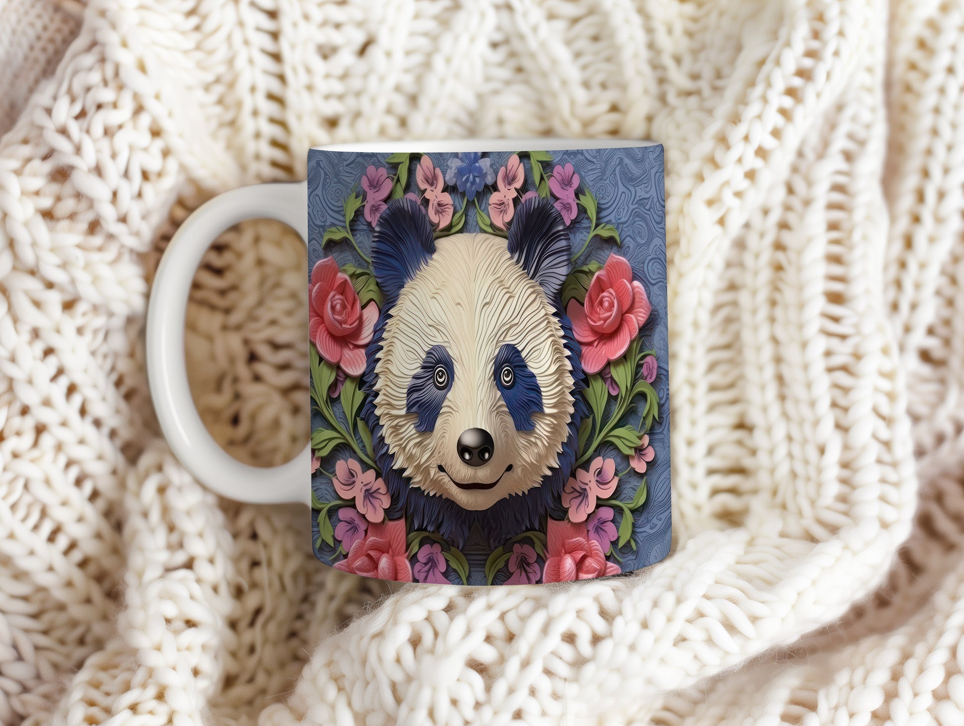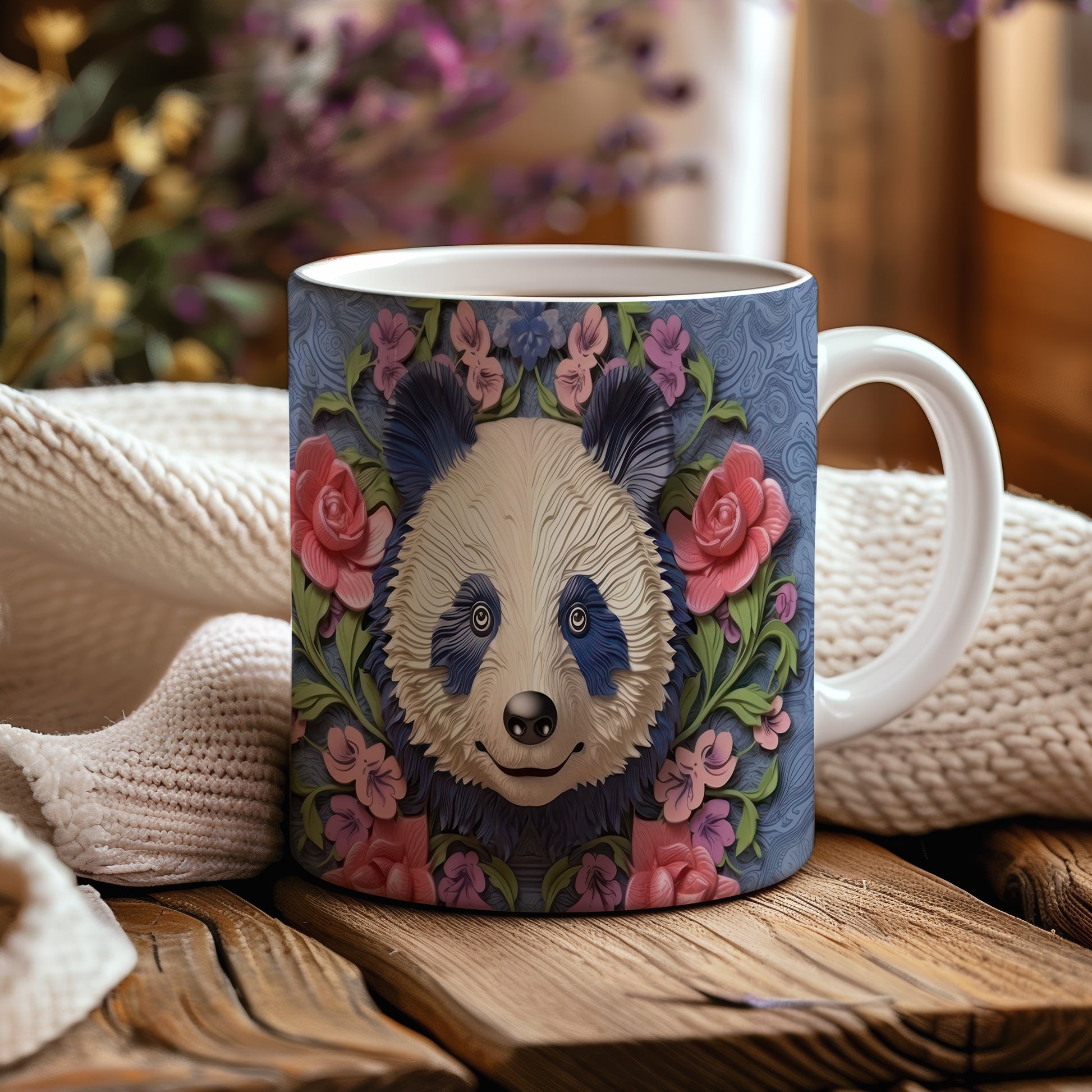 Hrnek s roztomilou pandou – jemnými detaily