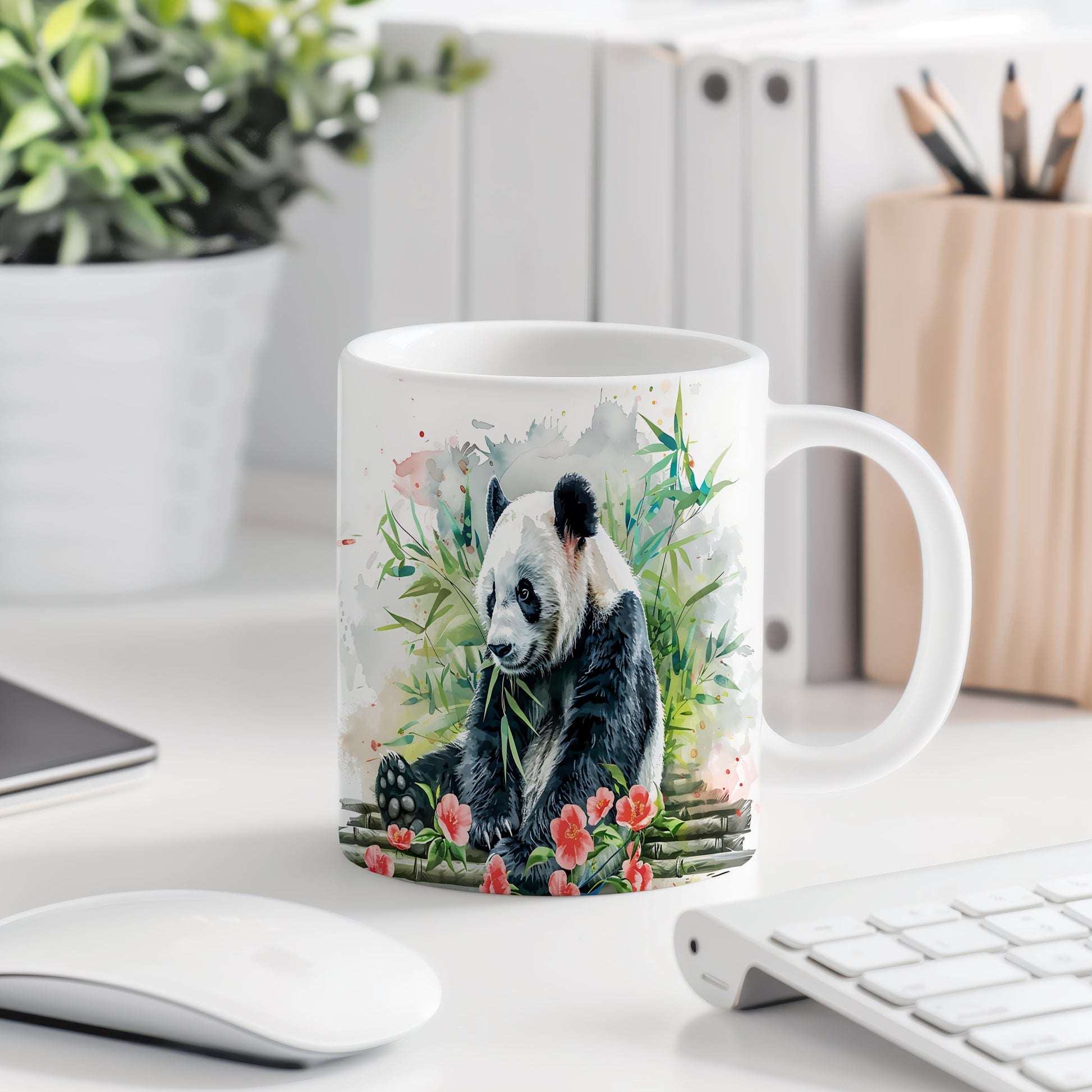 Tento hrnek s motivem roztomilé pandy je ideální pro milovníky zvířat a přírody. Skvělý tip na dárek pro děti i dospělé, kteří ocení hravý design. Materiál: keramika. Objem: 330 ml. Vhodné do myčky i mikrovlnky. Užívejte si svůj oblíbený nápoj s úsměvem díky tomuto jedinečnému kousku.