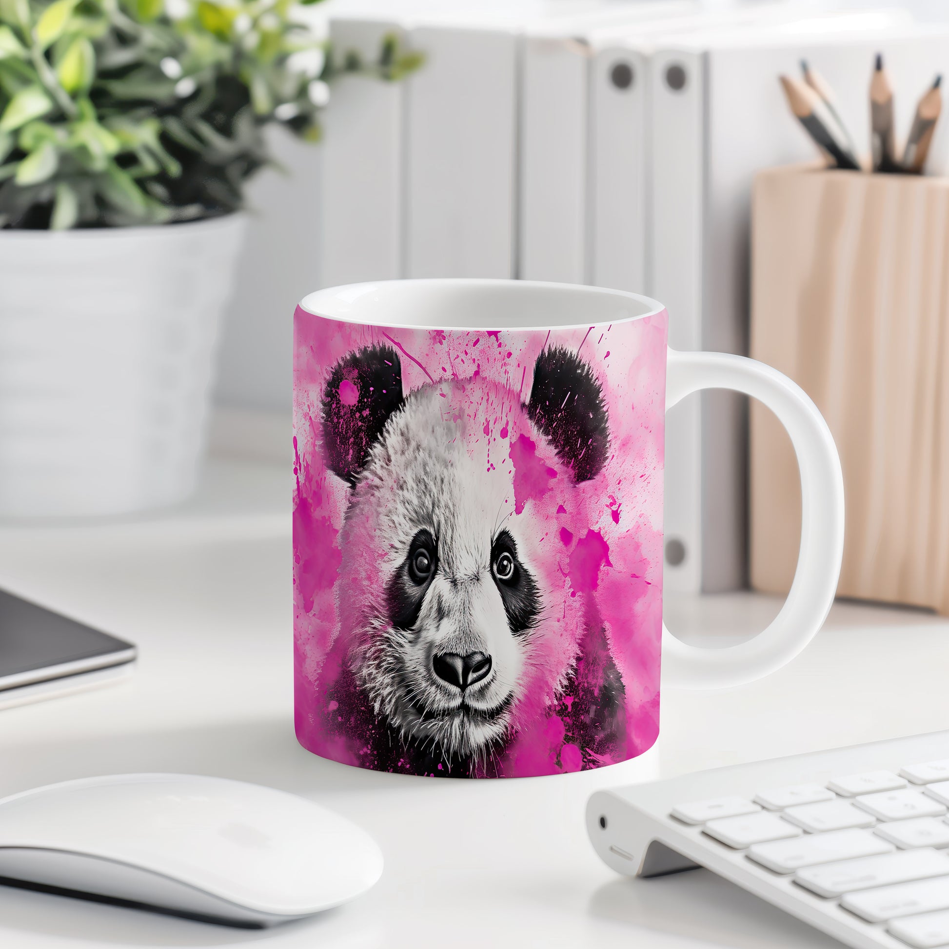 Tento hrnek s detailním portrétem roztomilé pandy na barevném pozadí je ideální pro milovníky zvířat a kreativní duše. Skvělý tip na dárek pro přátele nebo rodinu, kteří ocení originální design. Materiál: keramika. Objem: 330 ml. Vhodné do myčky i mikrovlnky. Užívejte si kávu nebo čaj s tímto jedinečným hrnkem, který přinese radost do každého dne.