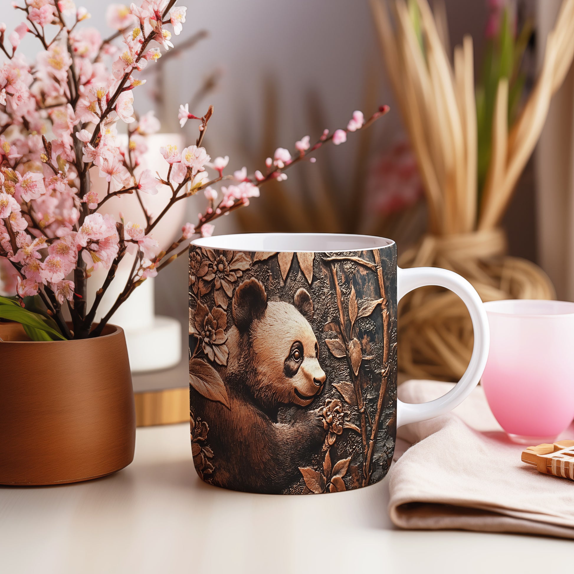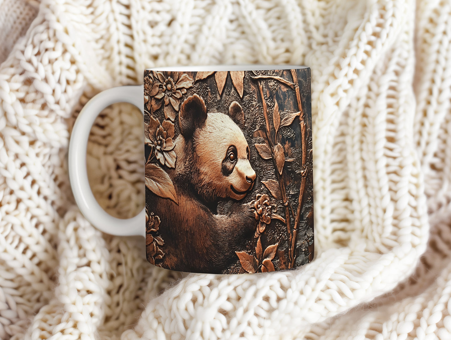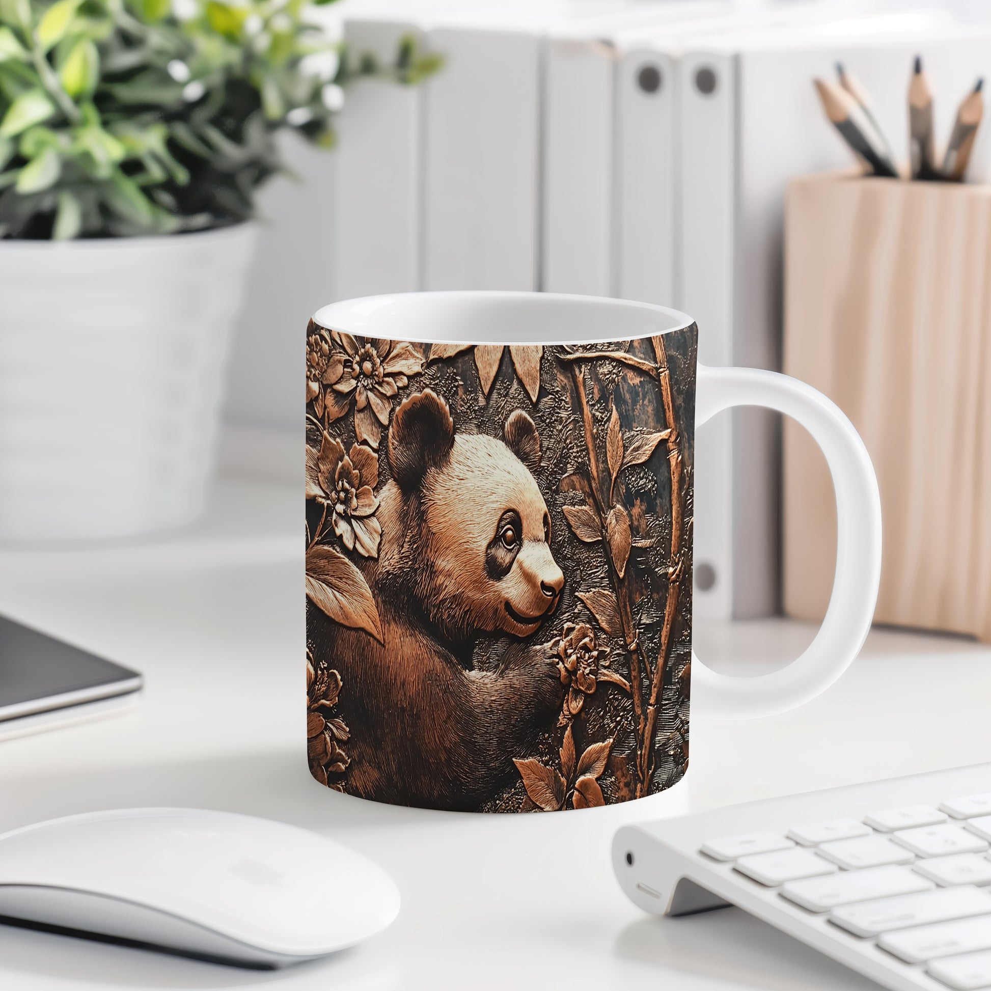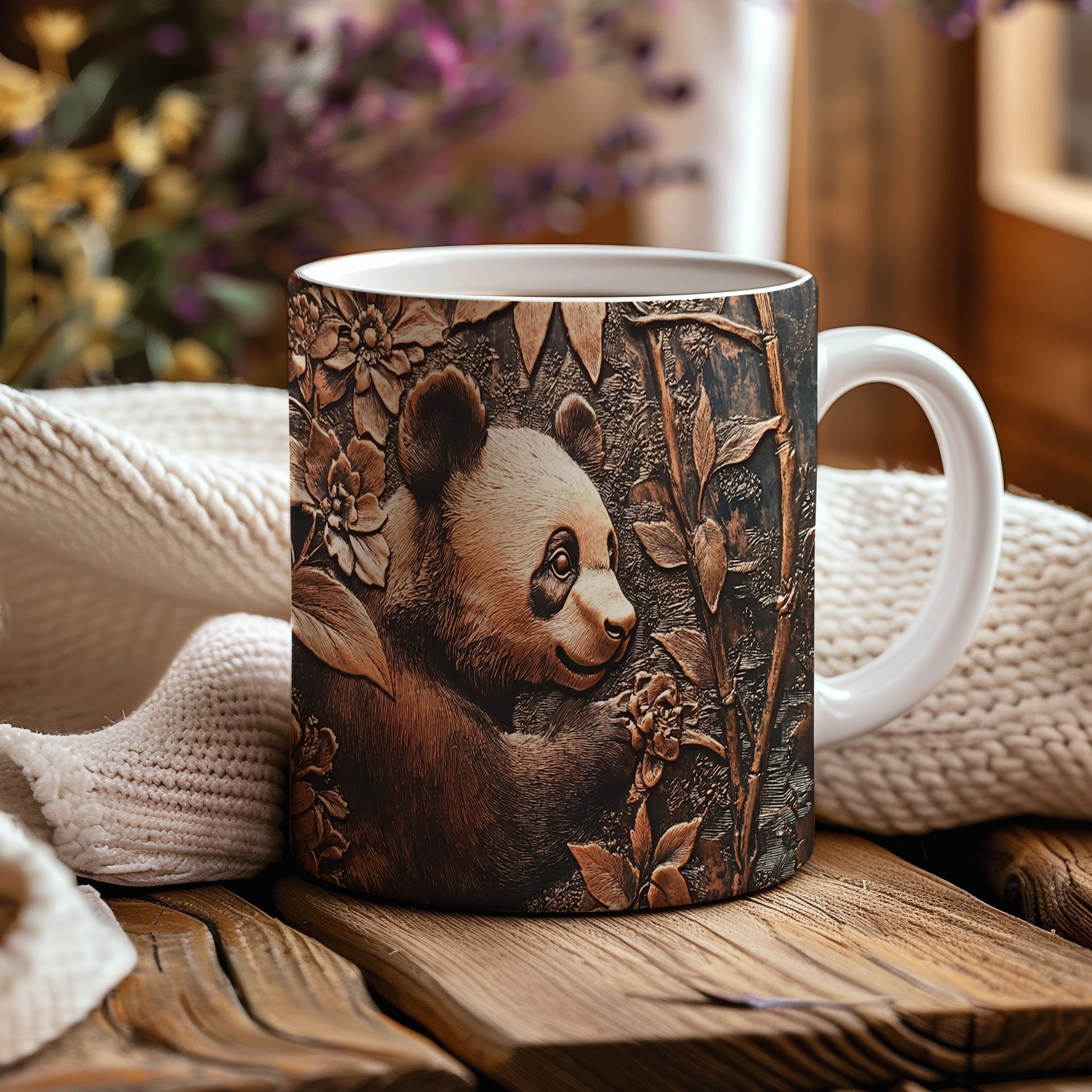Hrnek s roztomilou pandou v hnědých a krémových tónech