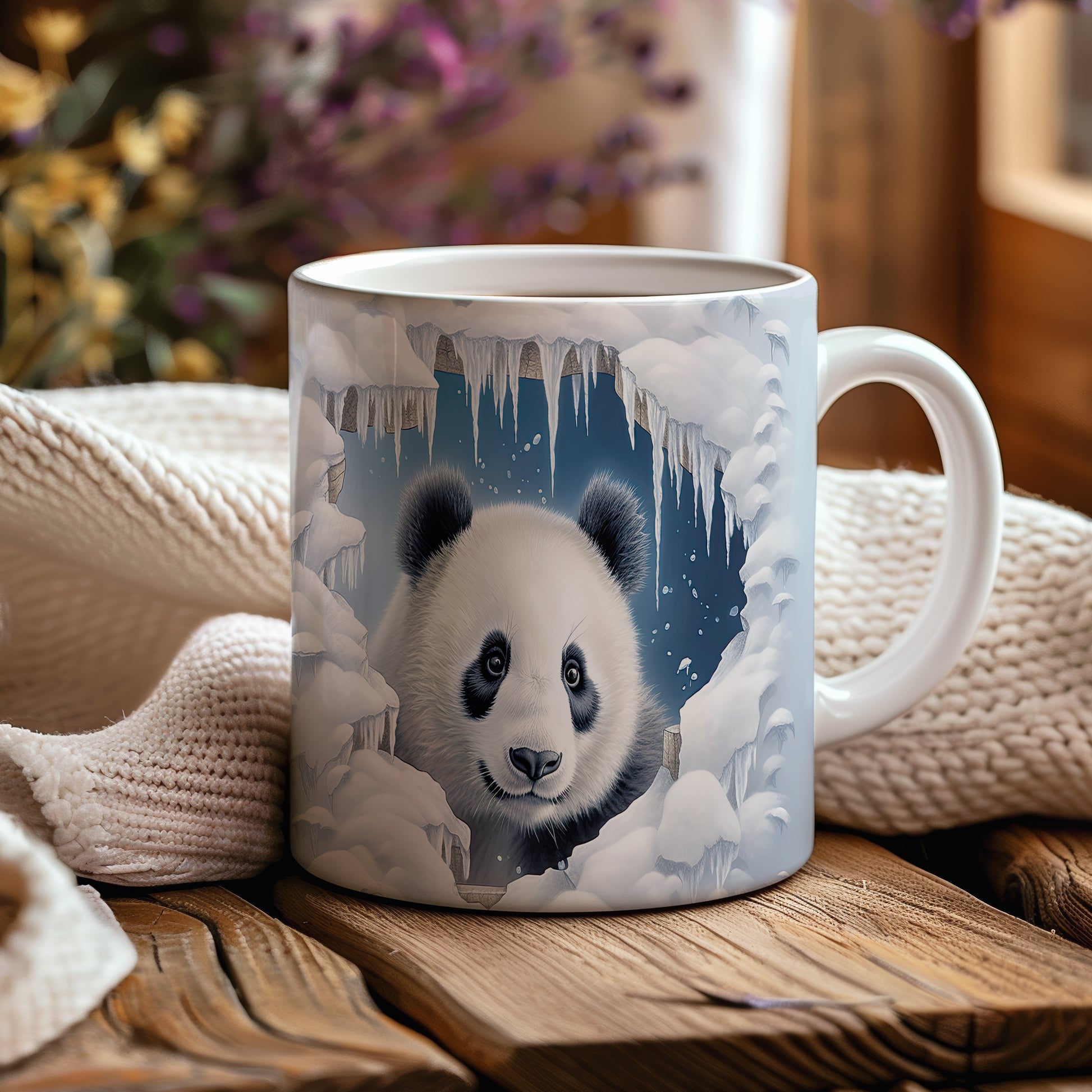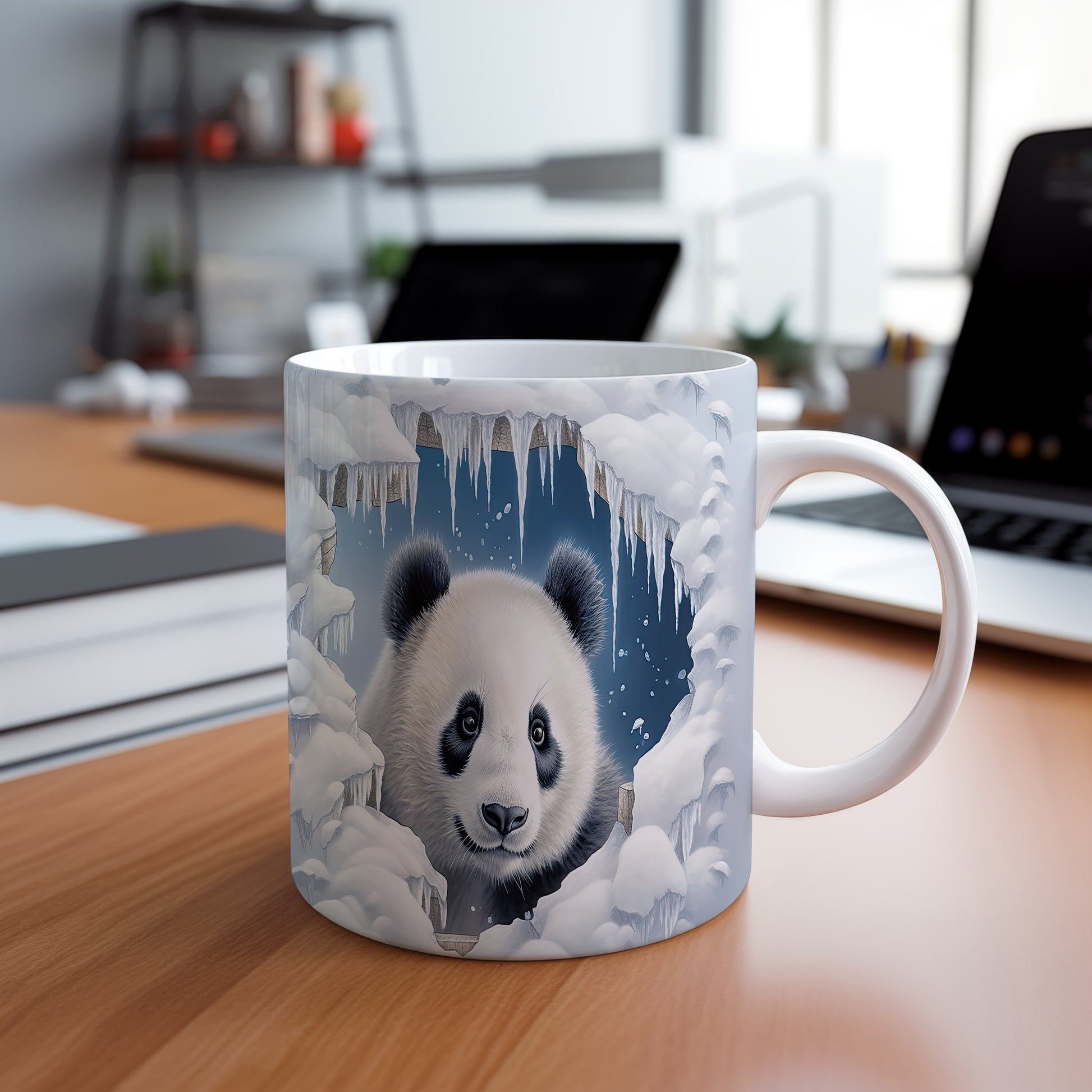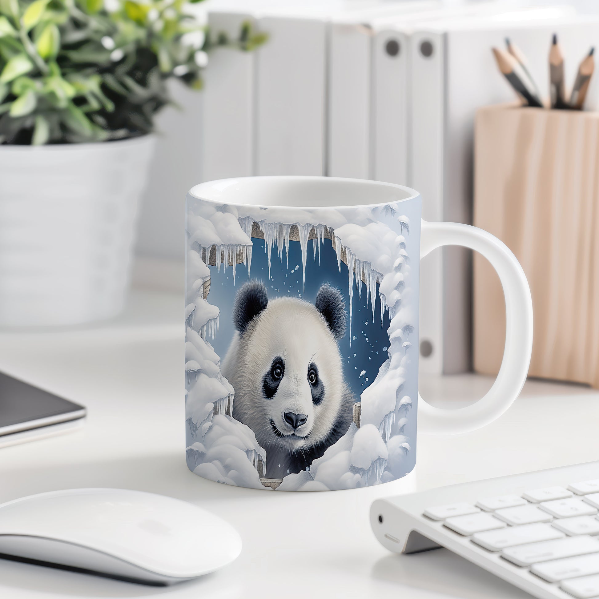 Tento hrnek s motivem roztomilé pandy v zimní krajině přináší kouzelný pohled na toto zvíře obklopené ledovými krystaly. Je ideální pro milovníky zvířat a skvělým dárkem pro děti i dospělé. Materiál: keramika. Objem: 330 ml. Vhodné do myčky i mikrovlnky. Používání tohoto hrnku vám přinese radost při každém doušku.