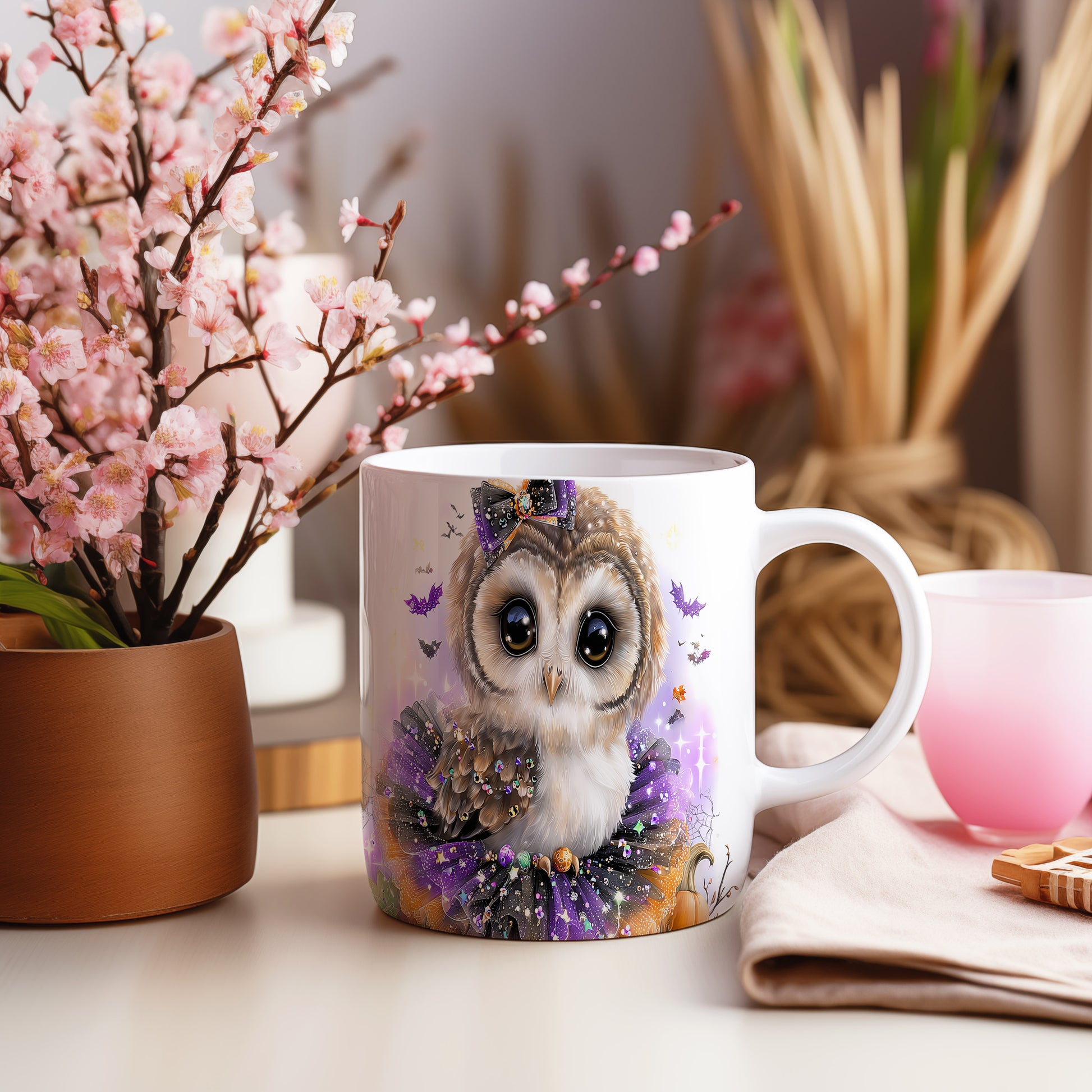 Hrnek s roztomilou sovičkou – stylovým zpracováním