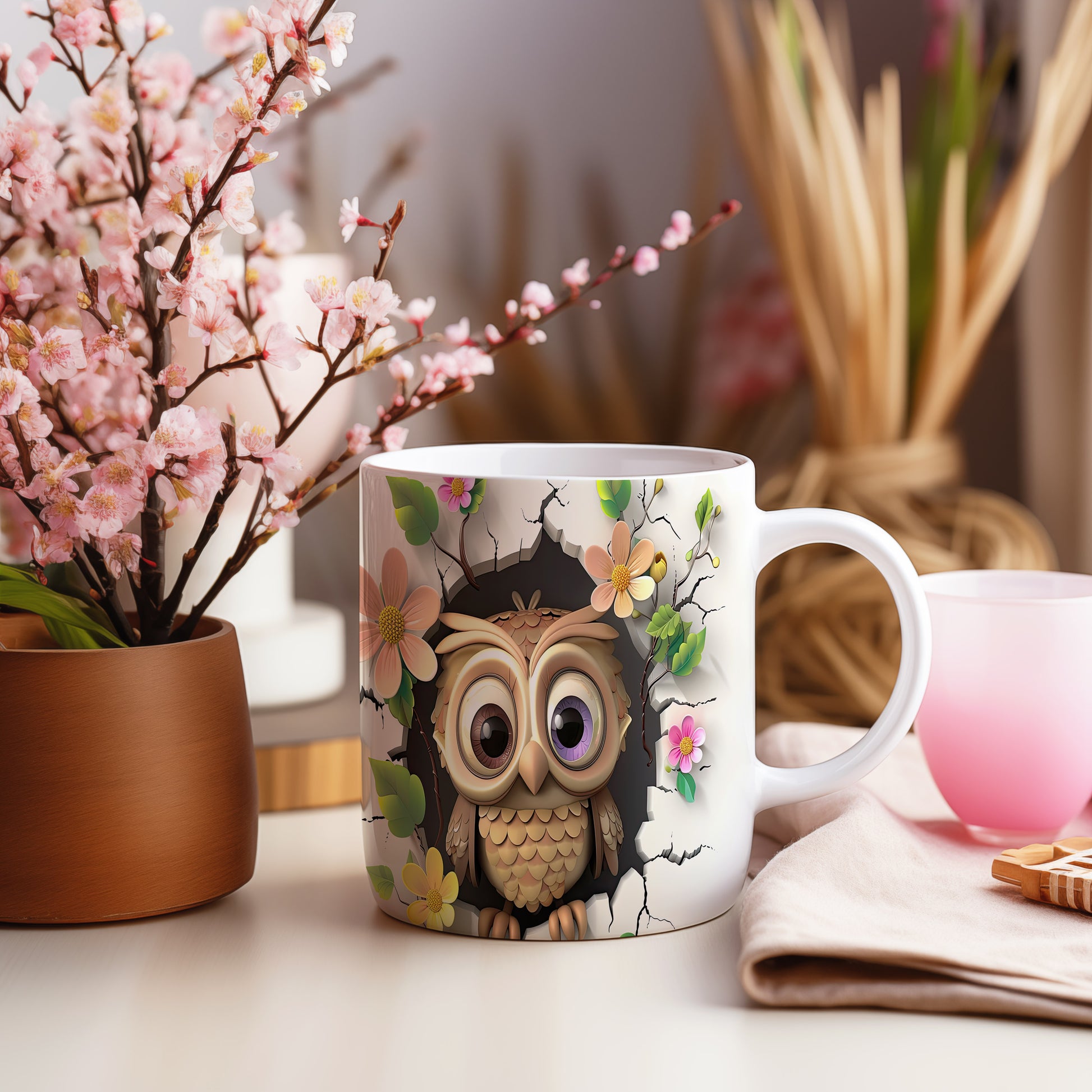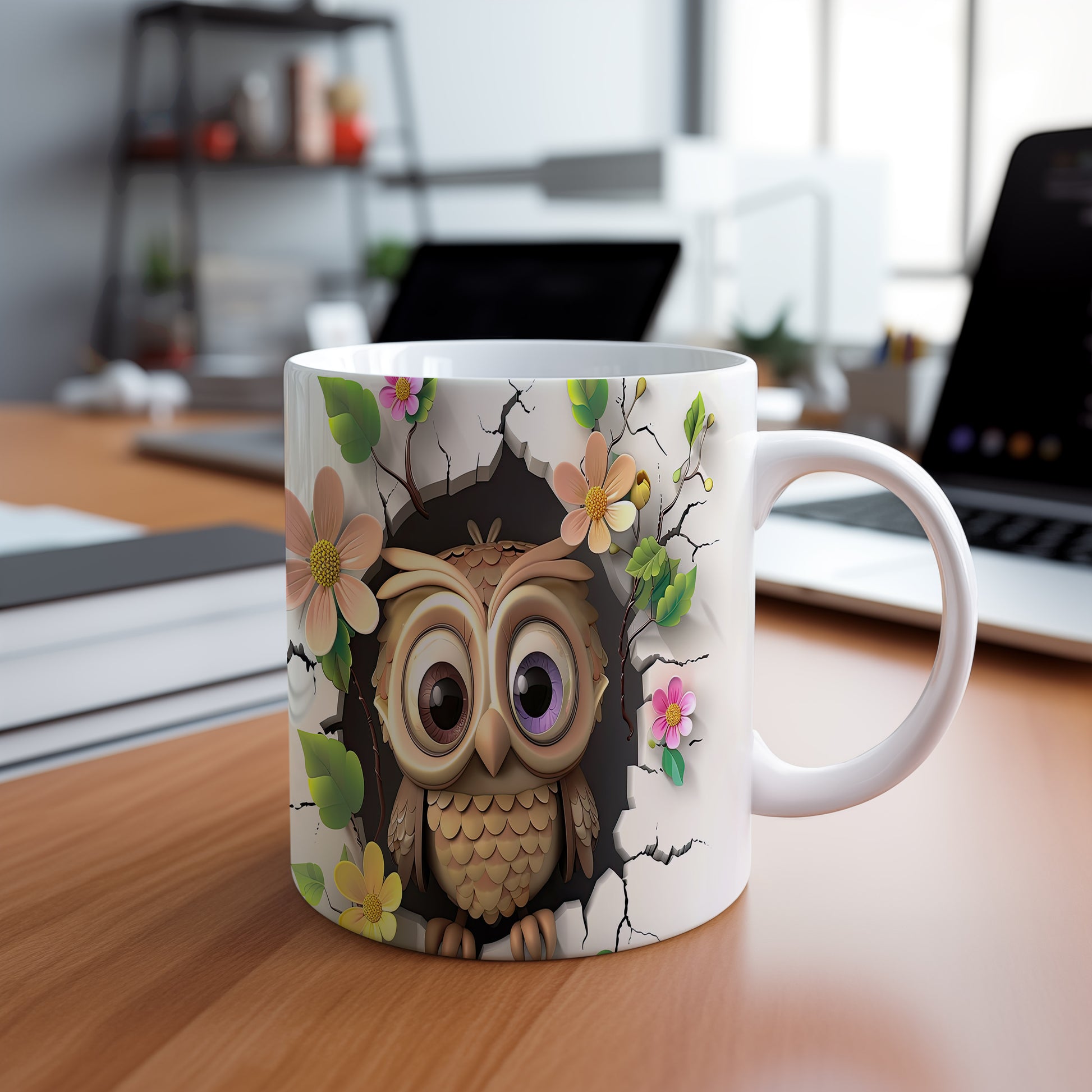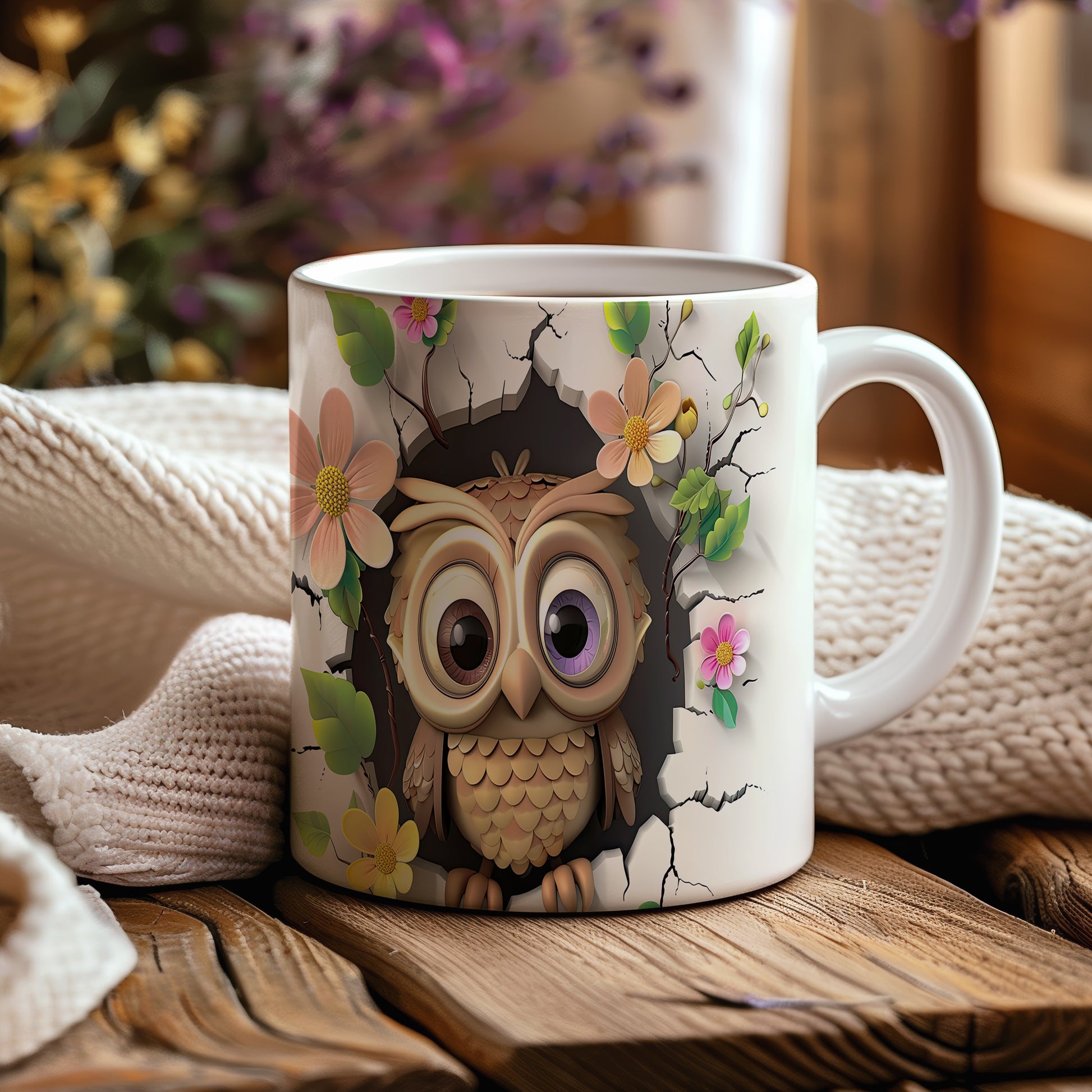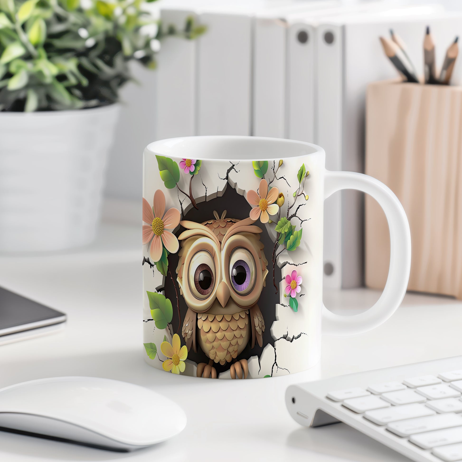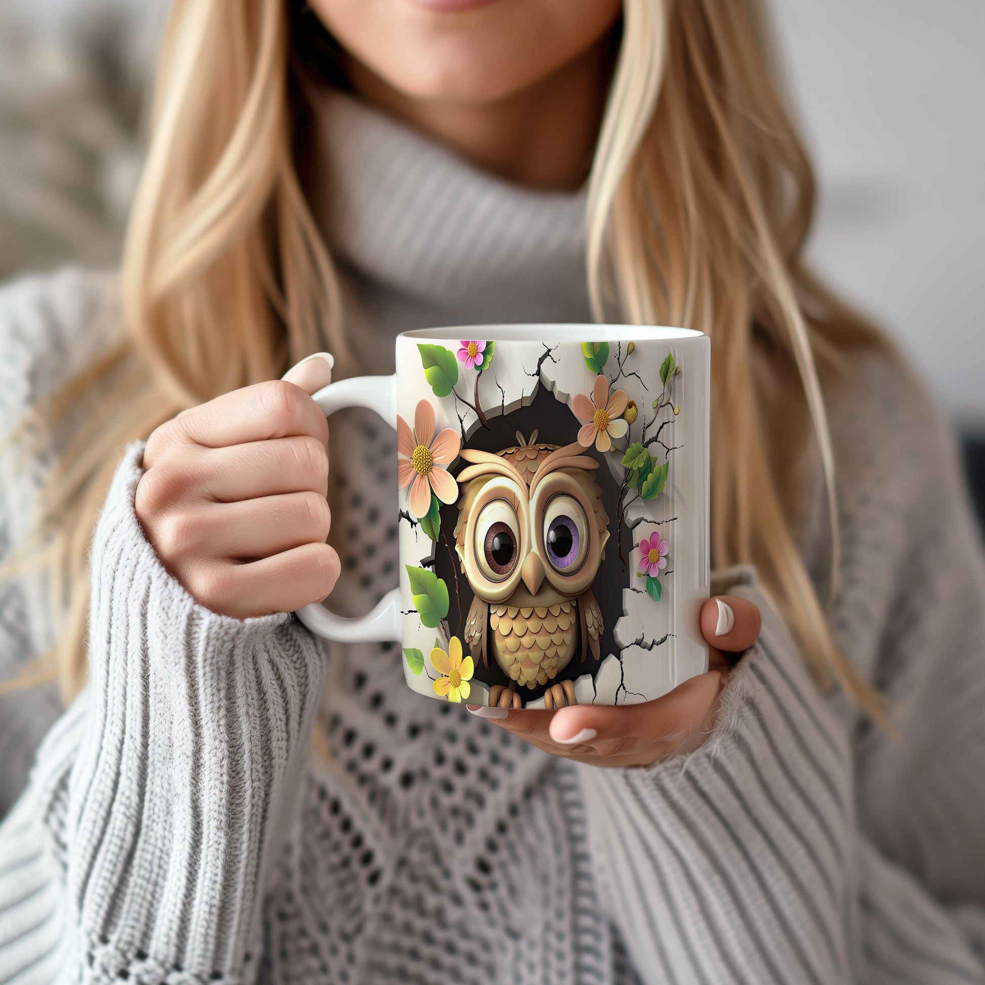 Tento keramický hrnek s roztomilou sovou a květinovým motivem je ideální pro milovníky přírody a zvířat. Skvělý tip na dárek pro přátele nebo rodinu, kteří ocení originální design. Materiál: keramika. Objem: 330 ml. Vhodné do myčky i mikrovlnky. Užívejte si každé sousto s tímto hrnkem, který přináší radost do každého dne.