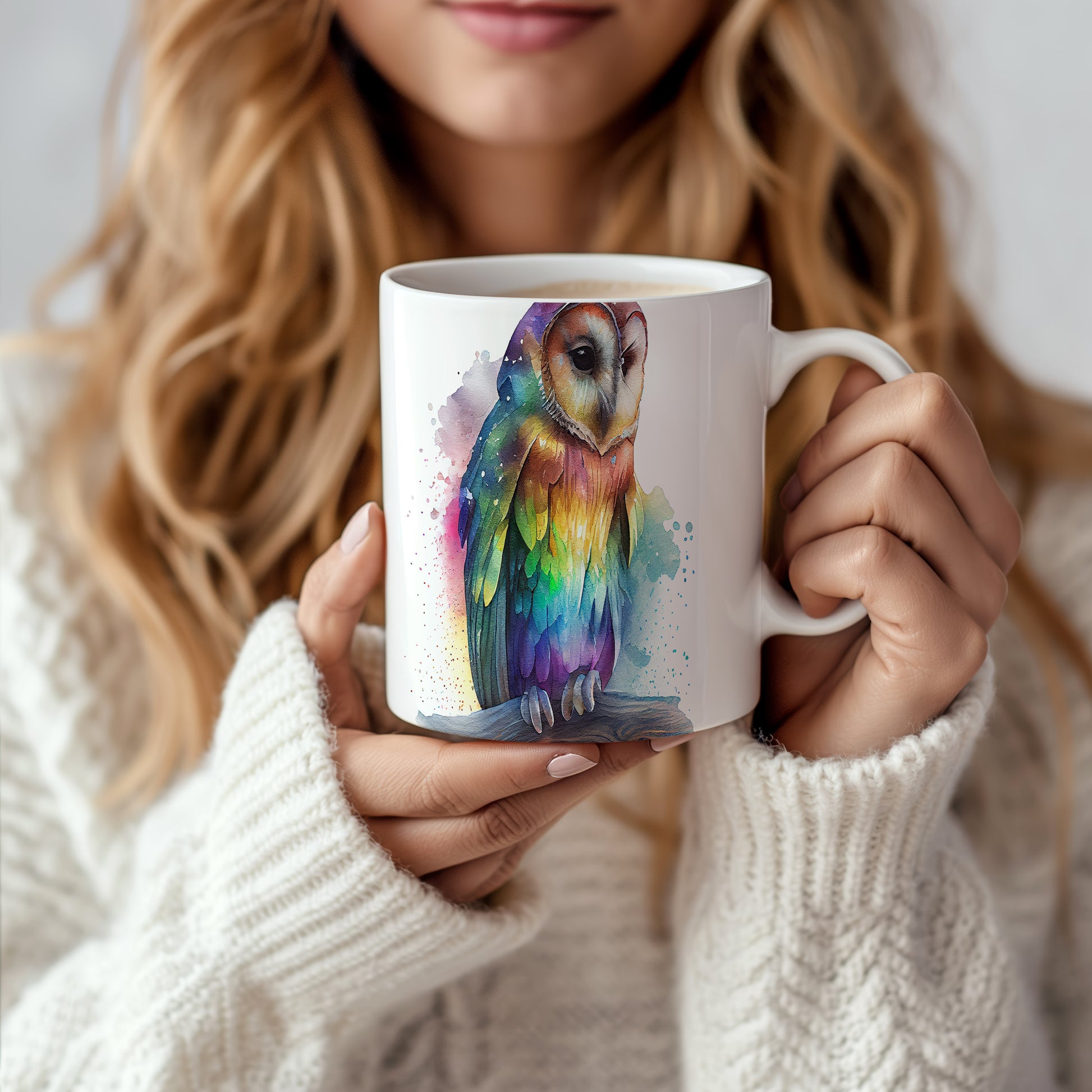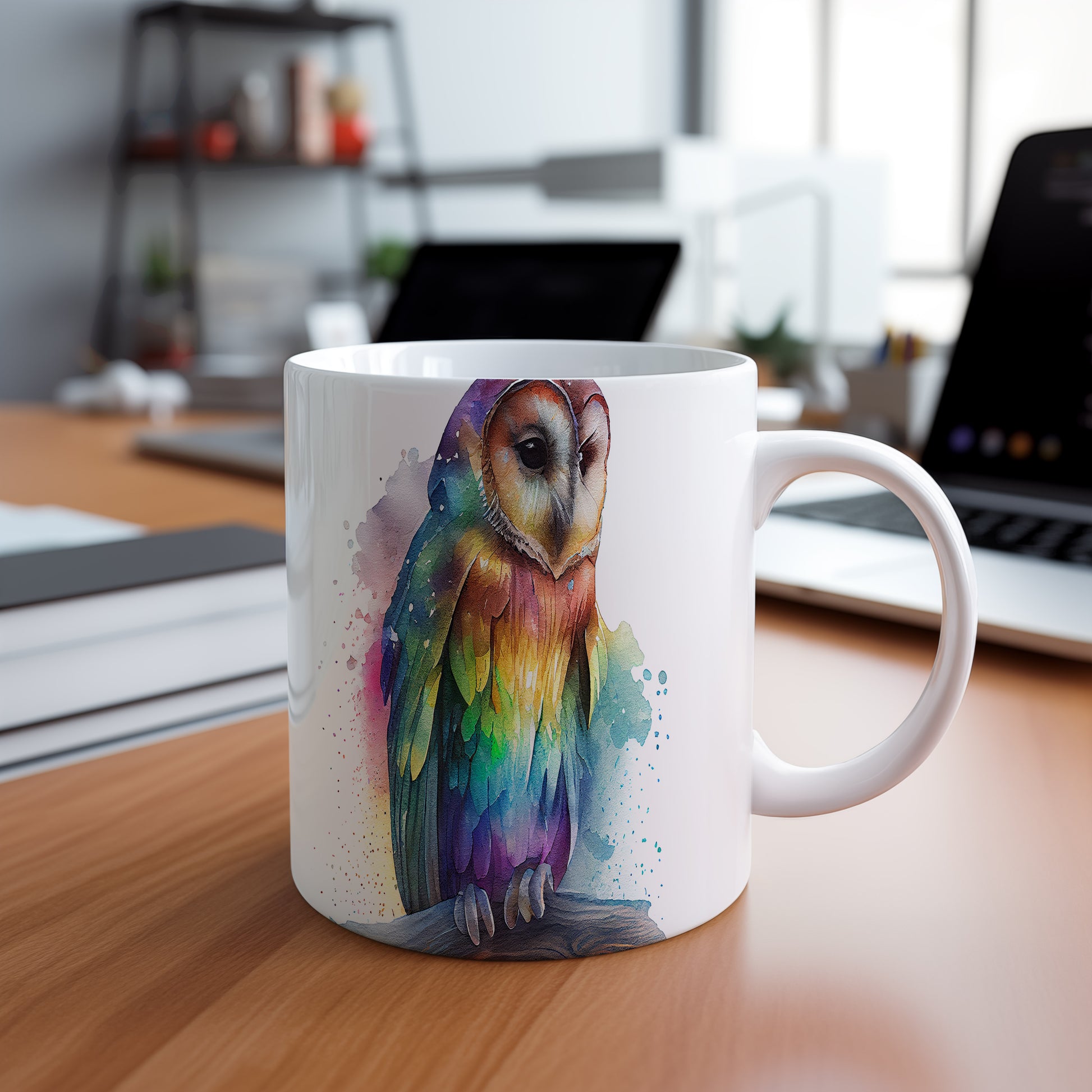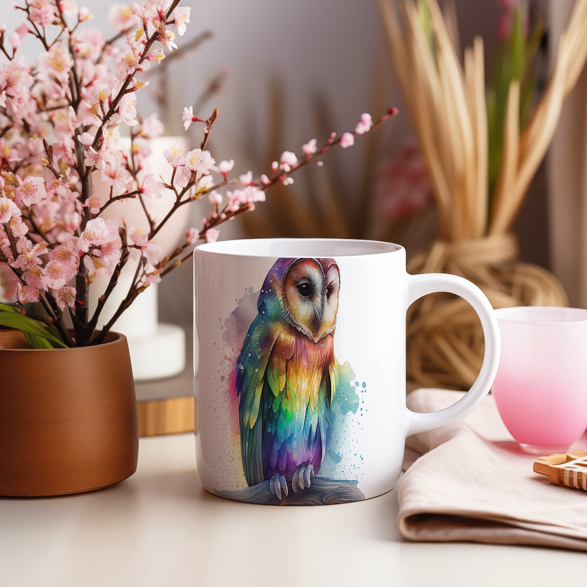 Hrnek s roztomilou sovou v akvarelovém stylu – akvarelovým stylem