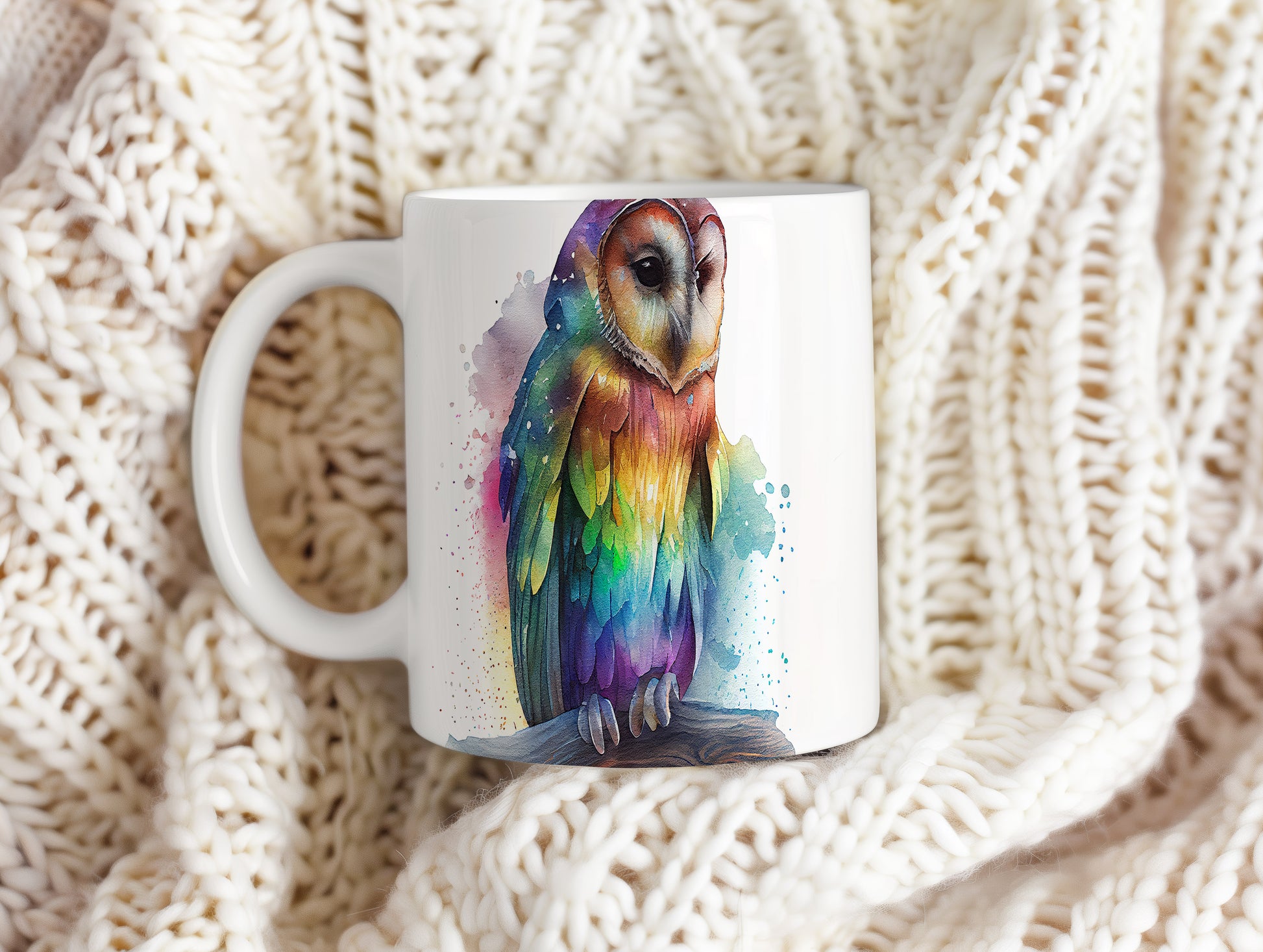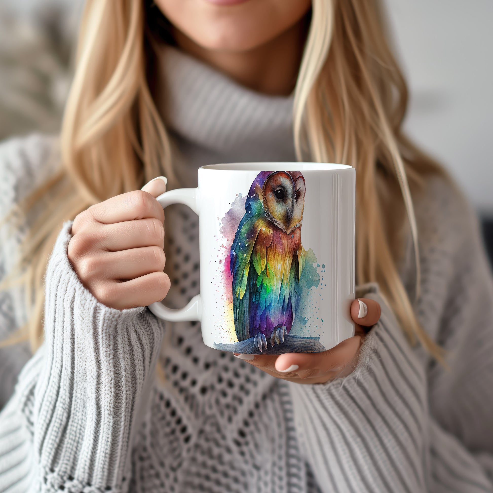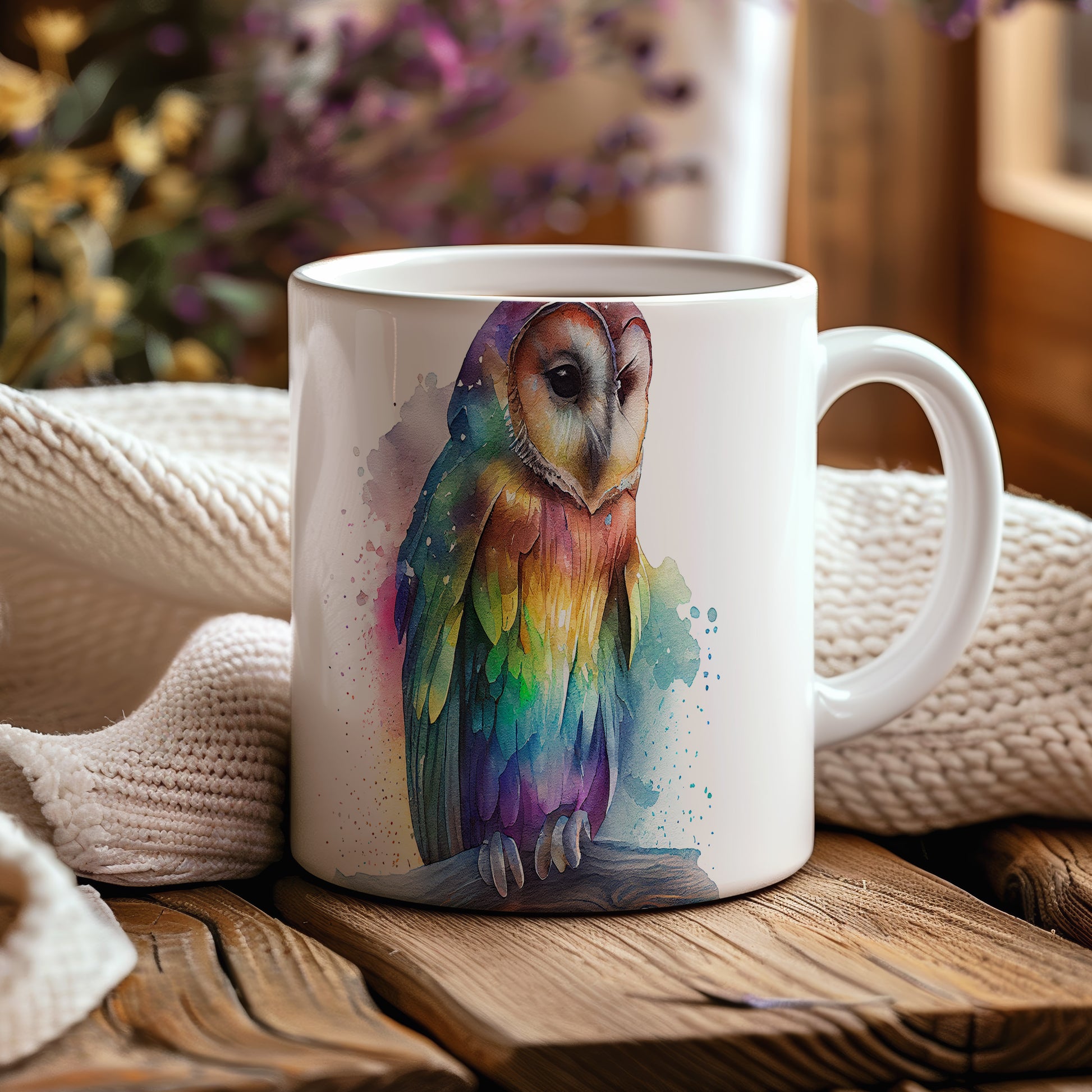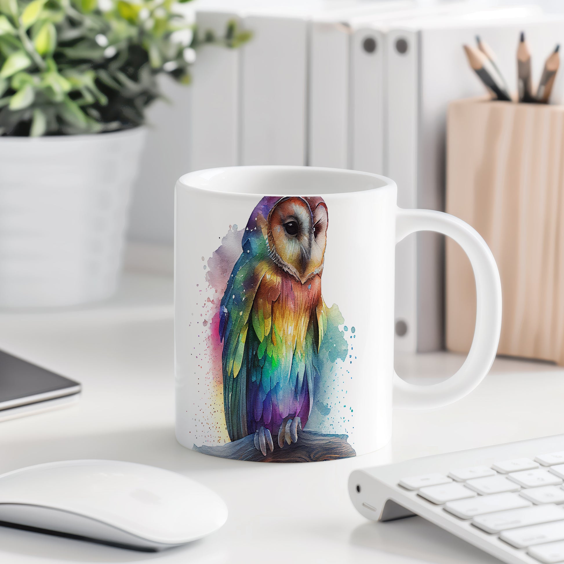 Hrnek s roztomilou sovou v akvarelovém stylu – akvarelovým stylem