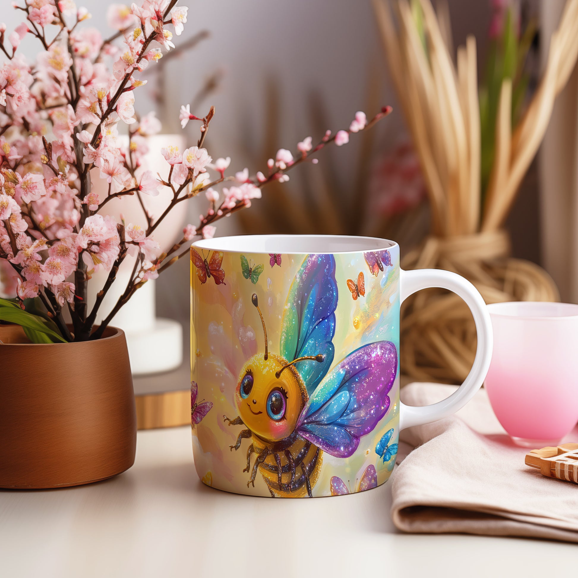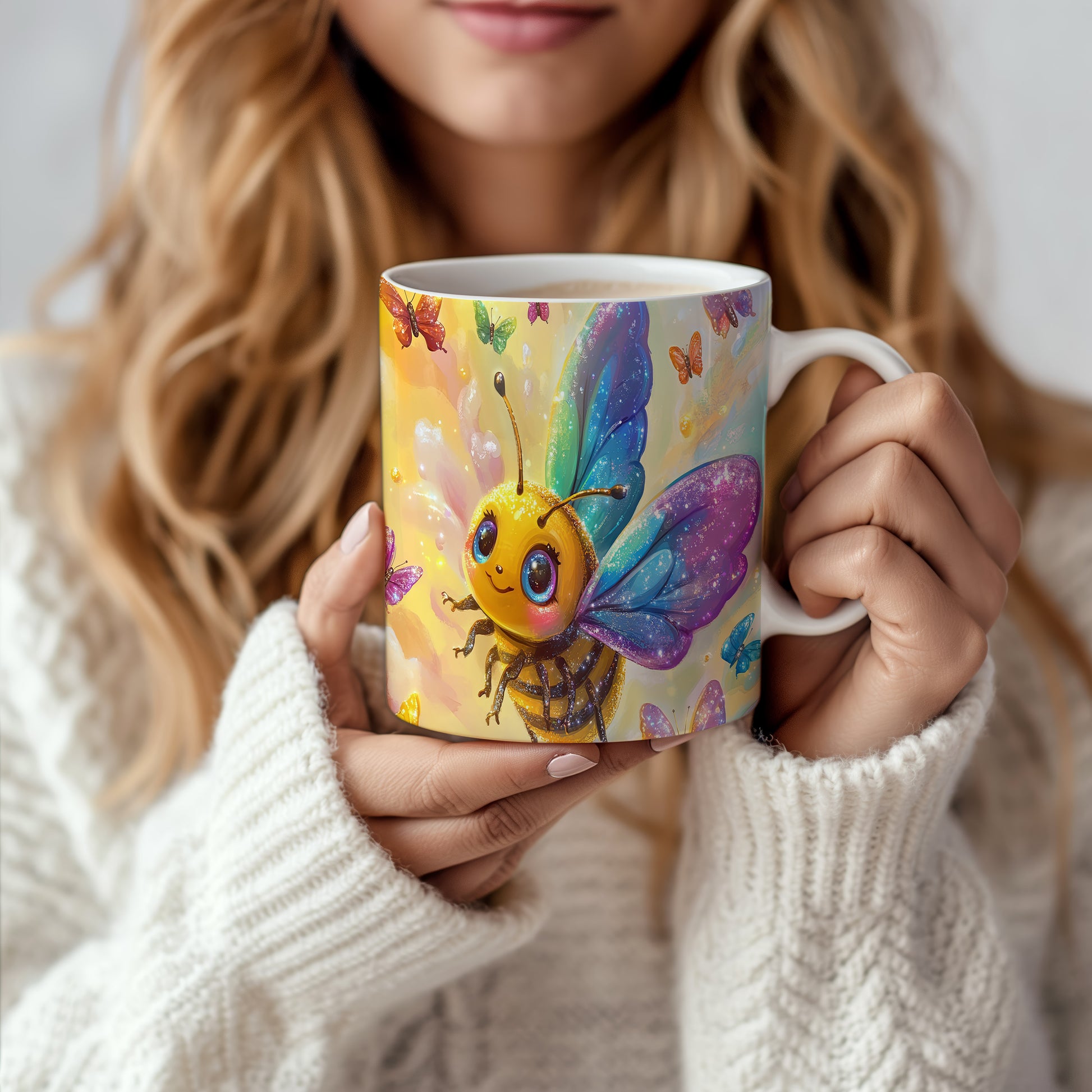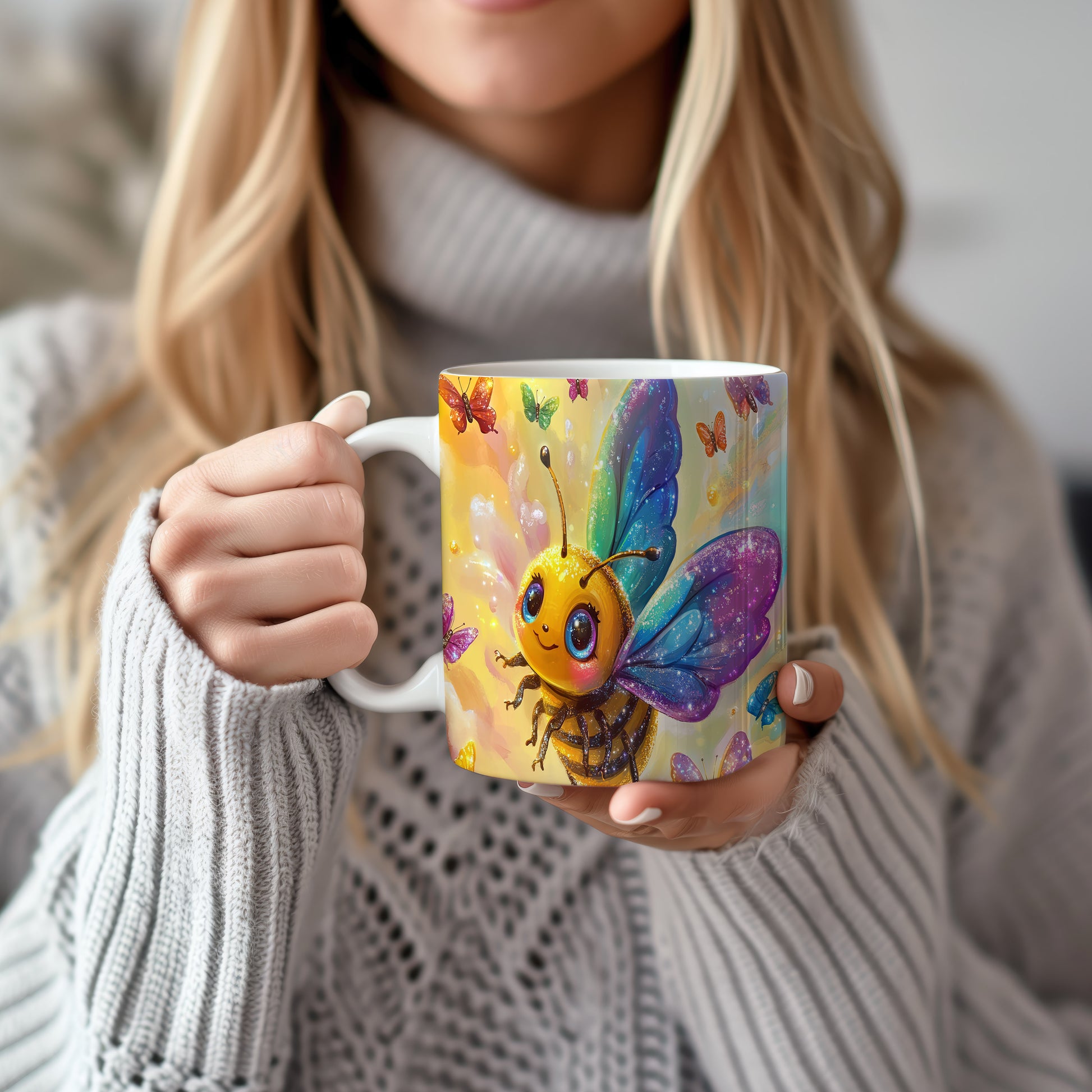 Veselý hrnek s motivem roztomilé včelky a barevných motýlků. Tento hrnek je ideální pro milovníky přírody a skvělým dárkem pro přátele či rodinu. Materiál: keramika. Objem: 330 ml. Vhodné do myčky i mikrovlnky. Používání tohoto hrnku přináší radost a oživí každé ráno.