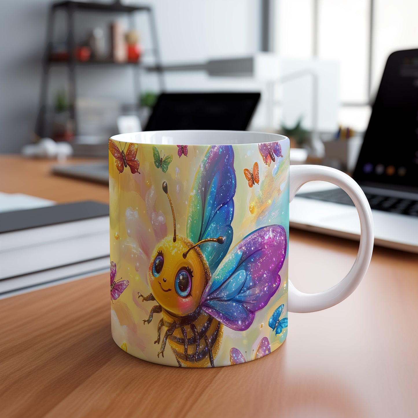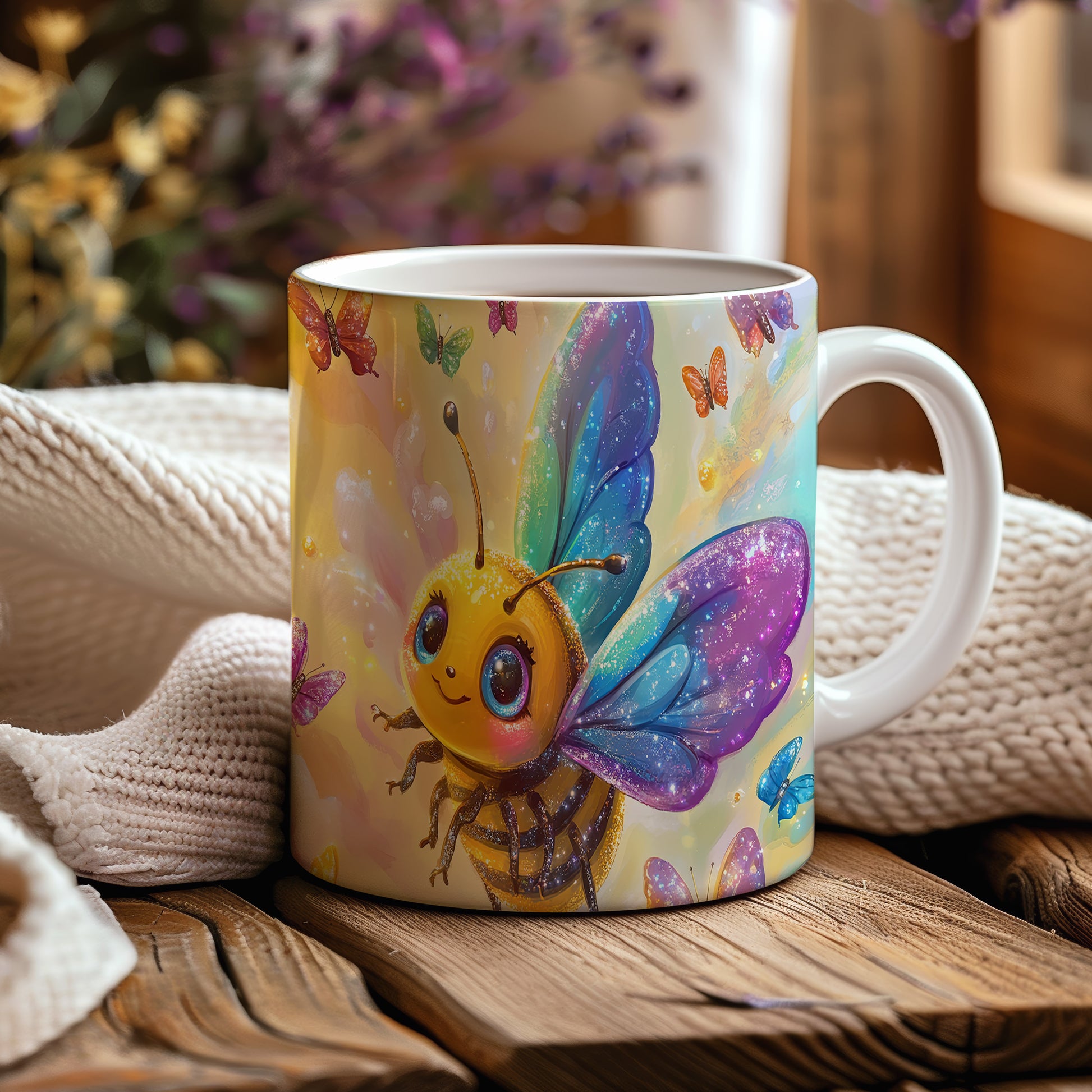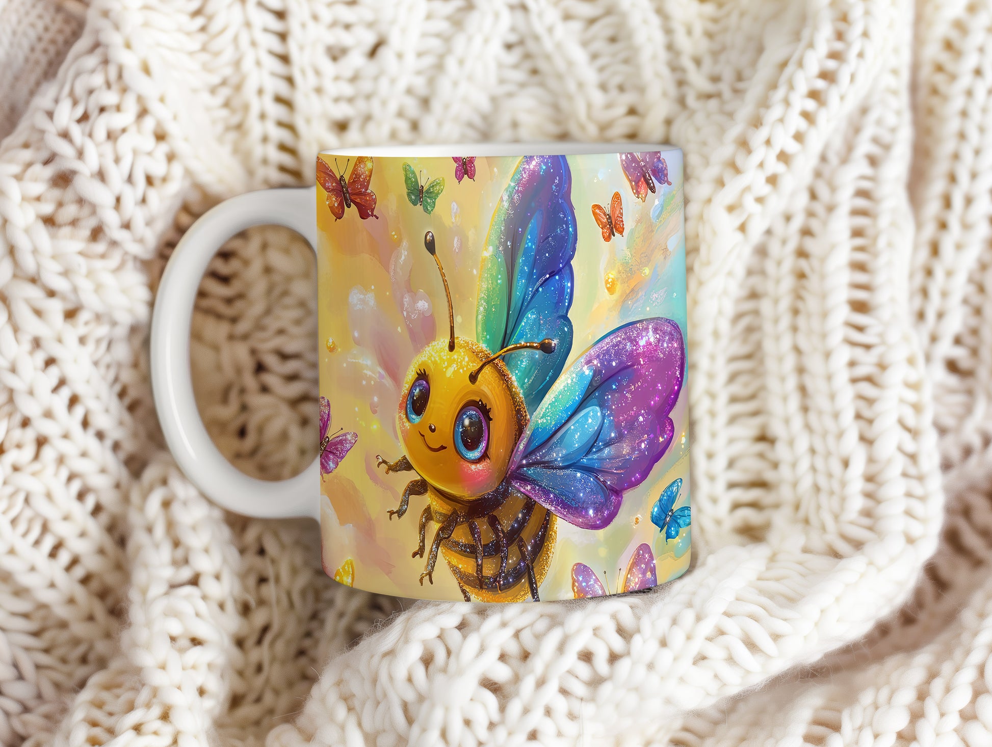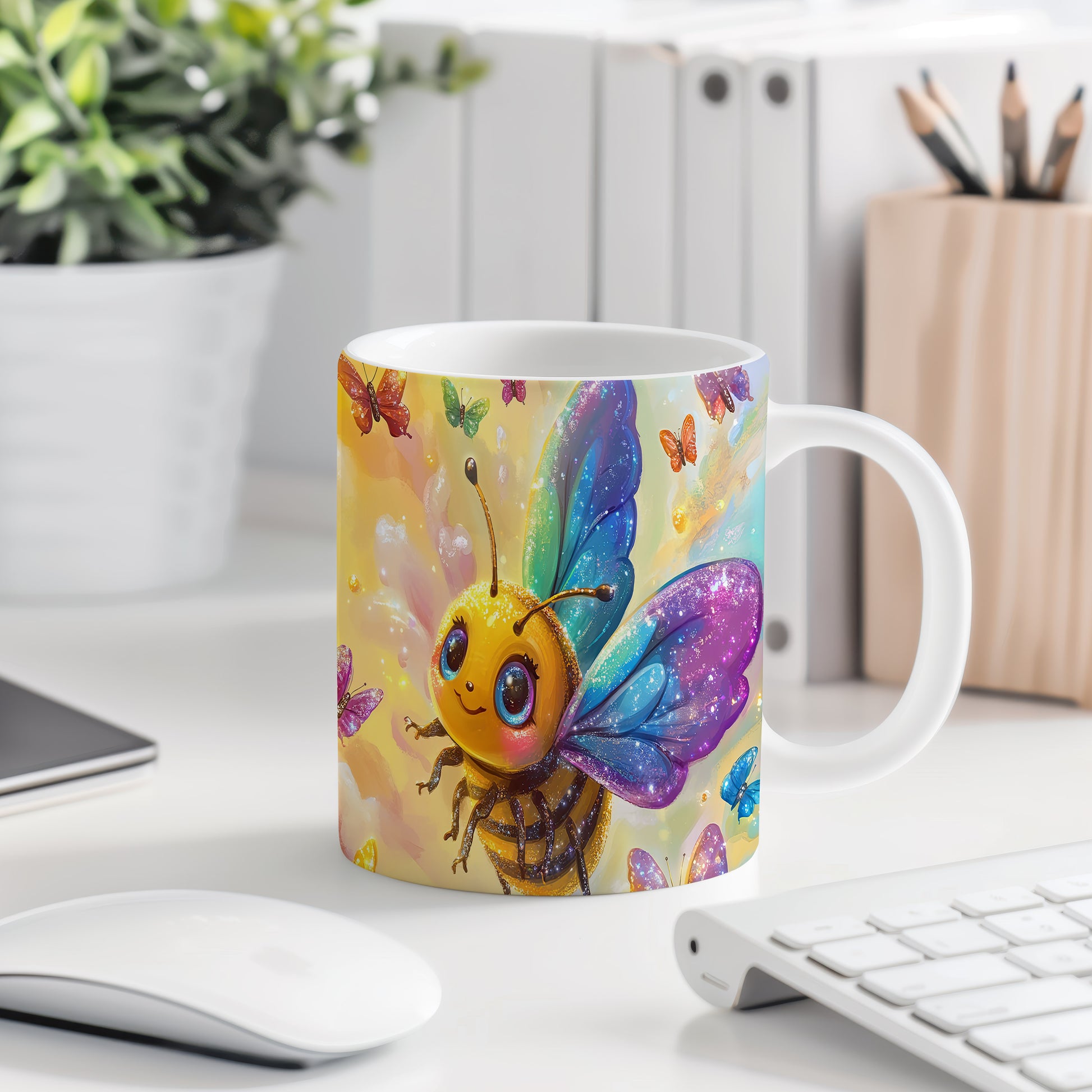 Veselý hrnek s motivem roztomilé včelky a barevných motýlků. Tento hrnek je ideální pro milovníky přírody a skvělým dárkem pro přátele či rodinu. Materiál: keramika. Objem: 330 ml. Vhodné do myčky i mikrovlnky. Používání tohoto hrnku přináší radost a oživí každé ráno.