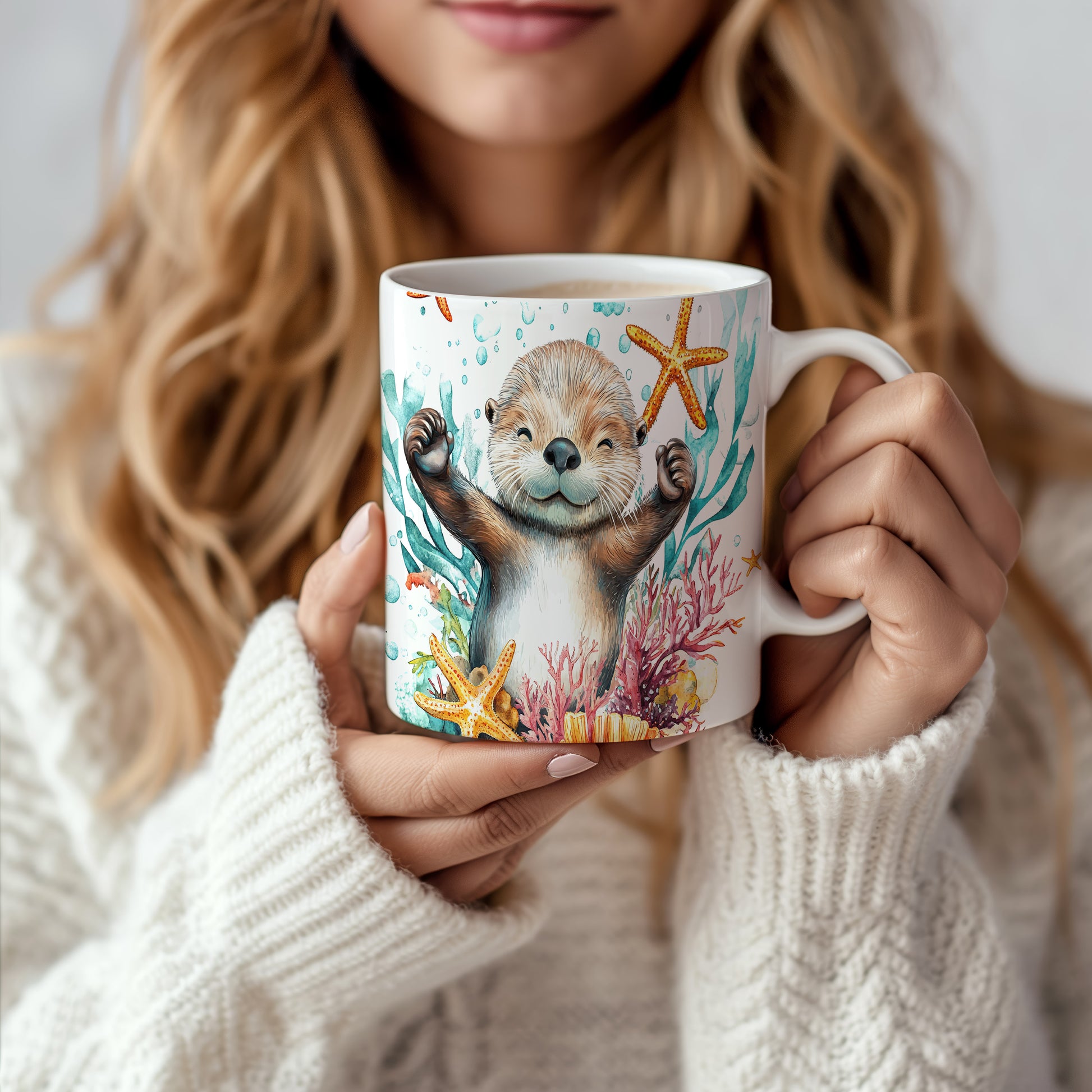 Hrnek s roztomilou vydrou a podvodními motivy je ideální pro milovníky přírody a mořského světa. Skvělý dárek pro děti i dospělé, kteří ocení veselý design. Materiál: keramika. Objem: 330 ml. Vhodné do myčky i mikrovlnky. Tento hrnek přináší radost do každodenního pití a zaručuje příjemné chvíle s oblíbeným nápojem.