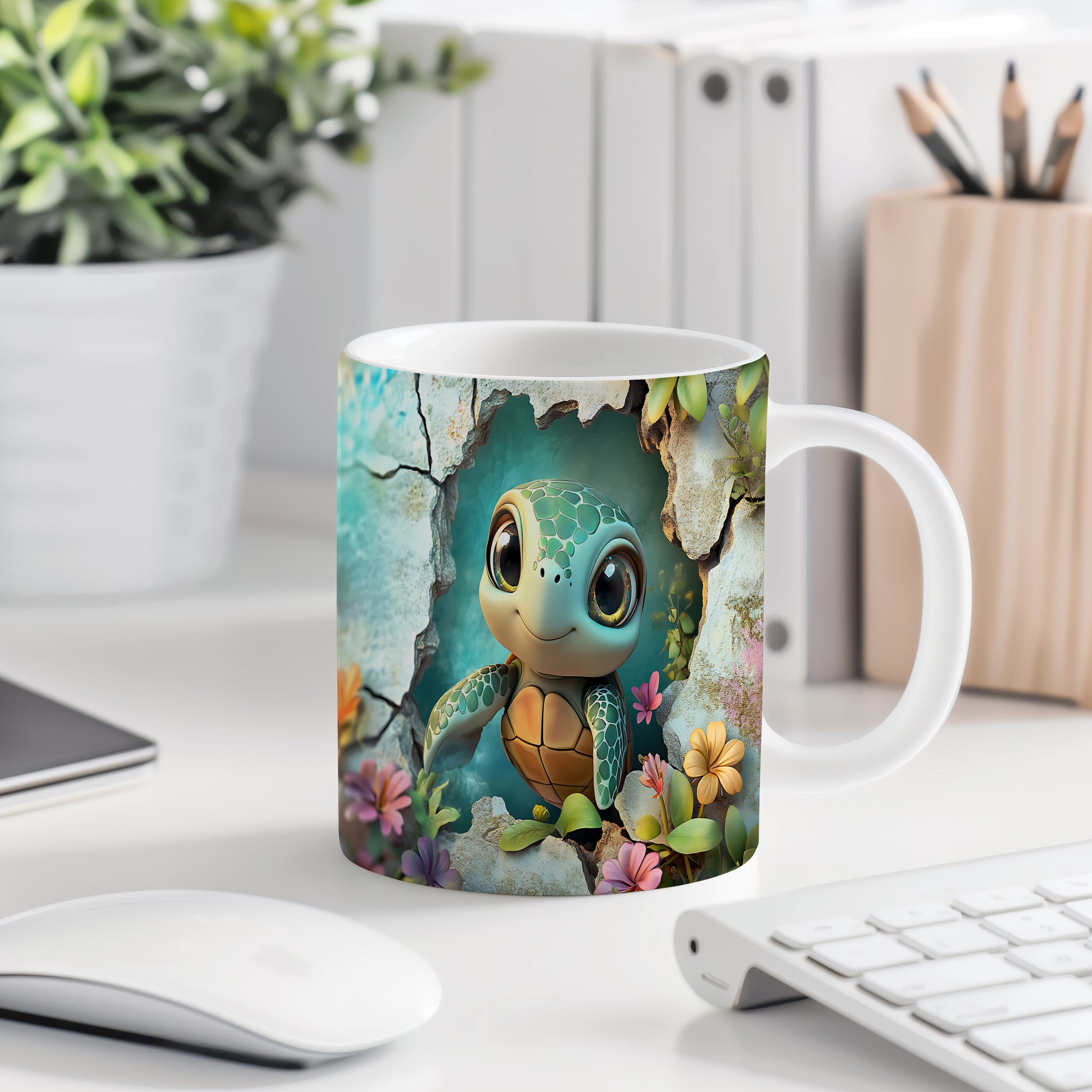 Keramický hrnek s roztomilou želvičkou, která vesele vyhlíží z podvodního světa. Tento hrnek je ideální pro milovníky přírody a skvělým dárkem pro děti i dospělé. Materiál: keramika. Objem: 330 ml. Vhodné do myčky i mikrovlnky. Používání tohoto hrnku přináší radost a oživí každé pití.