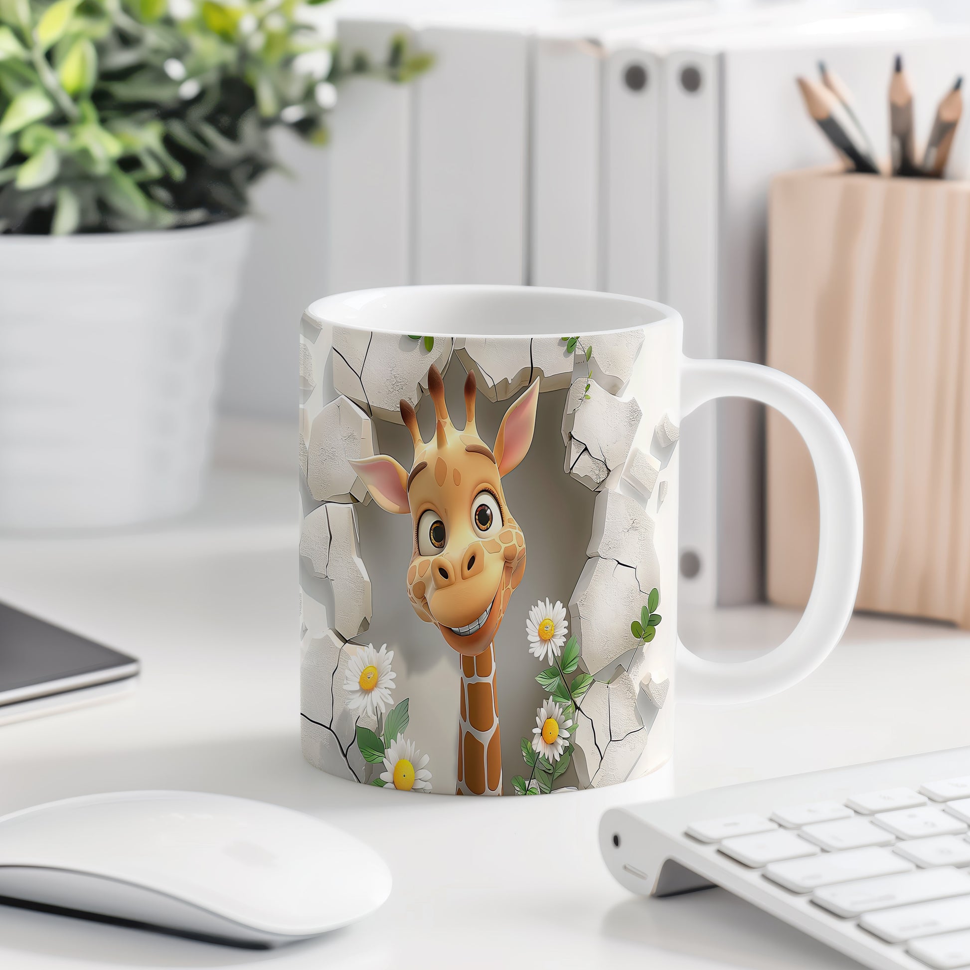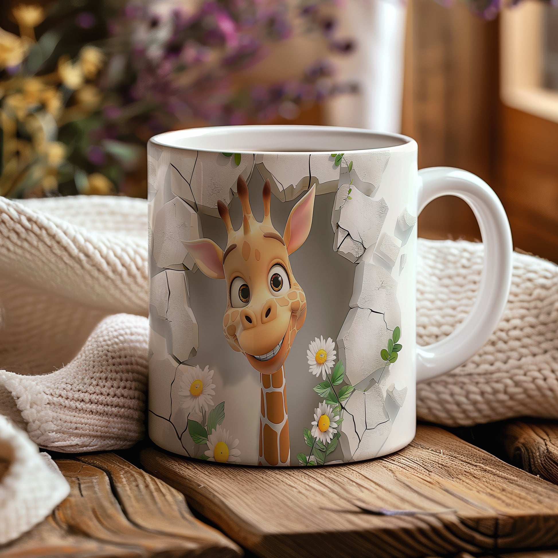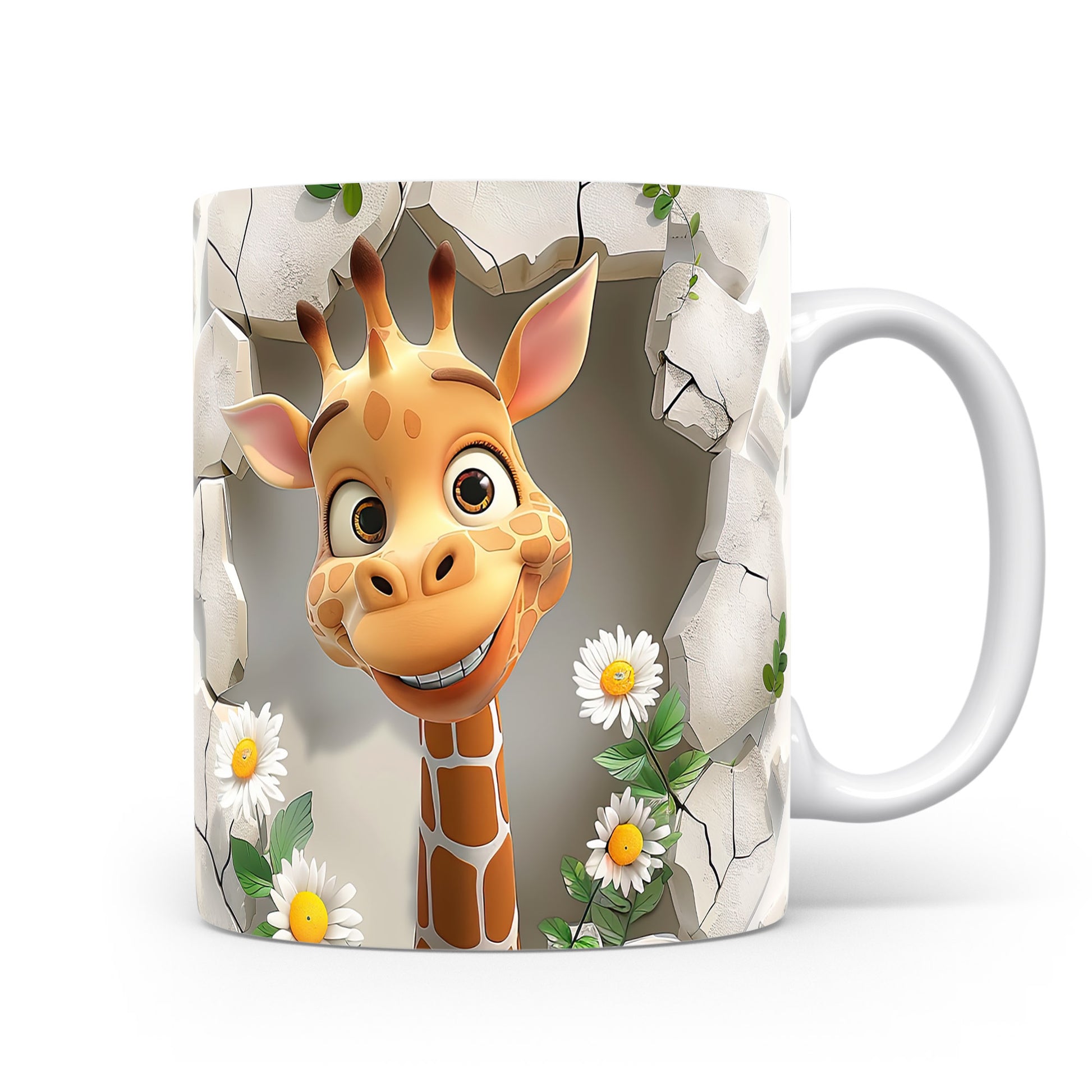 Tento hrnek zobrazuje roztomilou žirafu s 3D efektem, která vykukuje z květinového pozadí. Je ideální pro milovníky zvířat a skvělým dárkem pro děti i dospělé. Materiál: keramika. Objem: 330 ml. Vhodné do myčky i mikrovlnky. Užívejte si svůj oblíbený nápoj s úsměvem na tváři.
