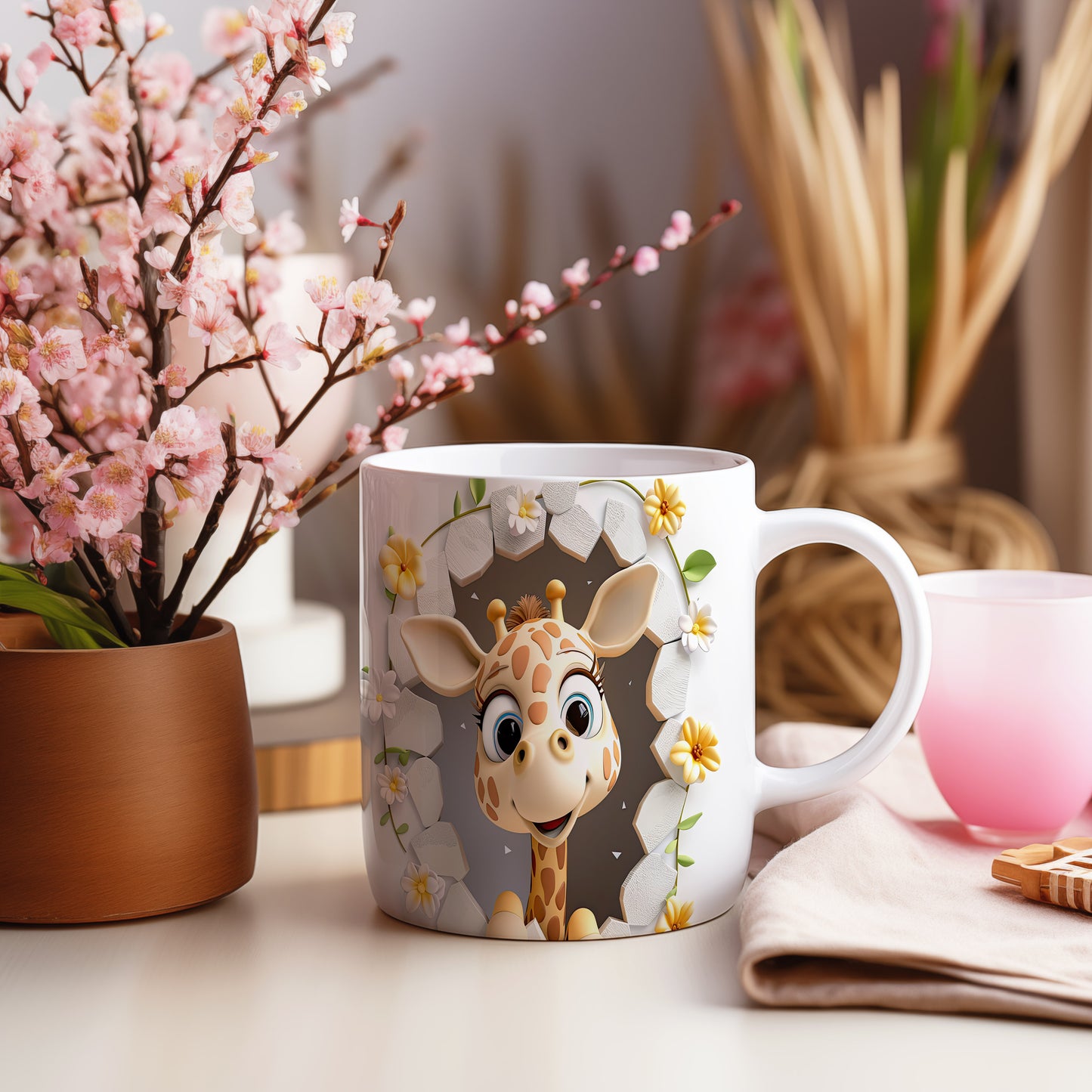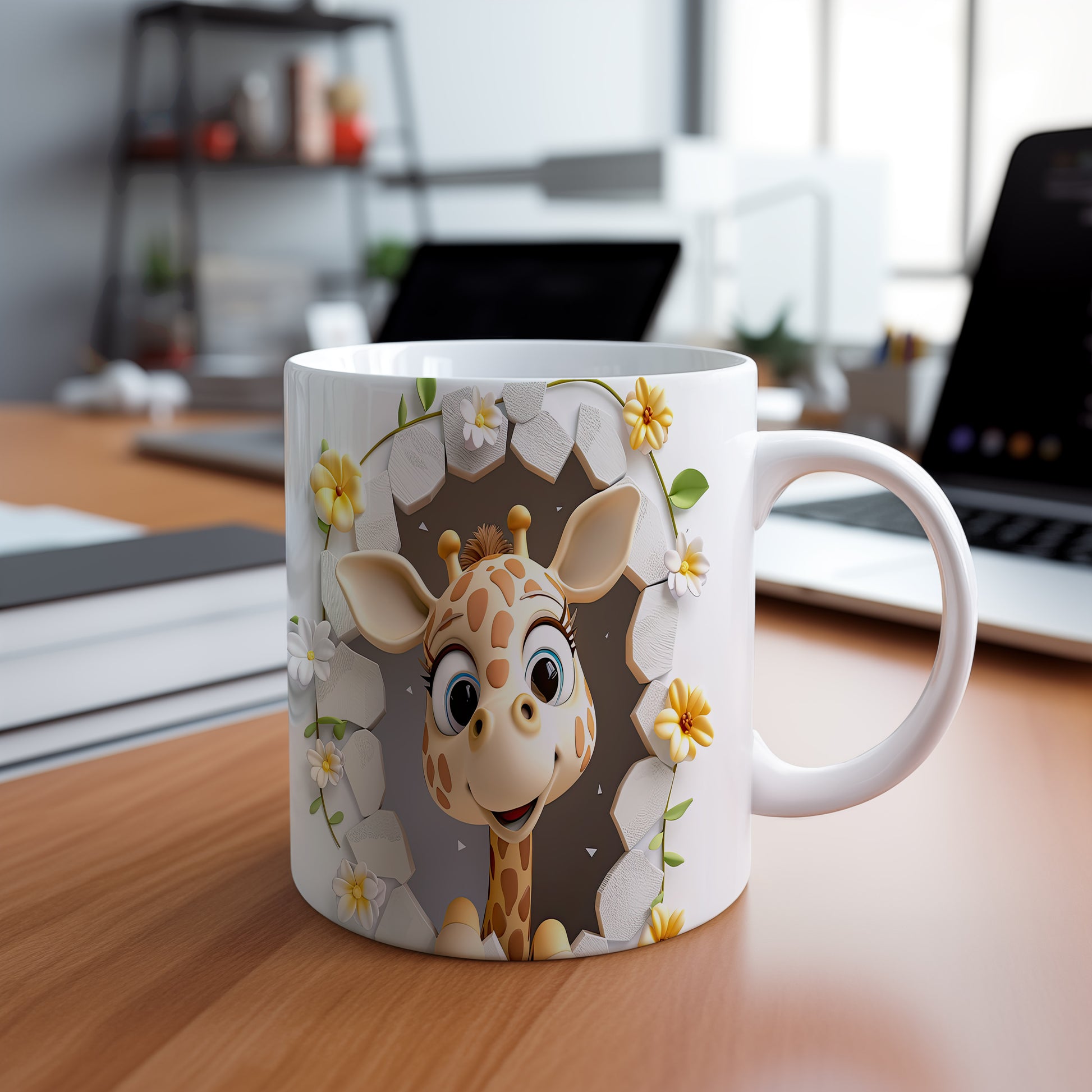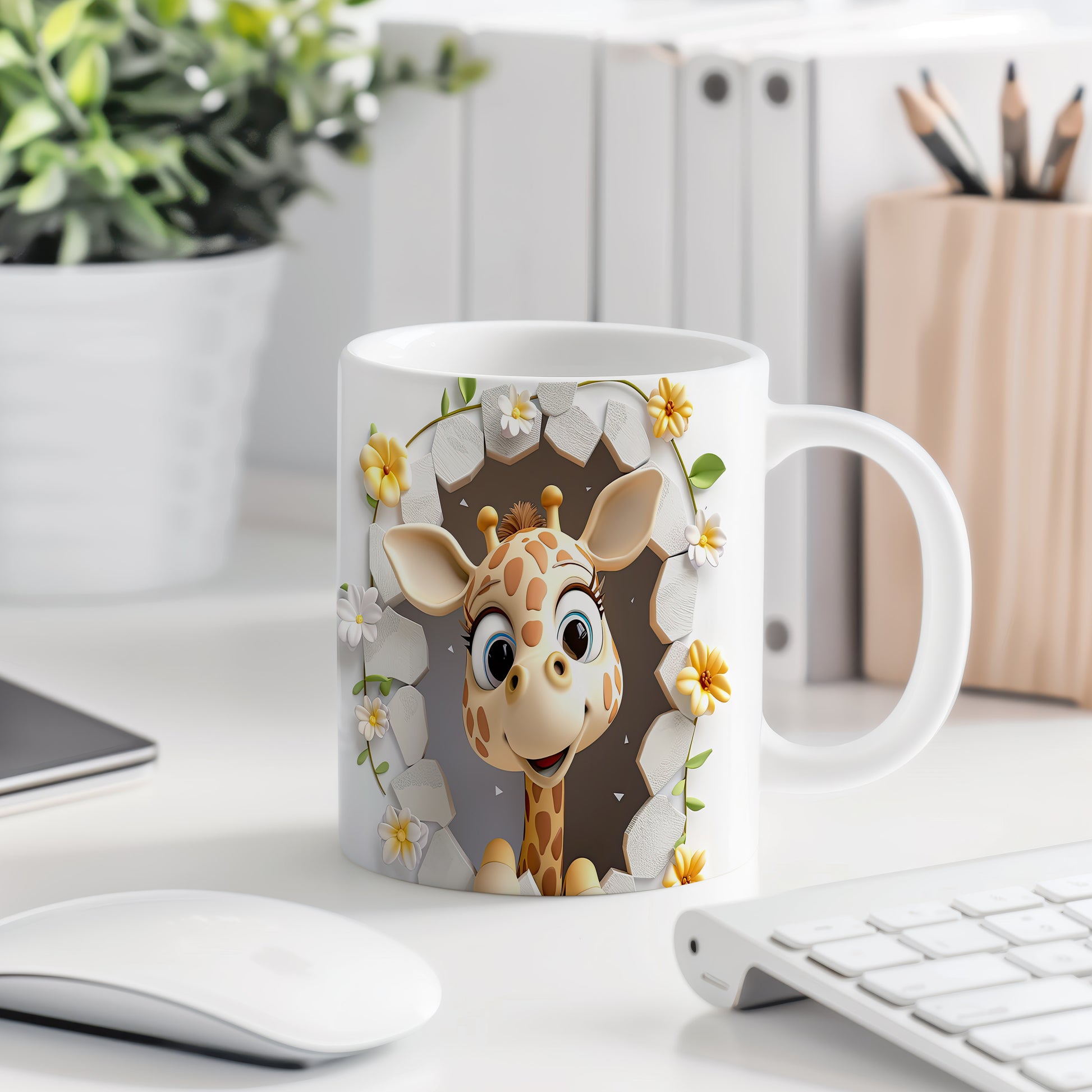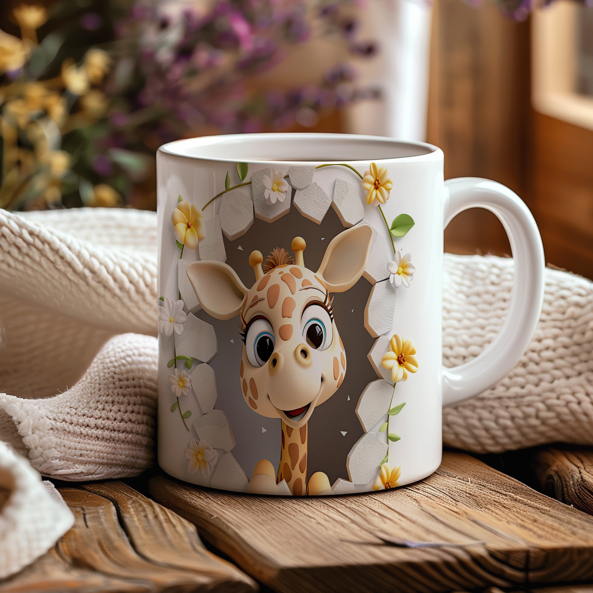 Tento hrnek s roztomilou žirafou a květinami přináší radost a přírodní kouzlo. Je ideální pro děti a milovníky zvířat, skvělý tip na dárek k narozeninám nebo svátku. Materiál: keramika. Objem: 330 ml. Vhodné do myčky i mikrovlnky. Užívejte si každé sousto s tímto veselým hrnkem, který vám zlepší náladu.