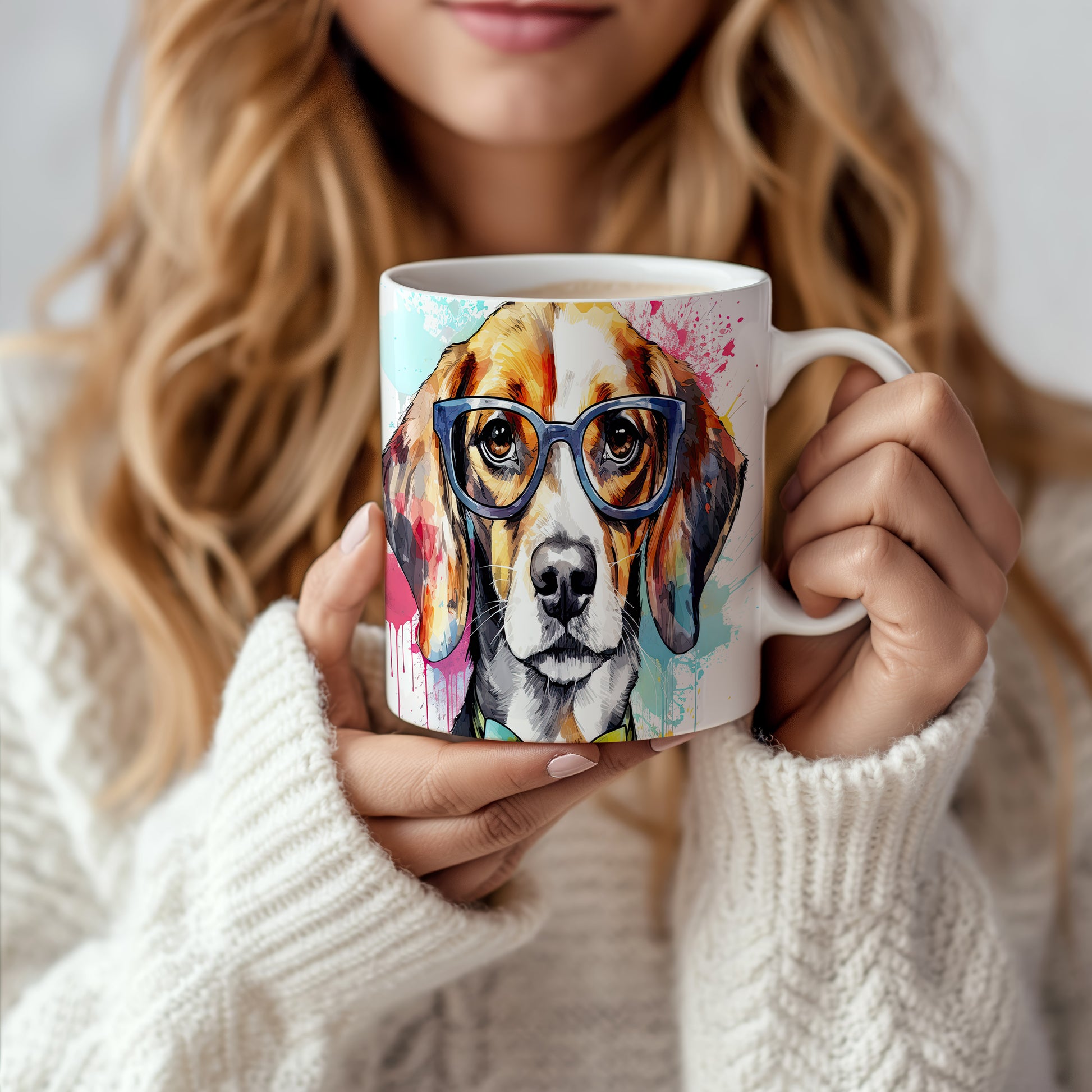 Hrnek s motivem roztomilého beagle psa v brýlích a mašlí je skvělým způsobem, jak si zpříjemnit každé ráno. Tento hrnek potěší všechny milovníky psů a je ideálním dárkem pro přátele či rodinu. Materiál: keramika. Objem: 330 ml. Vhodné do myčky i mikrovlnky. Používání tohoto hrnku vám přinese radost a úsměv na tváři při každém doušku.