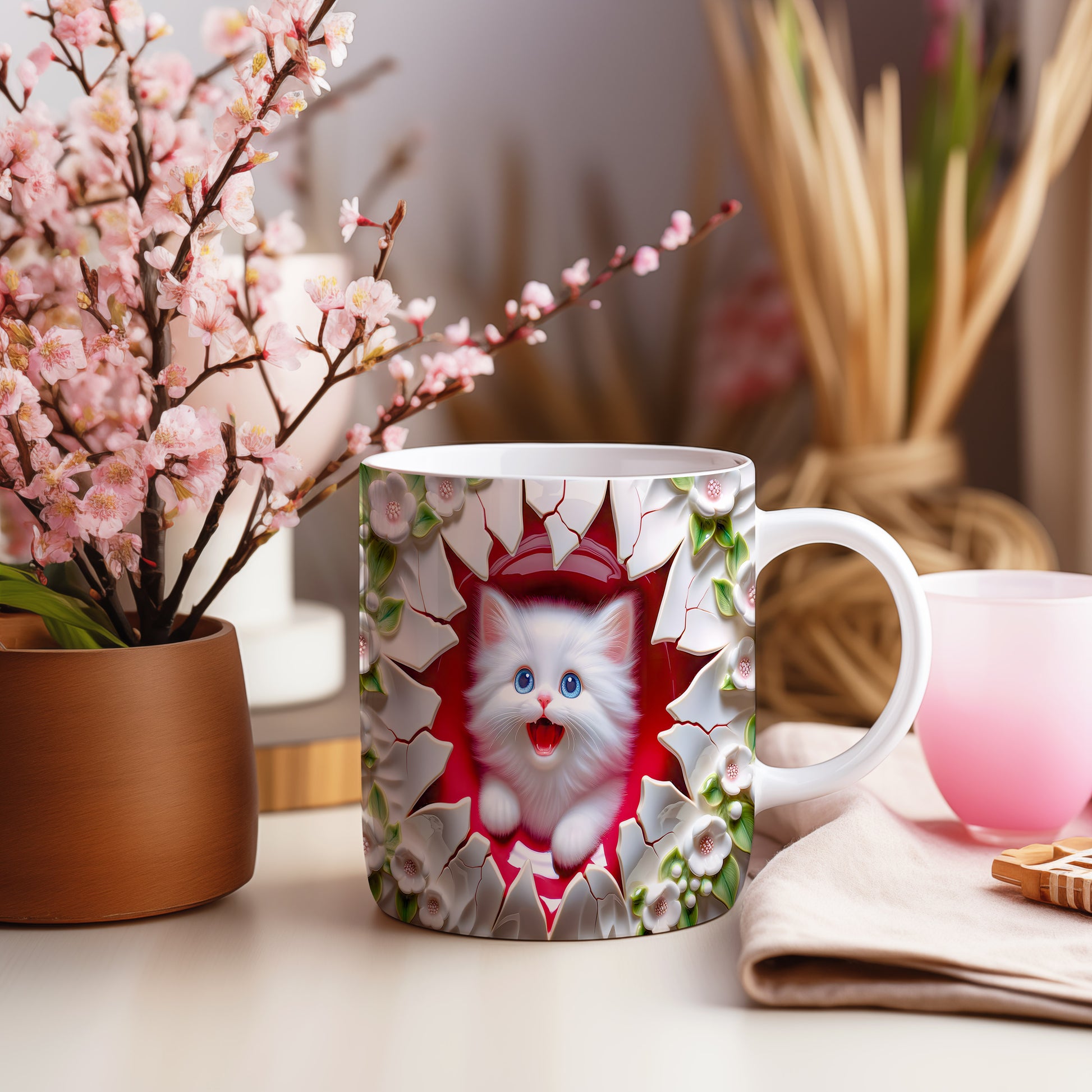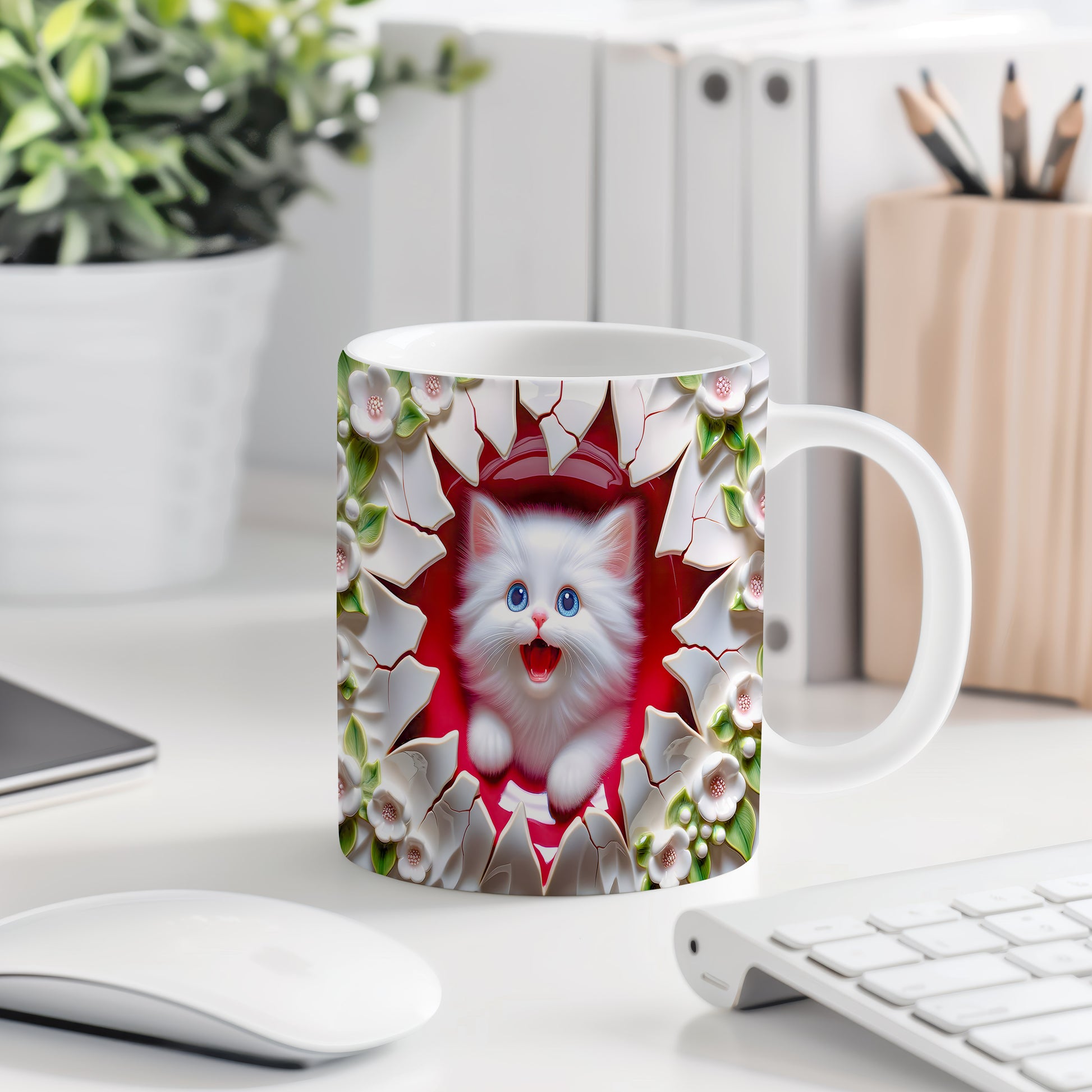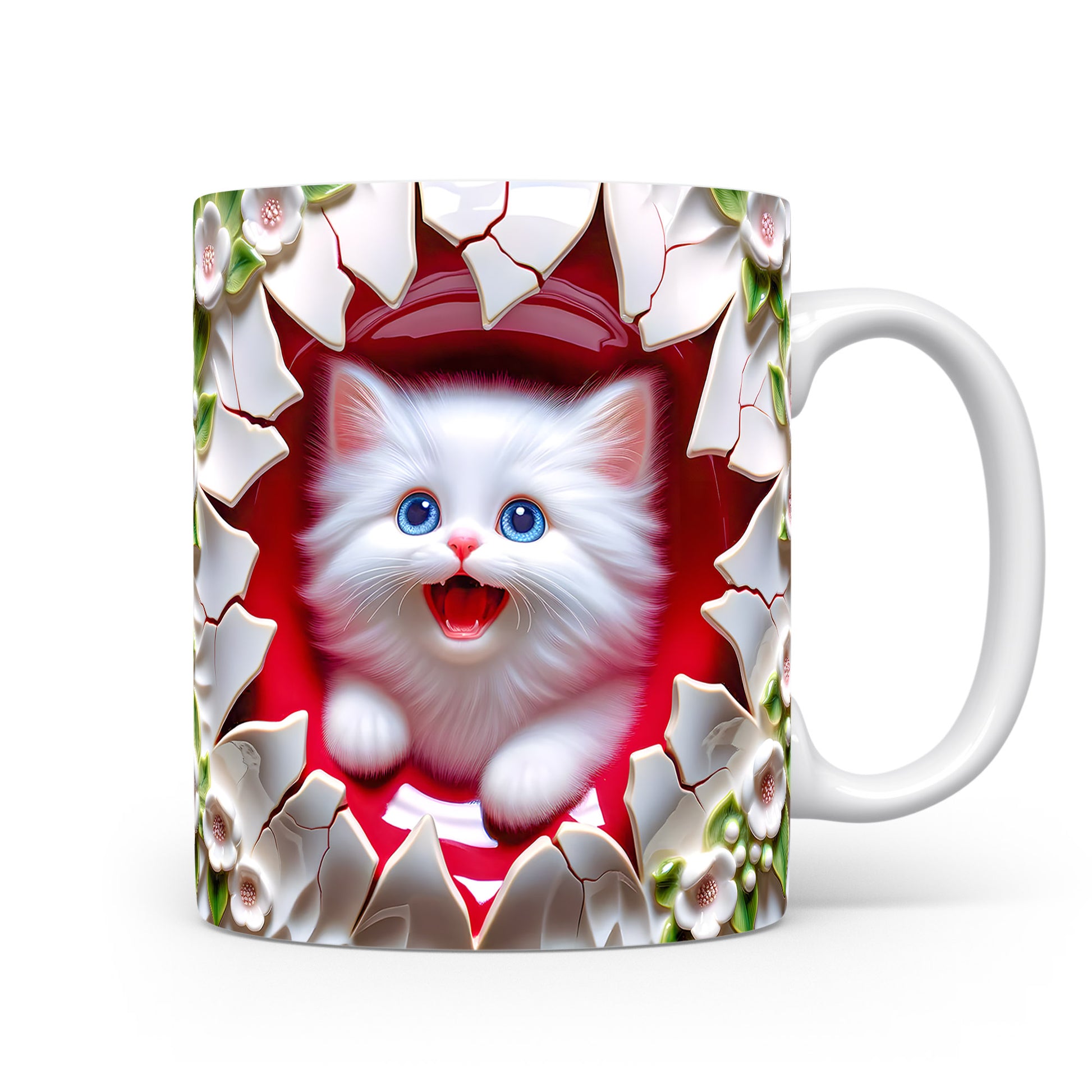 Hrnek s roztomilým bílým kotětem je ideálním kouskem pro milovníky zvířat. Tento hrnek potěší každého, kdo má rád kočky a hledá originální dárek pro své blízké. Materiál: keramika. Objem: 330 ml. Vhodné do myčky i mikrovlnky. Používání tohoto hrnku přináší radost a útulnost do každého dne.