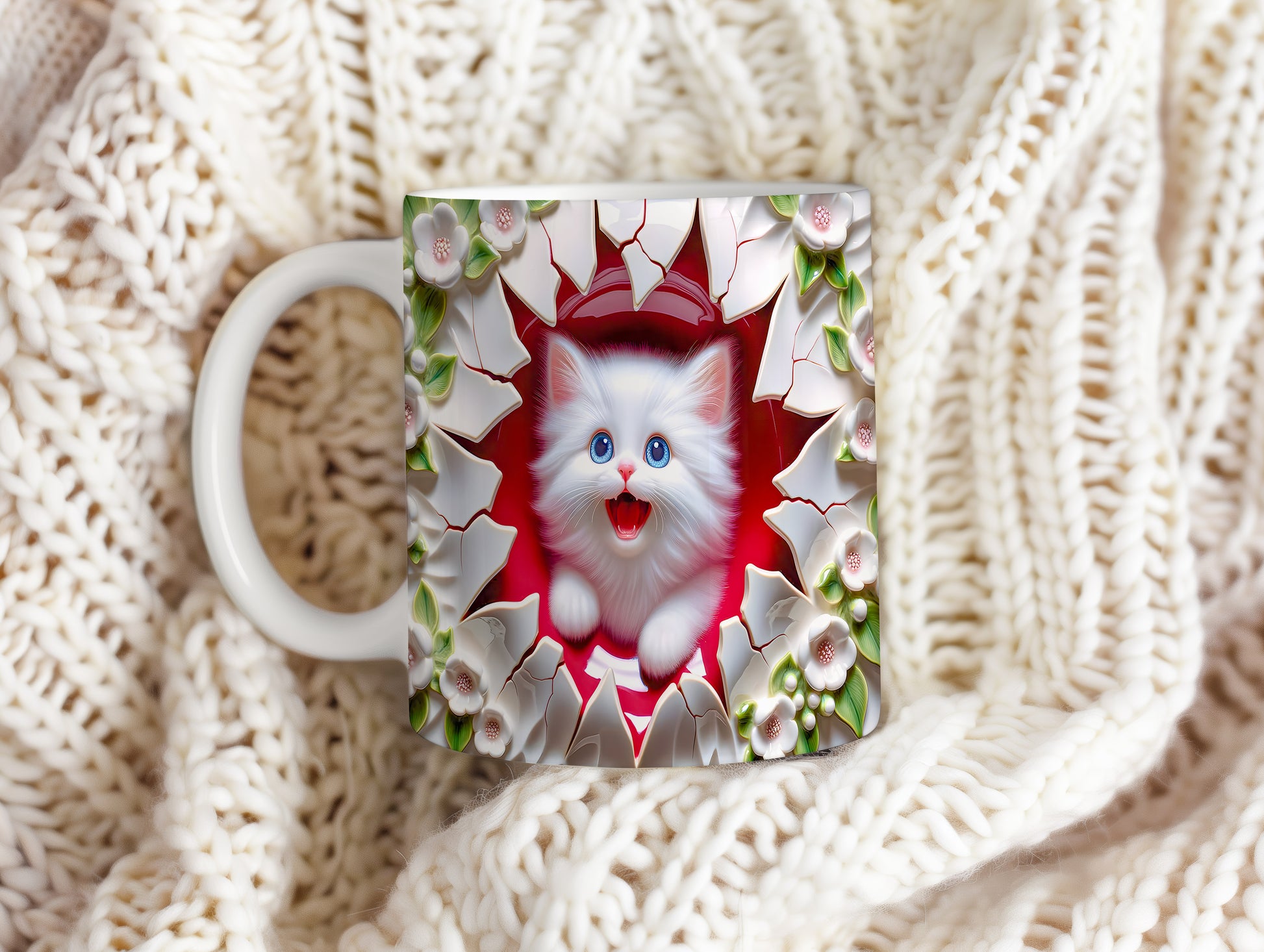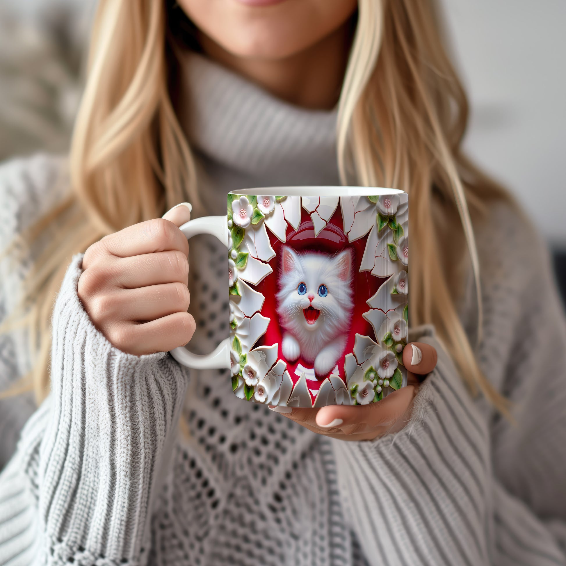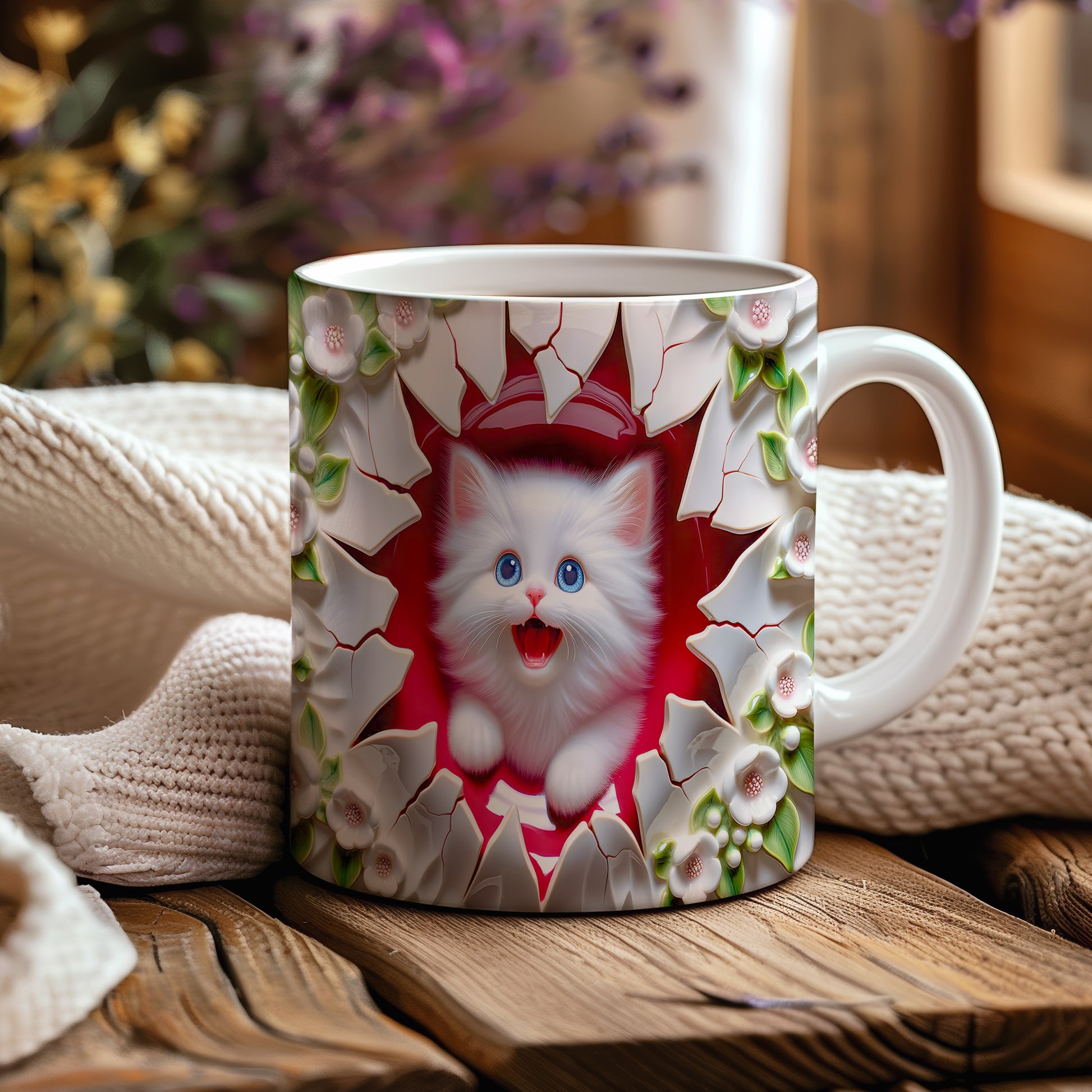 Hrnek s roztomilým bílým kotětem je ideálním kouskem pro milovníky zvířat. Tento hrnek potěší každého, kdo má rád kočky a hledá originální dárek pro své blízké. Materiál: keramika. Objem: 330 ml. Vhodné do myčky i mikrovlnky. Používání tohoto hrnku přináší radost a útulnost do každého dne.