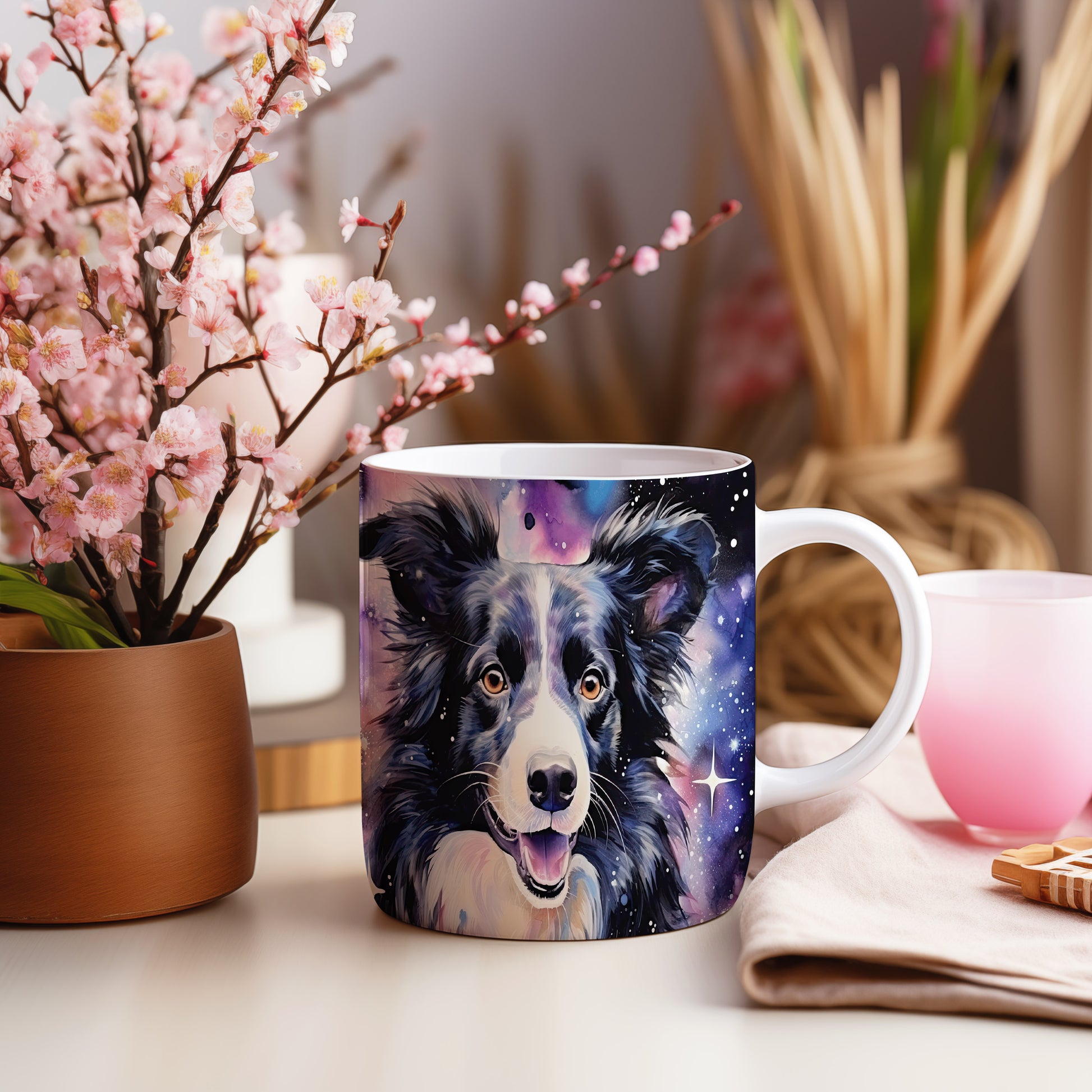 Hrnek s roztomilou border kolií v kosmickém stylu je ideální pro milovníky psů a vesmíru. Skvělý tip na dárek pro přátele nebo rodinu, kteří ocení originální design. Materiál: keramika. Objem: 330 ml. Vhodné do myčky i mikrovlnky. Tento hrnek přináší radost a zábavu při každém doušku.