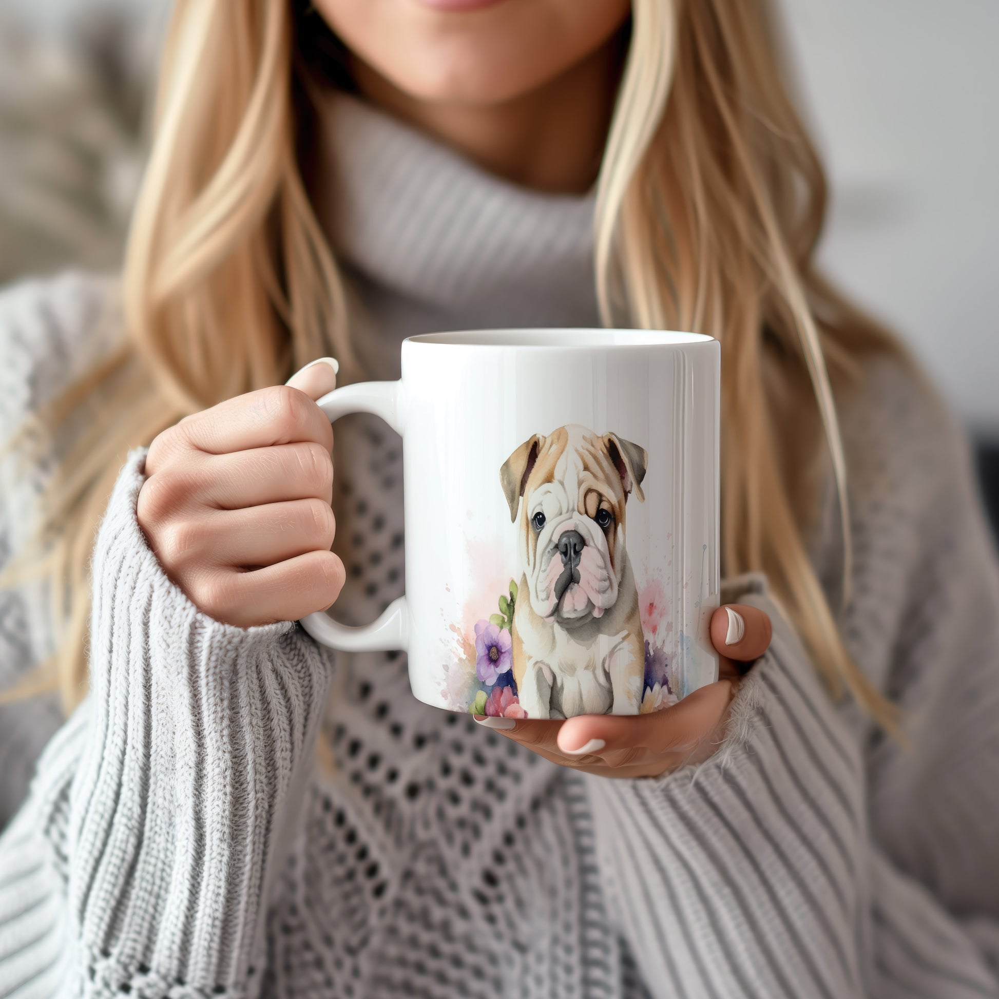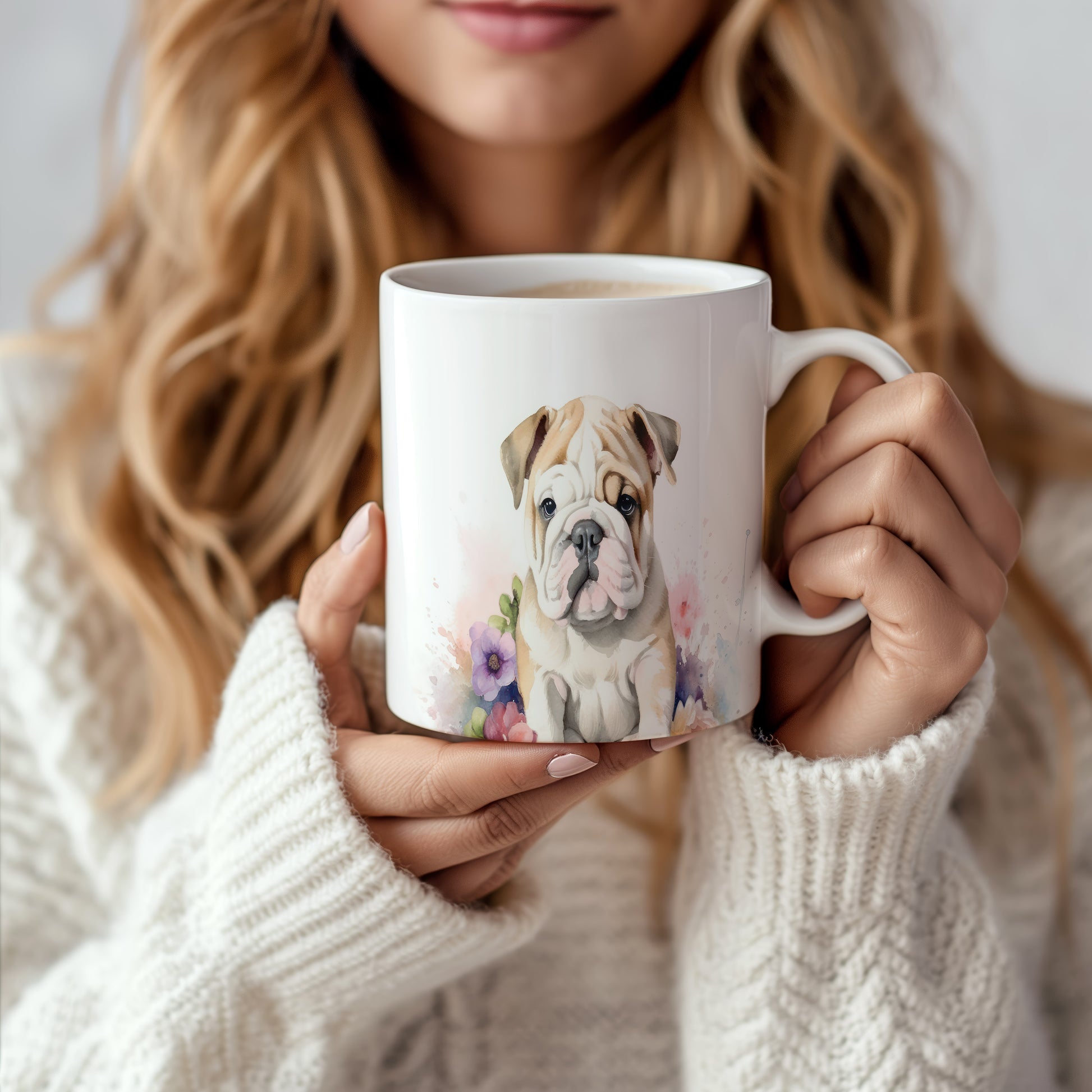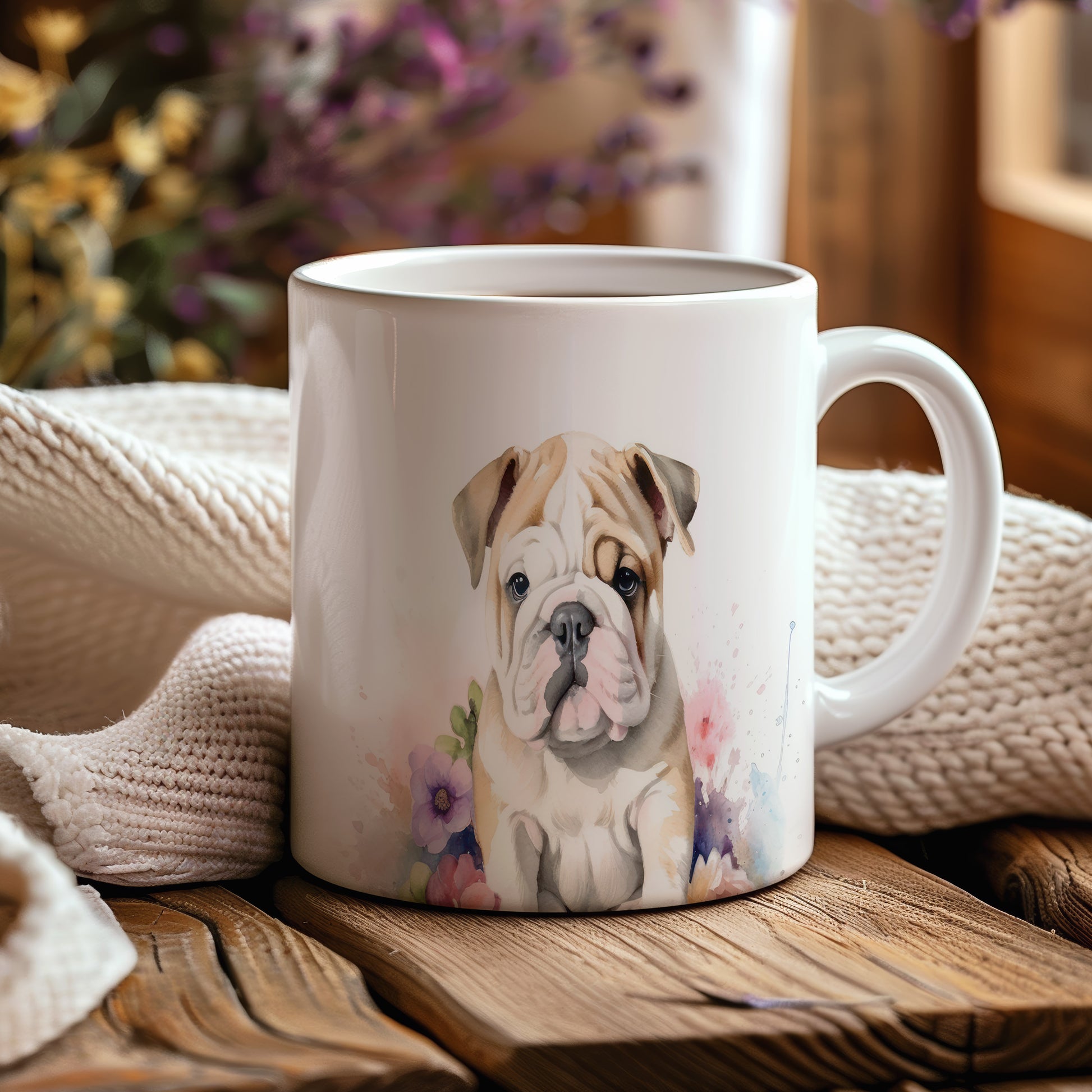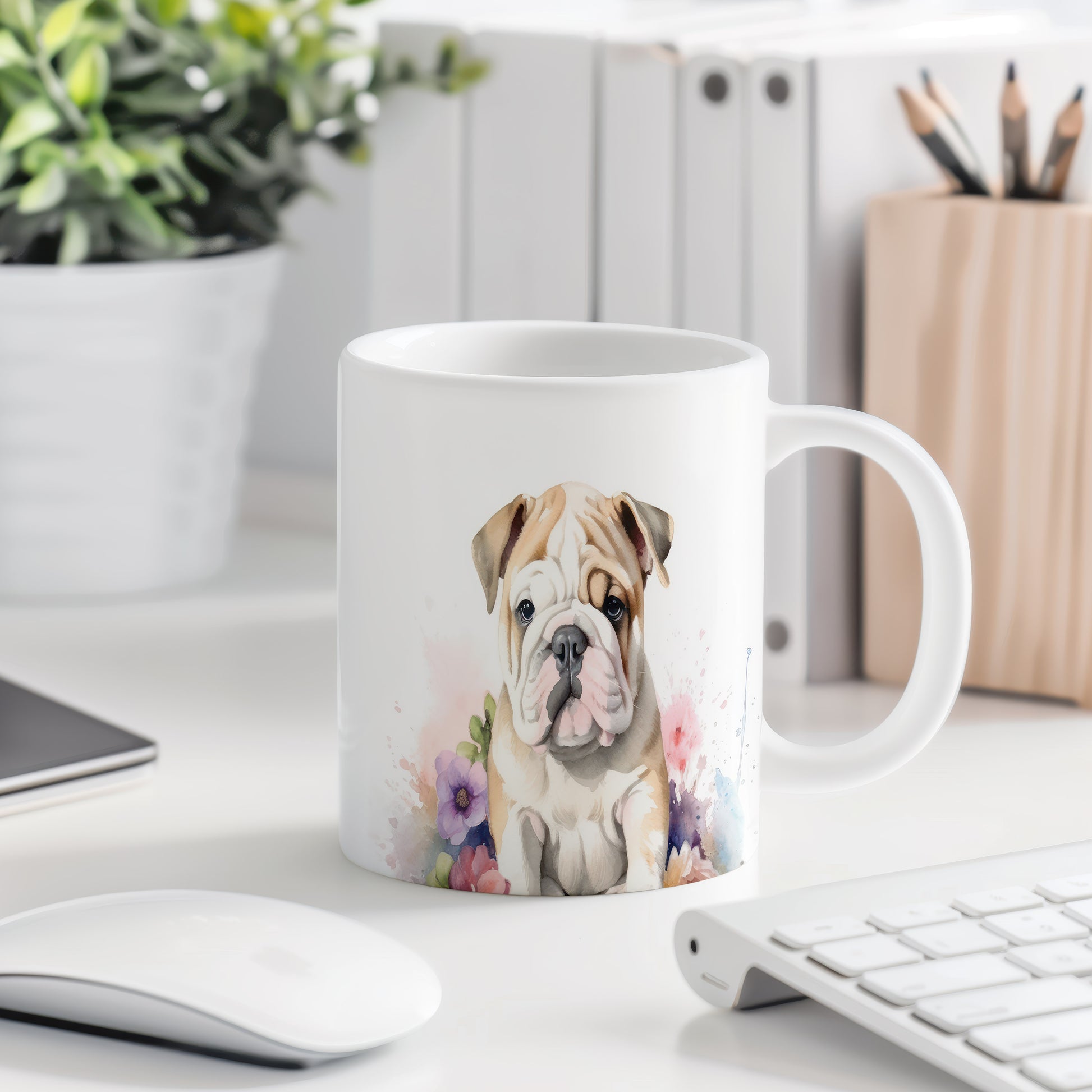 Na hrnku je zobrazen roztomilý bulldog v květinovém stylu. Tento hrnek je skvělým dárkem pro milovníky psů a zvířat. Materiál: keramika. Objem: 330 ml. Vhodné do myčky i mikrovlnky. Užívejte si každodenní kávu nebo čaj s tímto jedinečným motivem.