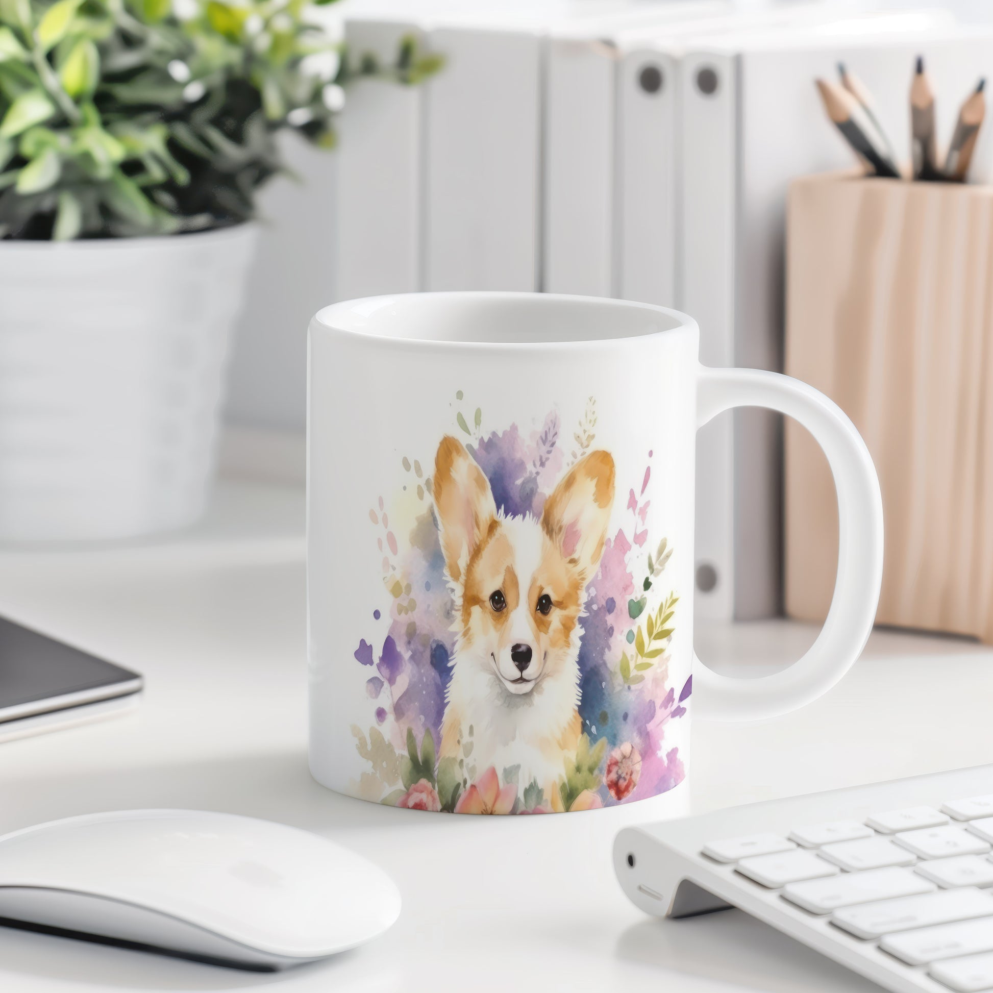 Tento keramický hrnek s roztomilým corgi pejskem a květinovým motivem je ideální pro milovníky zvířat a přírody. Skvělý tip na dárek pro přátele nebo rodinu, kteří ocení originální design. Materiál: keramika. Objem: 330 ml. Vhodné do myčky i mikrovlnky. Používání tohoto hrnku přináší radost a zútulňuje každé ráno.