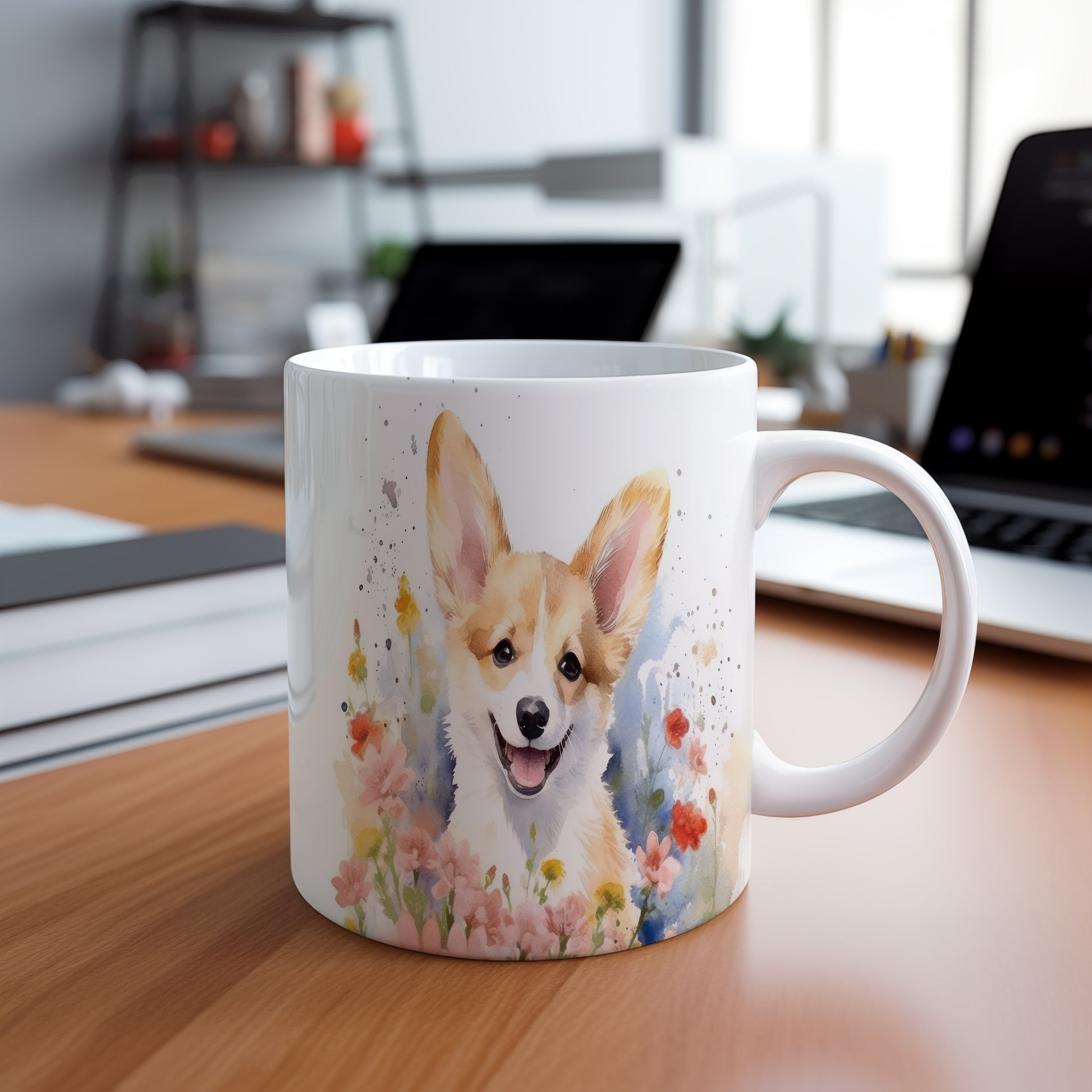 Hrnek s roztomilým corgi a květinovým vzorem je ideální pro milovníky psů a přírody. Tento hrnek potěší každého, kdo hledá originální dárek pro své blízké. Materiál: keramika. Objem: 330 ml. Vhodné do myčky i mikrovlnky. Používání tohoto hrnku přináší radost a útulnost do každého dne.